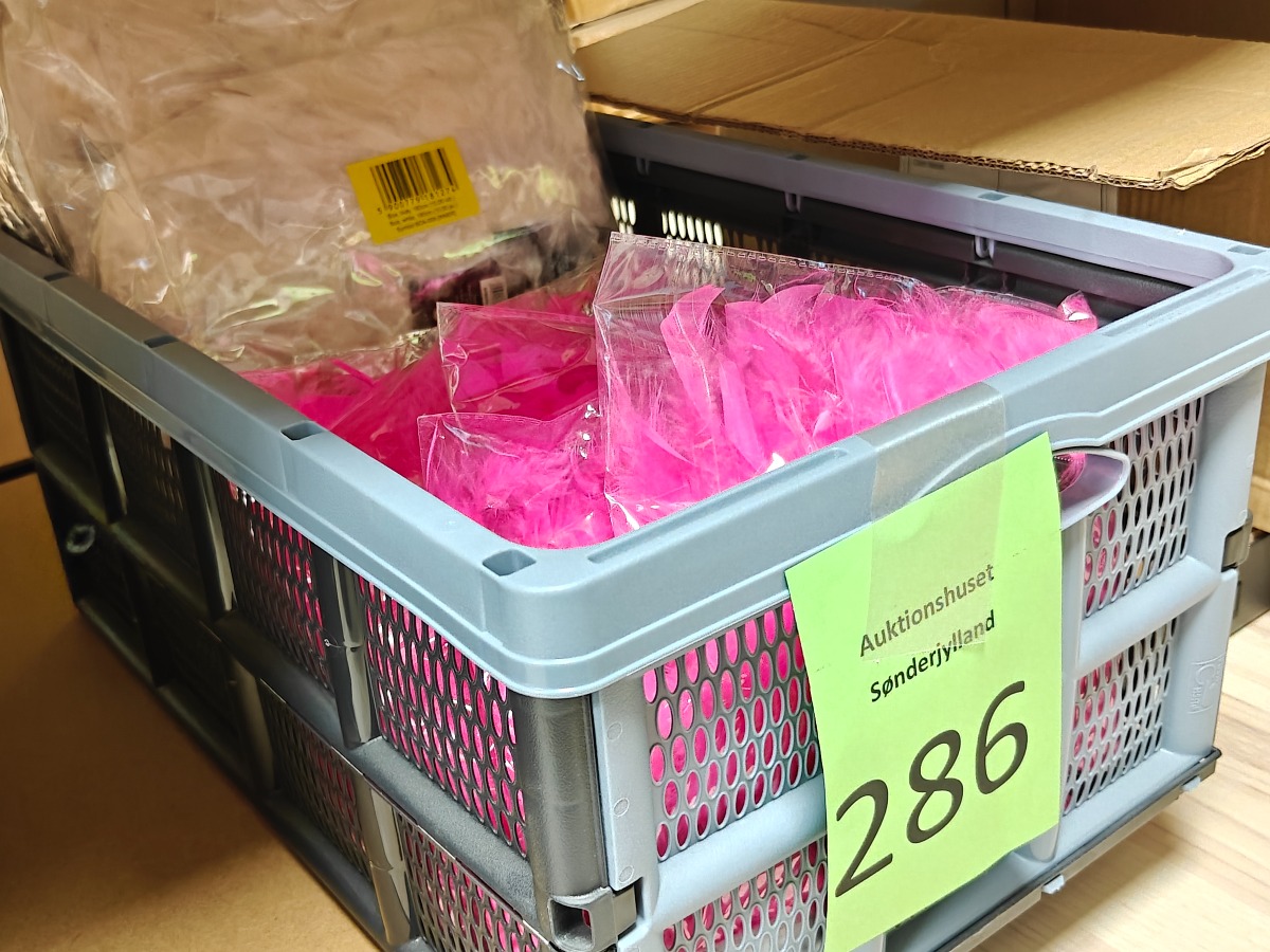 Fjer (20). Poser med fjer i flere farver. Varerne stammer fra lukket webshop. Alle varer er ubrugte og af rigtig god kvalitet.