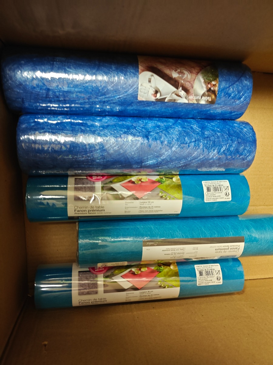 Bordløber, blå 2 nuancer (5). Måler 30 cm x 25 M. Varerne stammer fra lukket webshop. Alle varer er ubrugte og af rigtig god kvalitet.