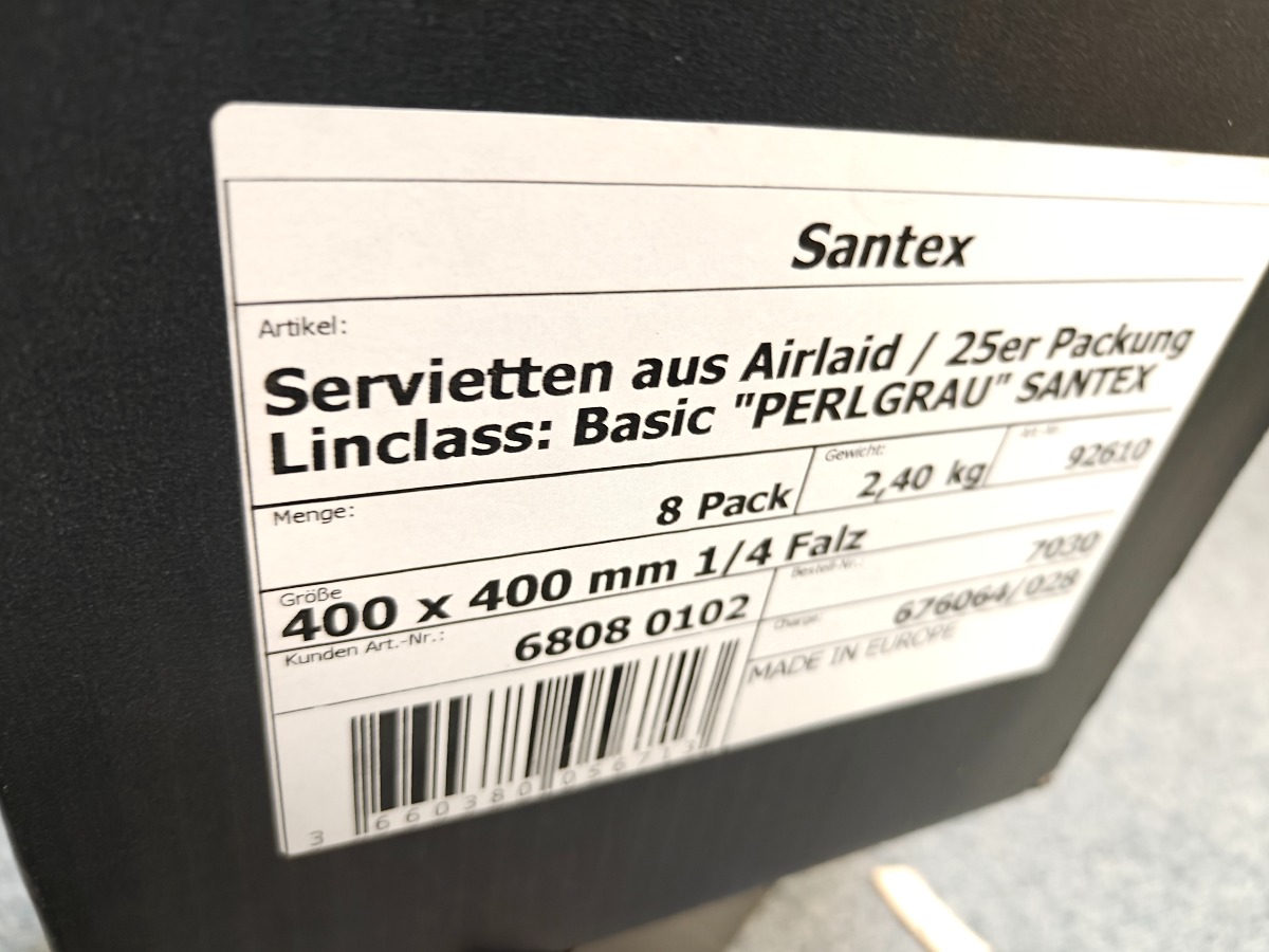 Servietter perlegrå (16). Santex servietter, 40 x 40 cm. Vejledende udsalgspris 49,95,-/pk. Varerne stammer fra lukket webshop. Alle varer er ubrugte og af rigtig god kvalitet.