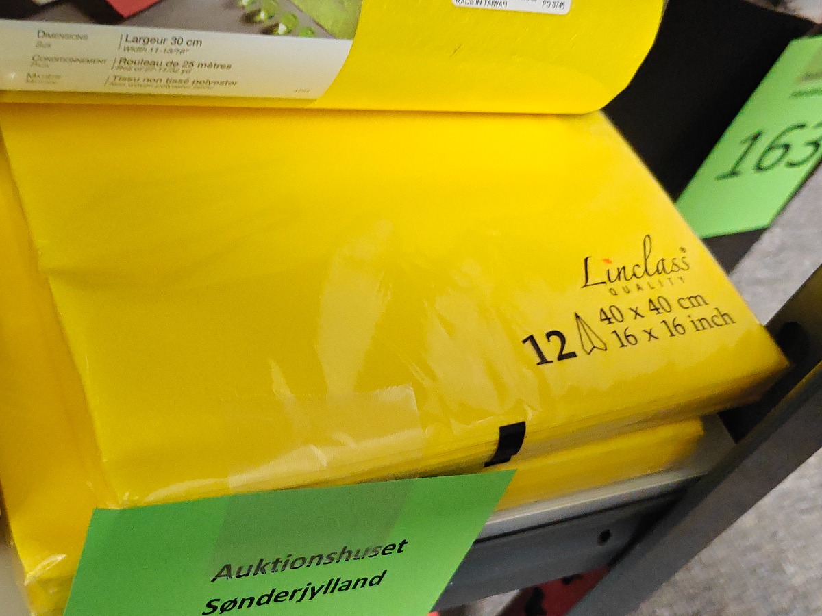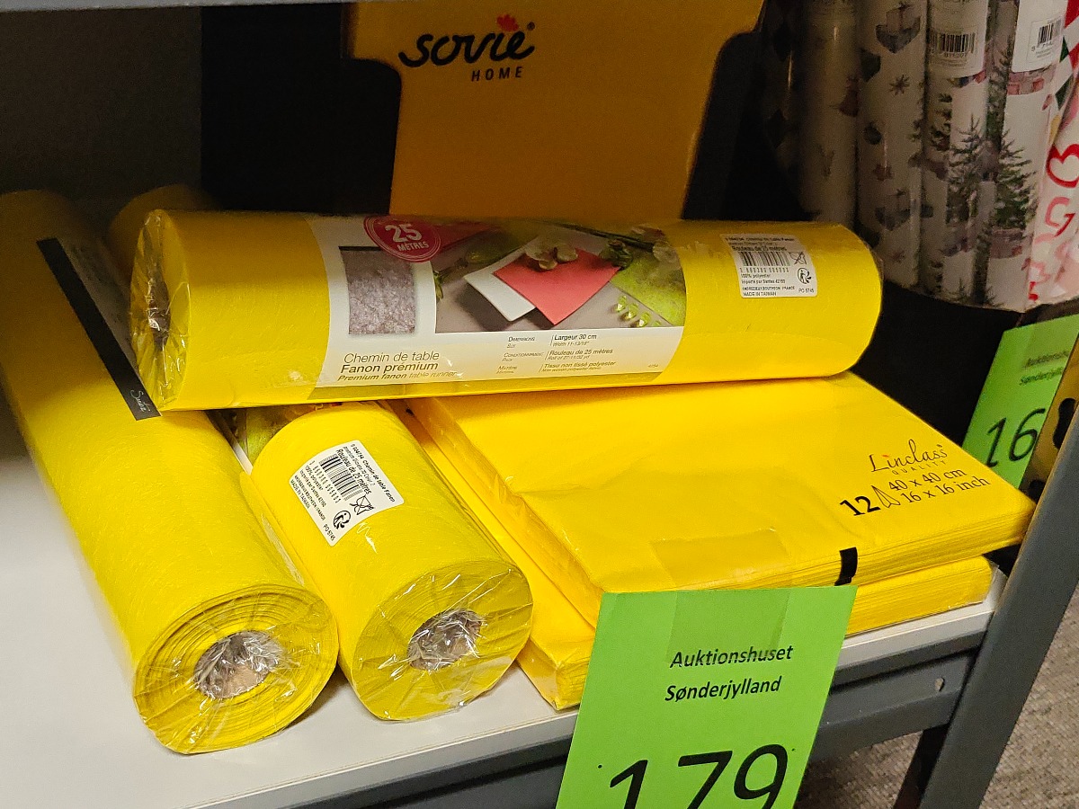 Gule servietter og bordløbere. Varerne stammer fra lukket webshop. Alle varer er ubrugte og af rigtig god kvalitet.