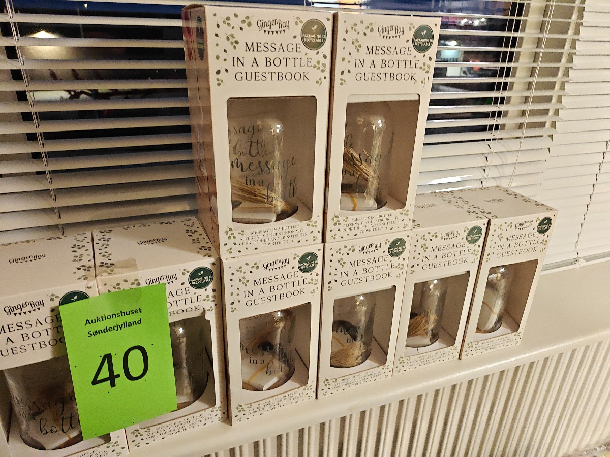 Gæstebøger i form af flaskepost. 8 stk. Varerne stammer fra lukket webshop. Alle varer er ubrugte og af rigtig god kvalitet.
