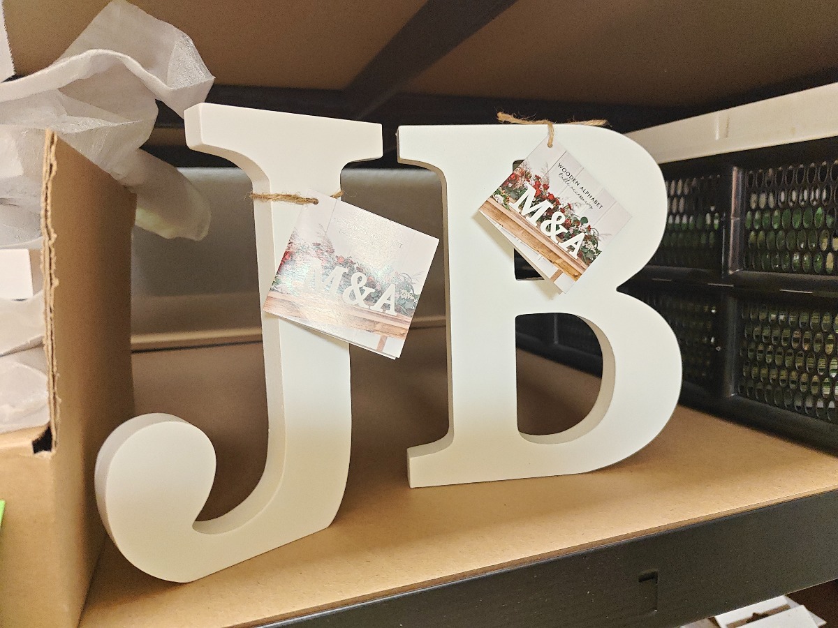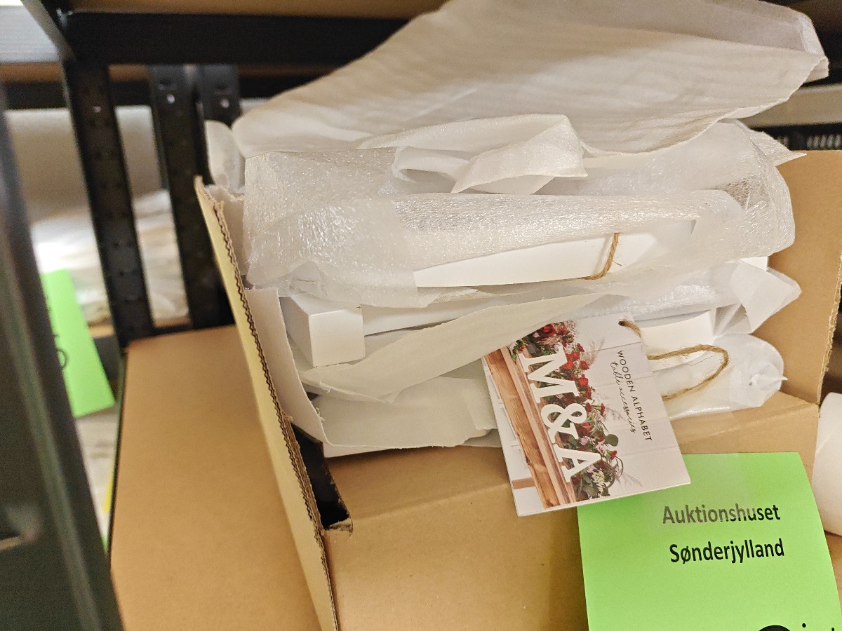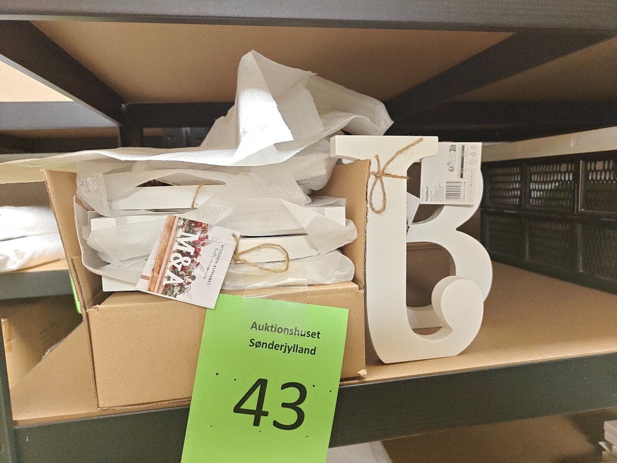 Bogstaver af bemalet træ. Varerne stammer fra lukket webshop. Alle varer er ubrugte og af rigtig god kvalitet.