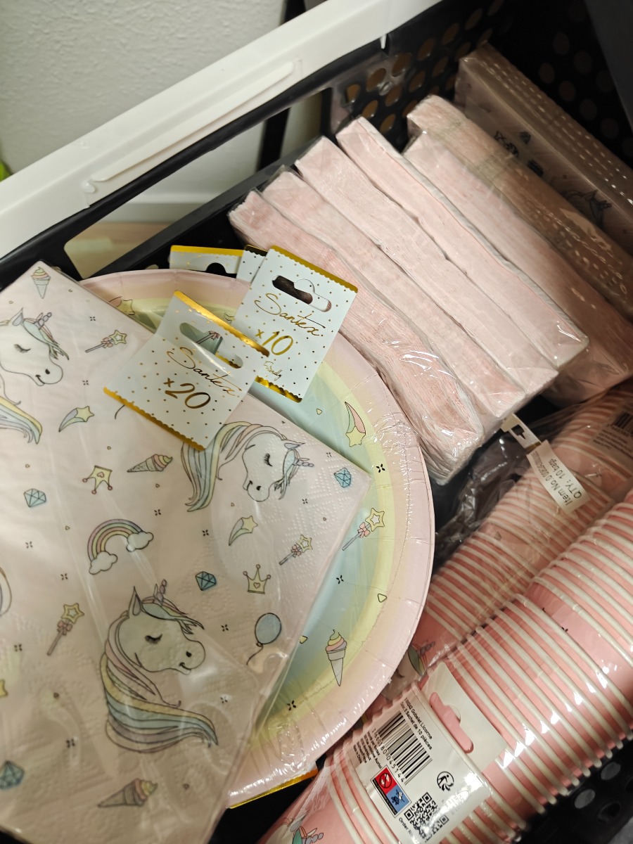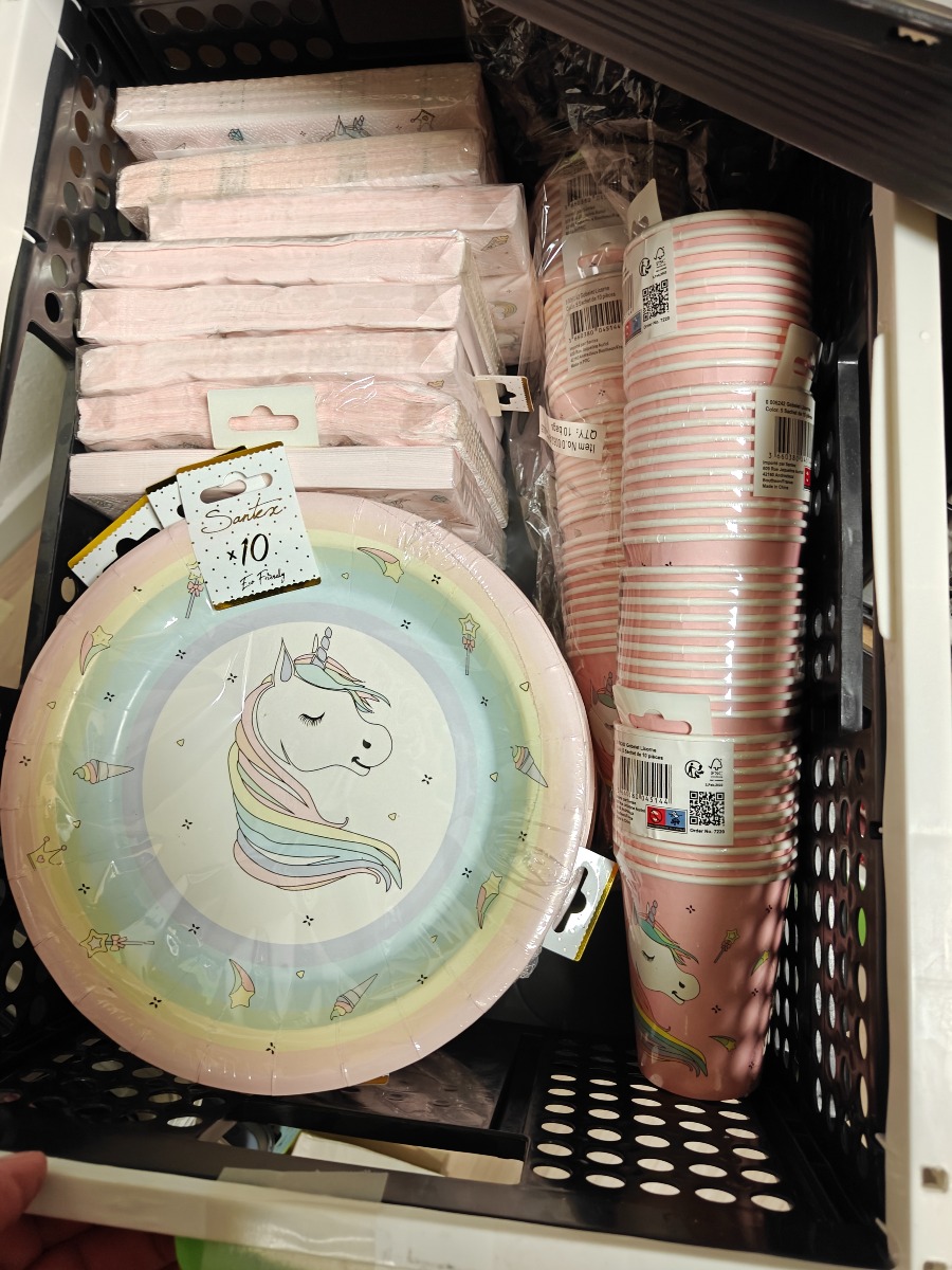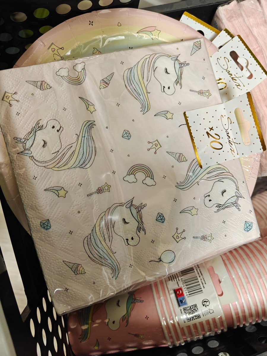 Festartikler med enhjørning tema. Tallerkner, krus og servietter. Varerne stammer fra lukket webshop. Alle varer er ubrugte og af rigtig god kvalitet.