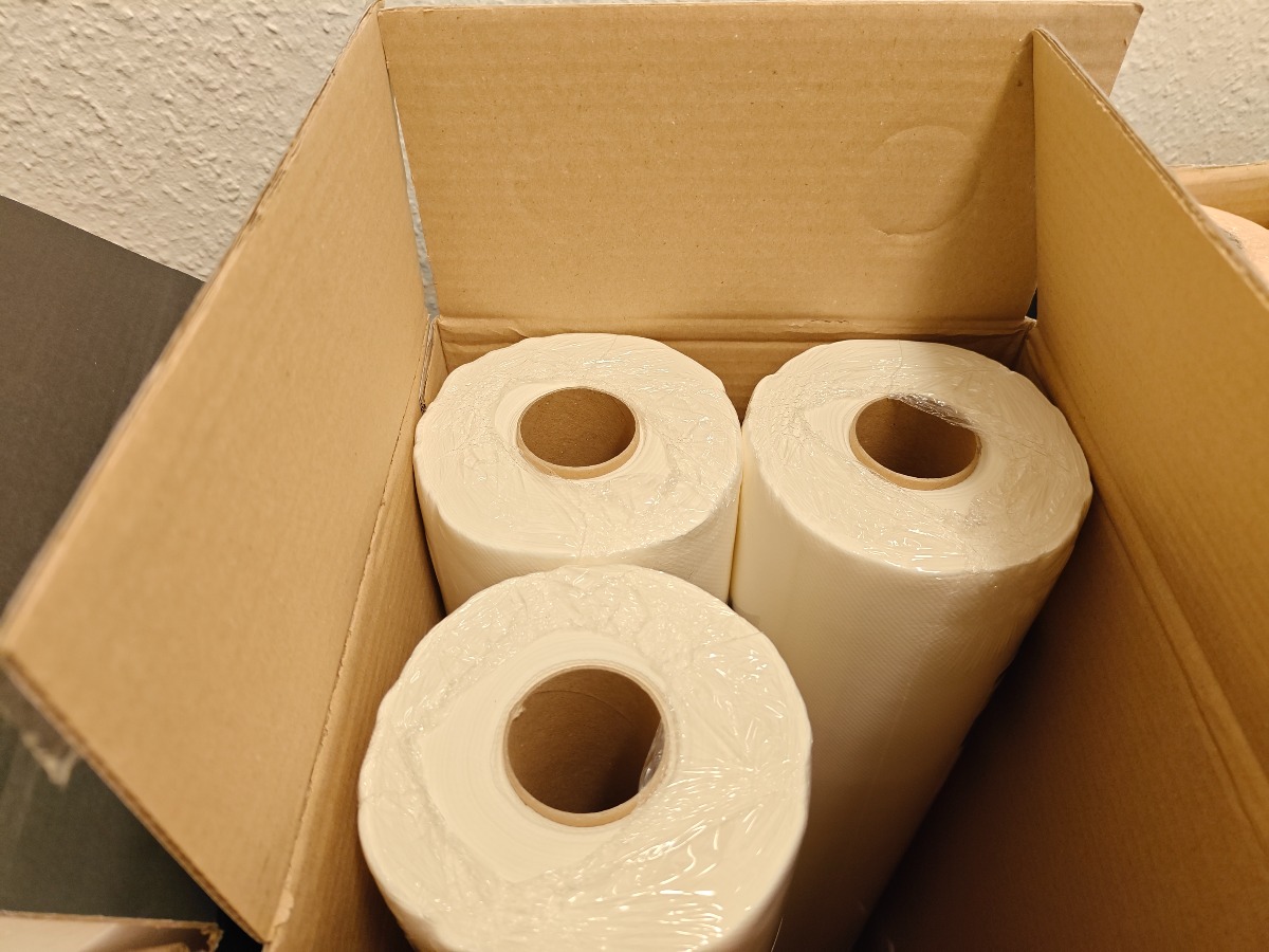 3 ruller hvid tekstildug a 25m. Bredde 120 cm. Varerne stammer fra lukket webshop. Alle varer er ubrugte og af rigtig god kvalitet.
