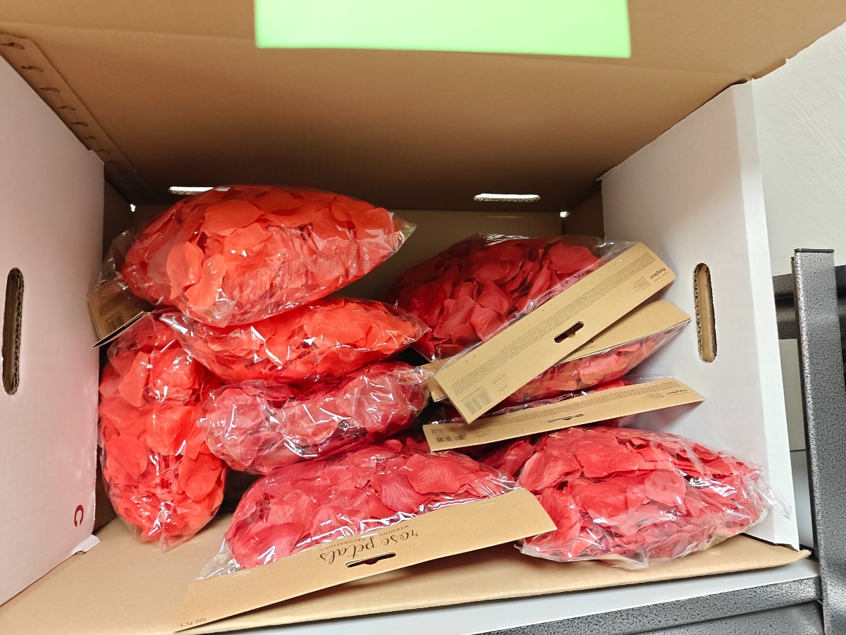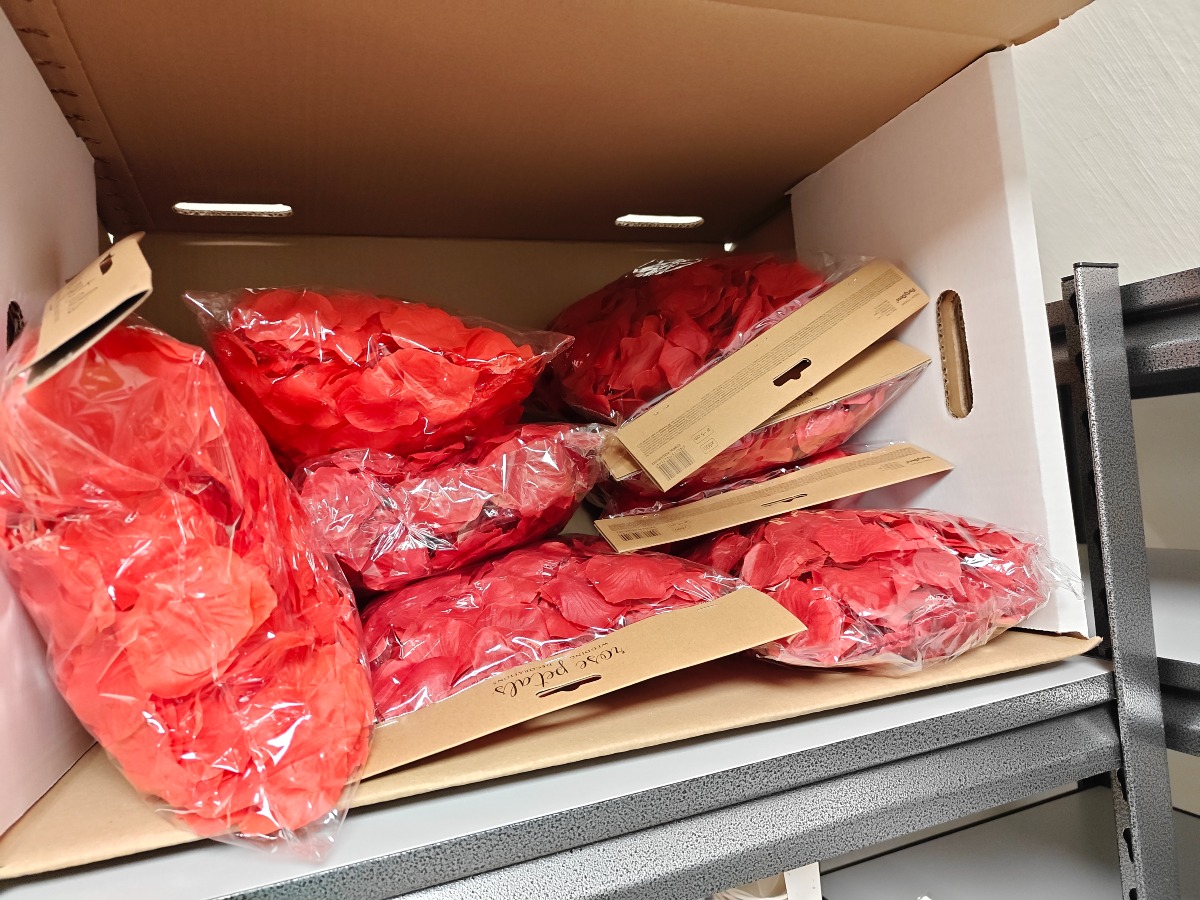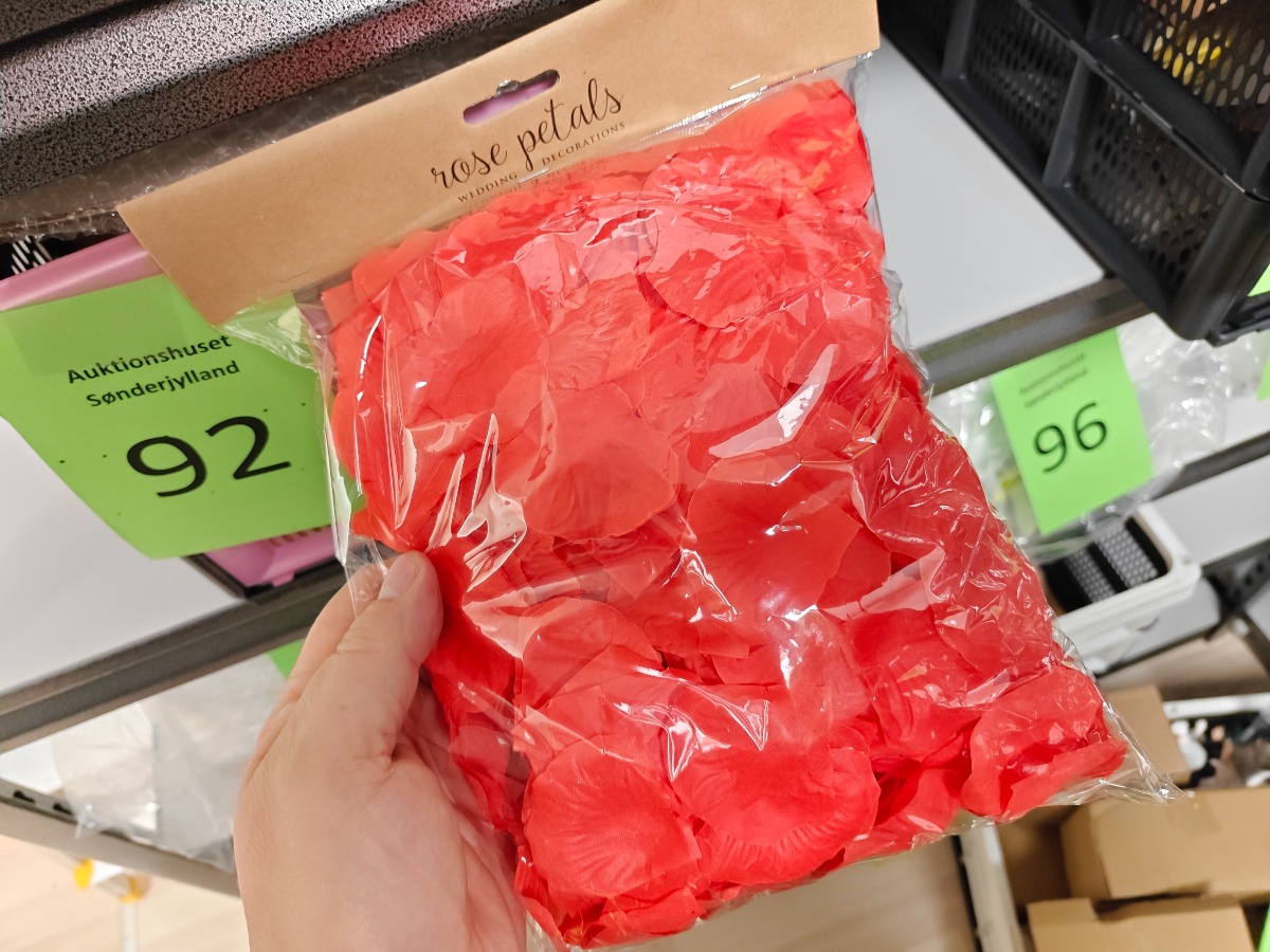 8 poser kunstige rosenblade a 500 stk. 2 nuancer. Varerne stammer fra lukket webshop. Alle varer er ubrugte og af rigtig god kvalitet.