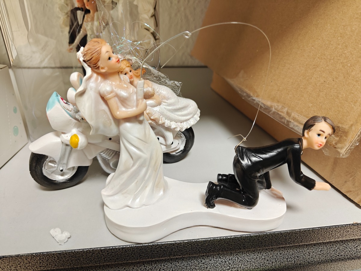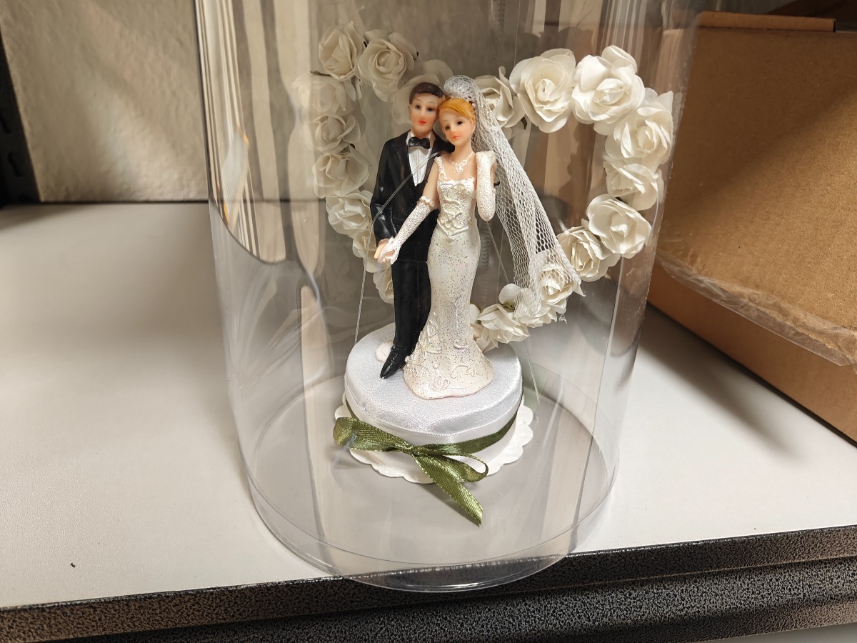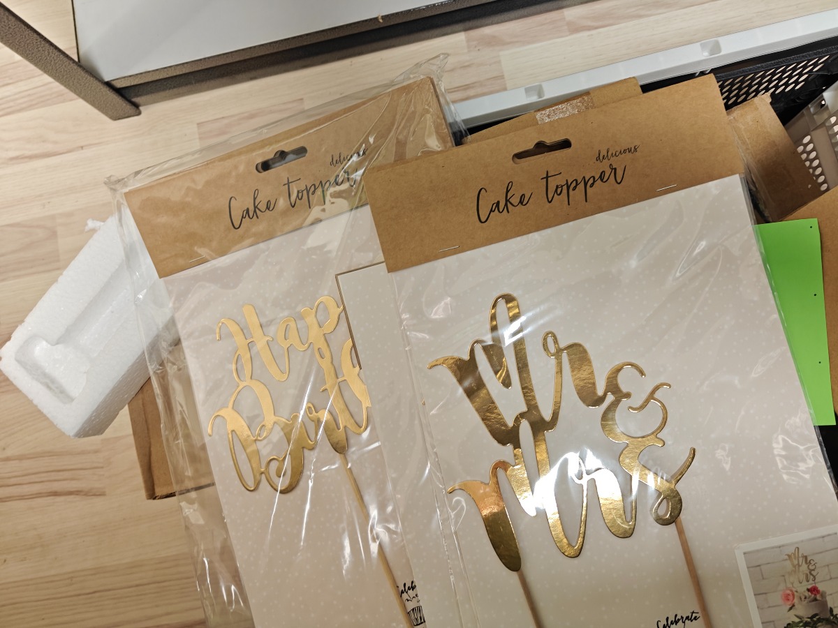 Topfigurer til bryllupskager. Ca. 10. Nogen ens. Samt æske med sæbebobler. Varerne stammer fra lukket webshop. Alle varer er ubrugte og af rigtig god kvalitet.
