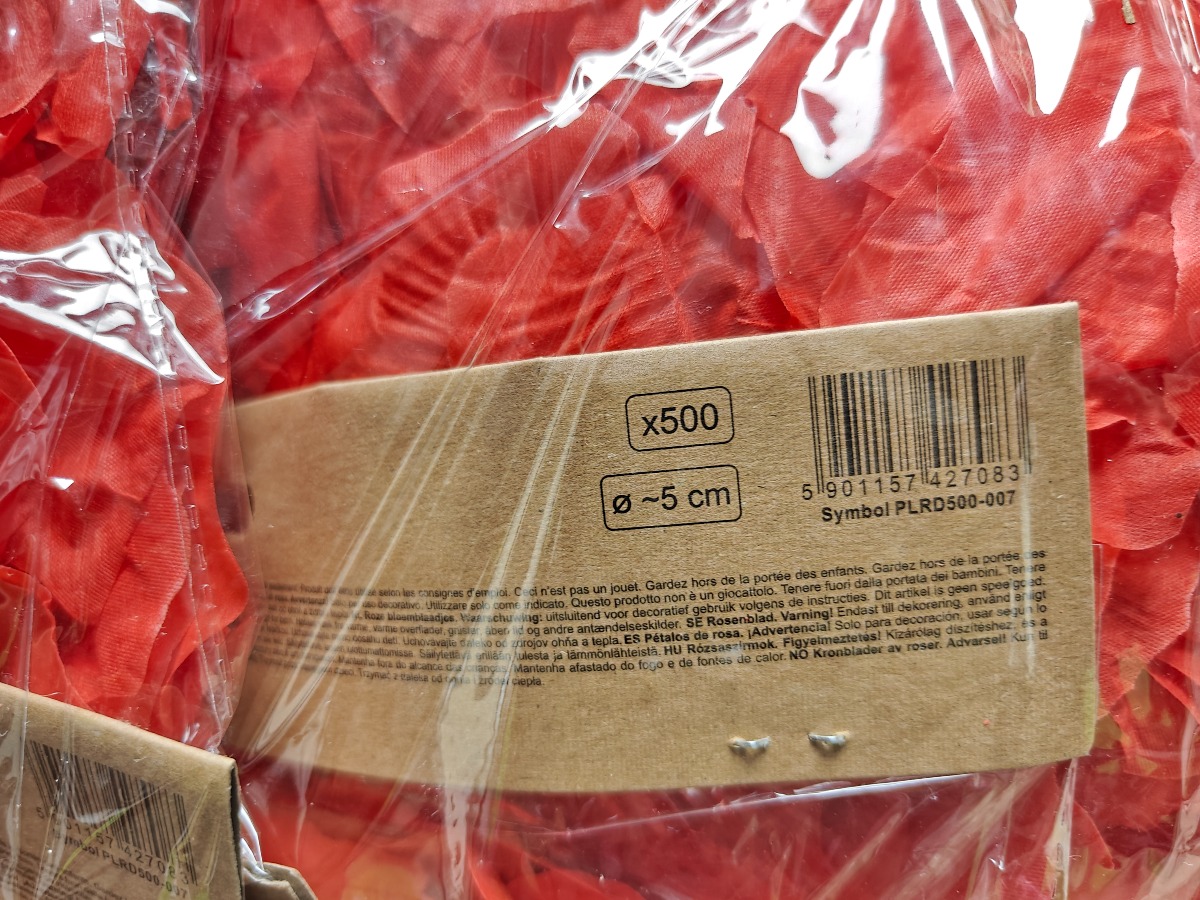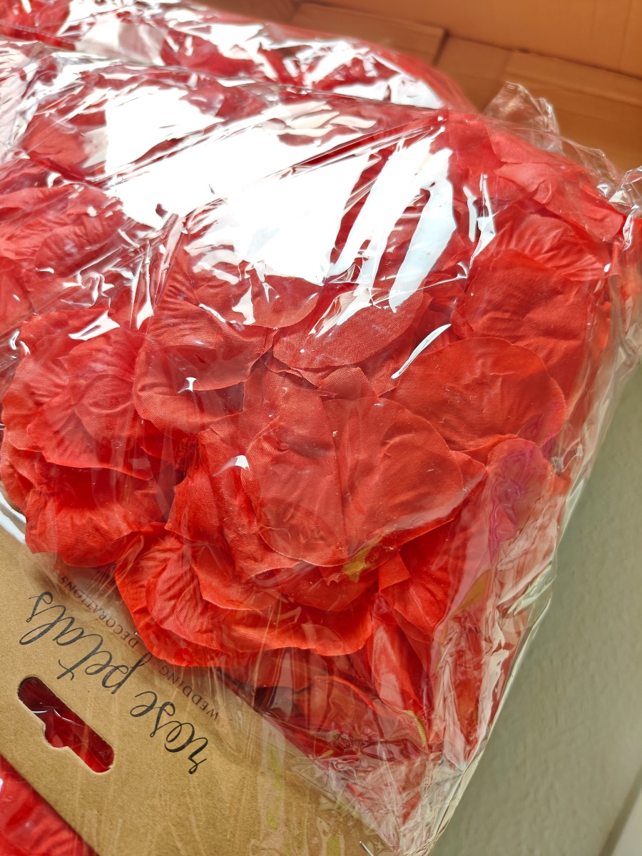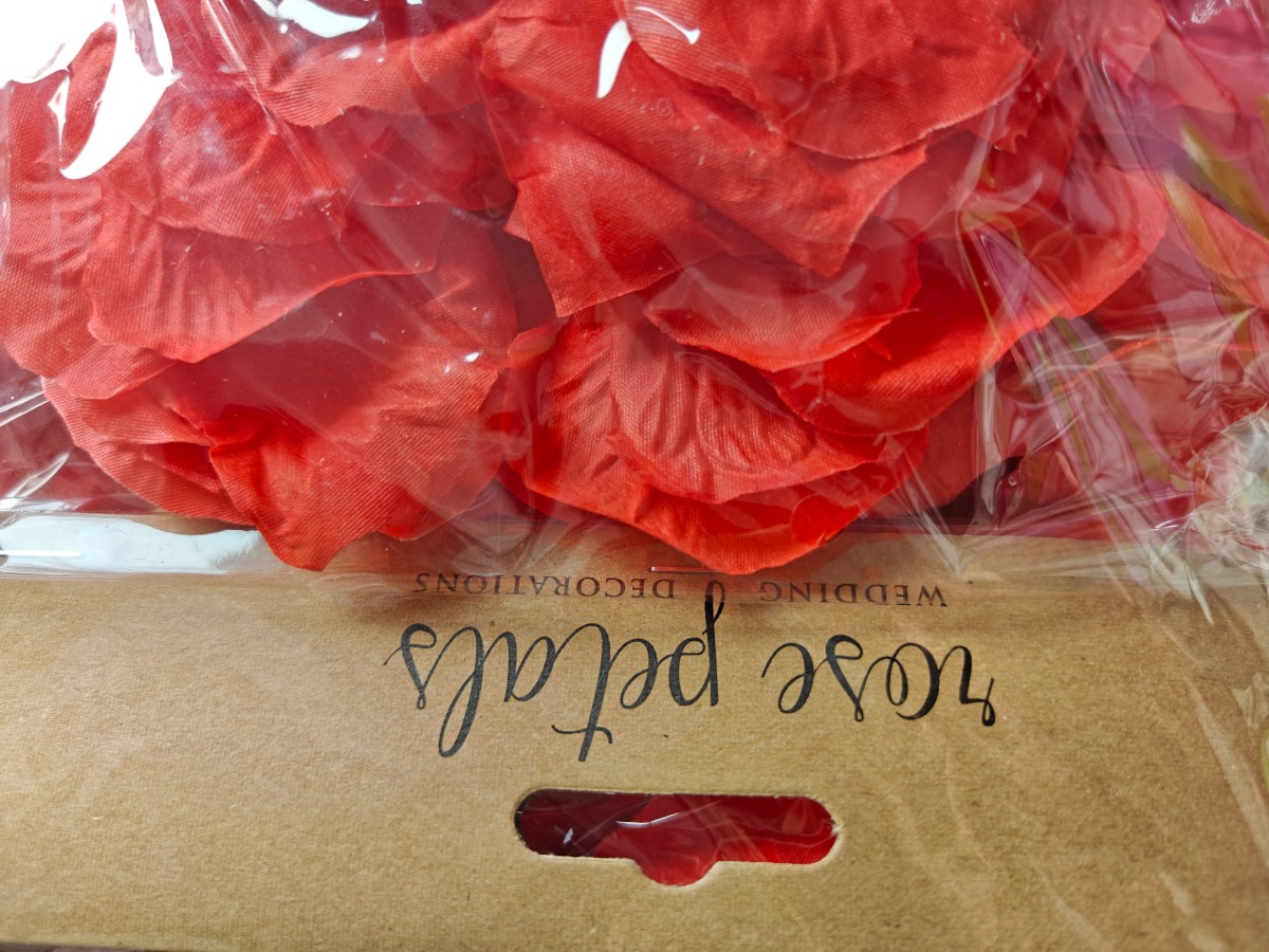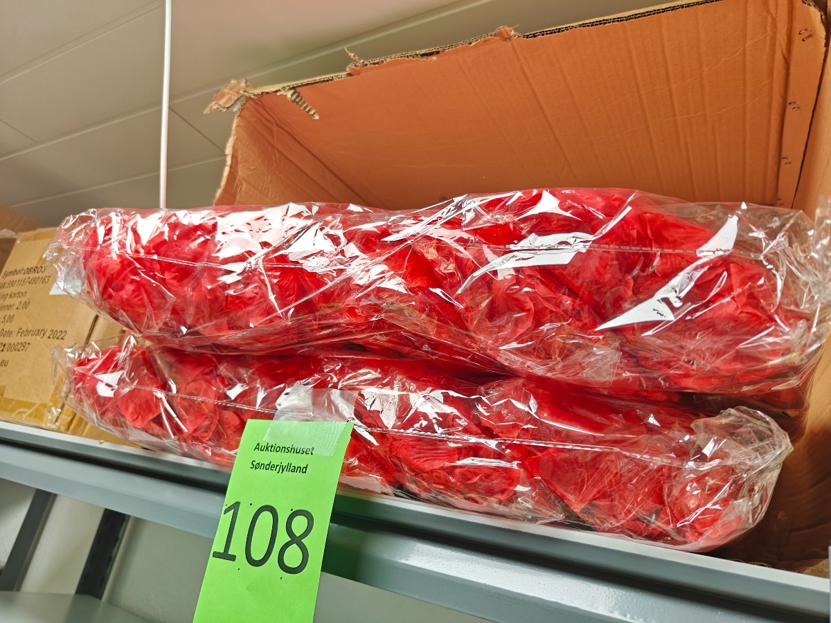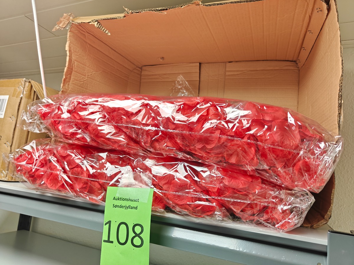 1000 kunstige rosenblade i rød. Varerne stammer fra lukket webshop. Alle varer er ubrugte og af rigtig god kvalitet.
