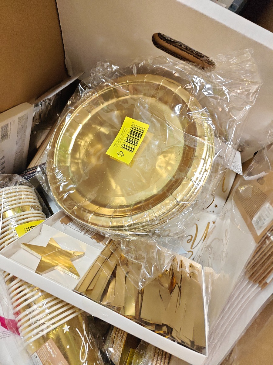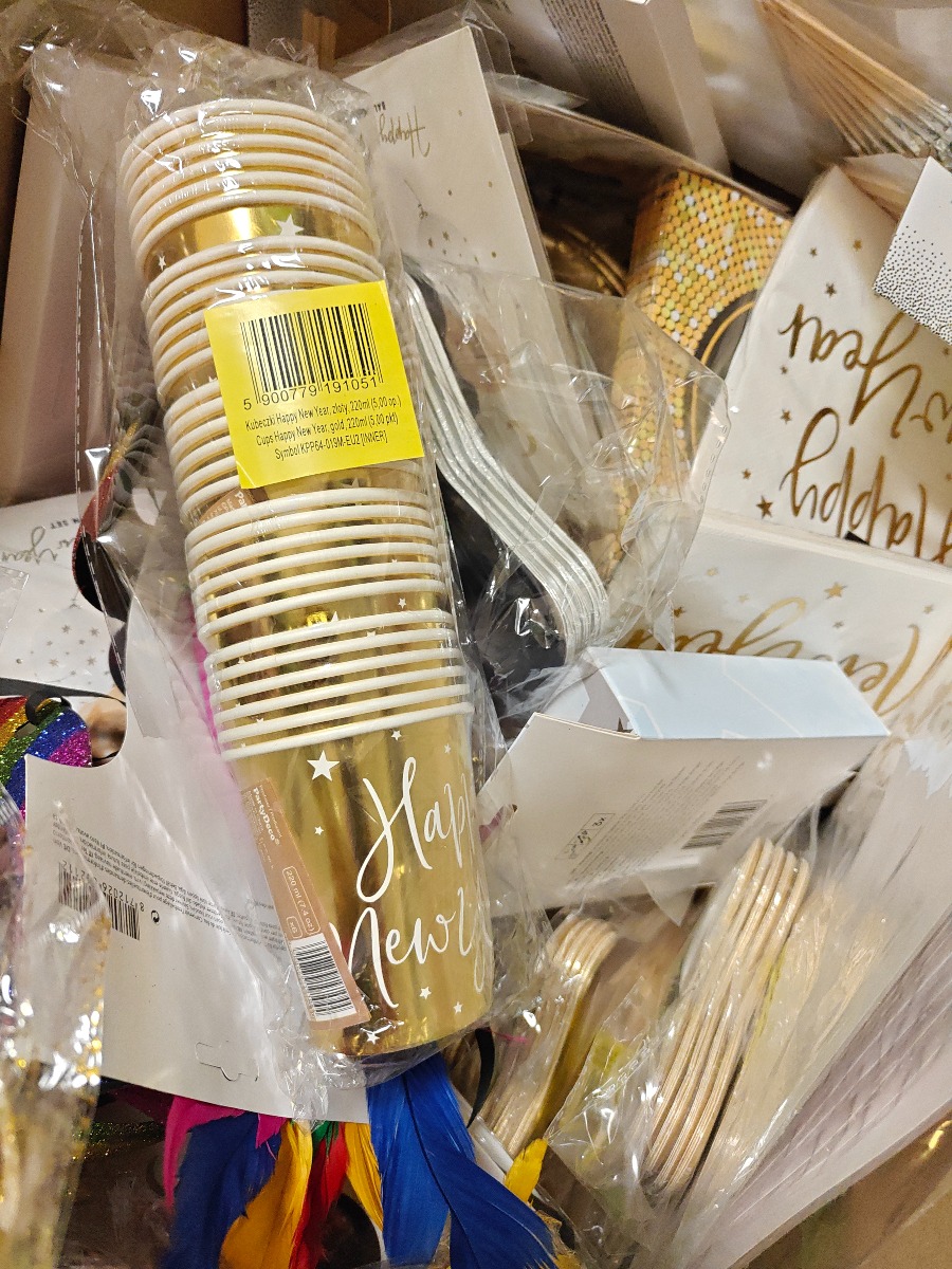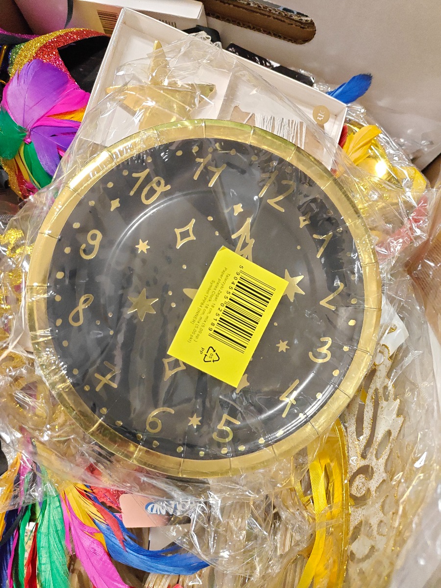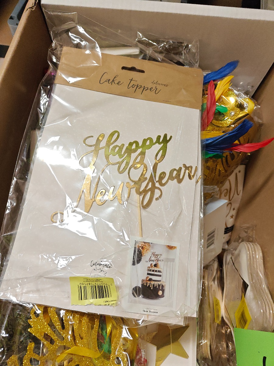 Artikler til Nytårs Aften. Tallerkner, krus, pynt m.m. Varerne stammer fra lukket webshop. Alle varer er ubrugte og af rigtig god kvalitet.