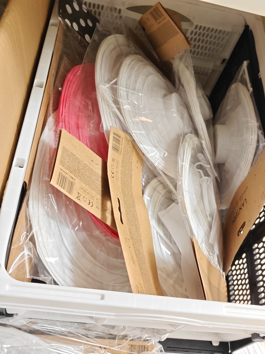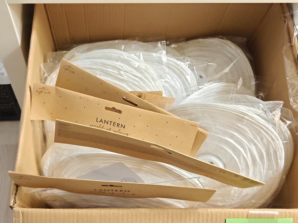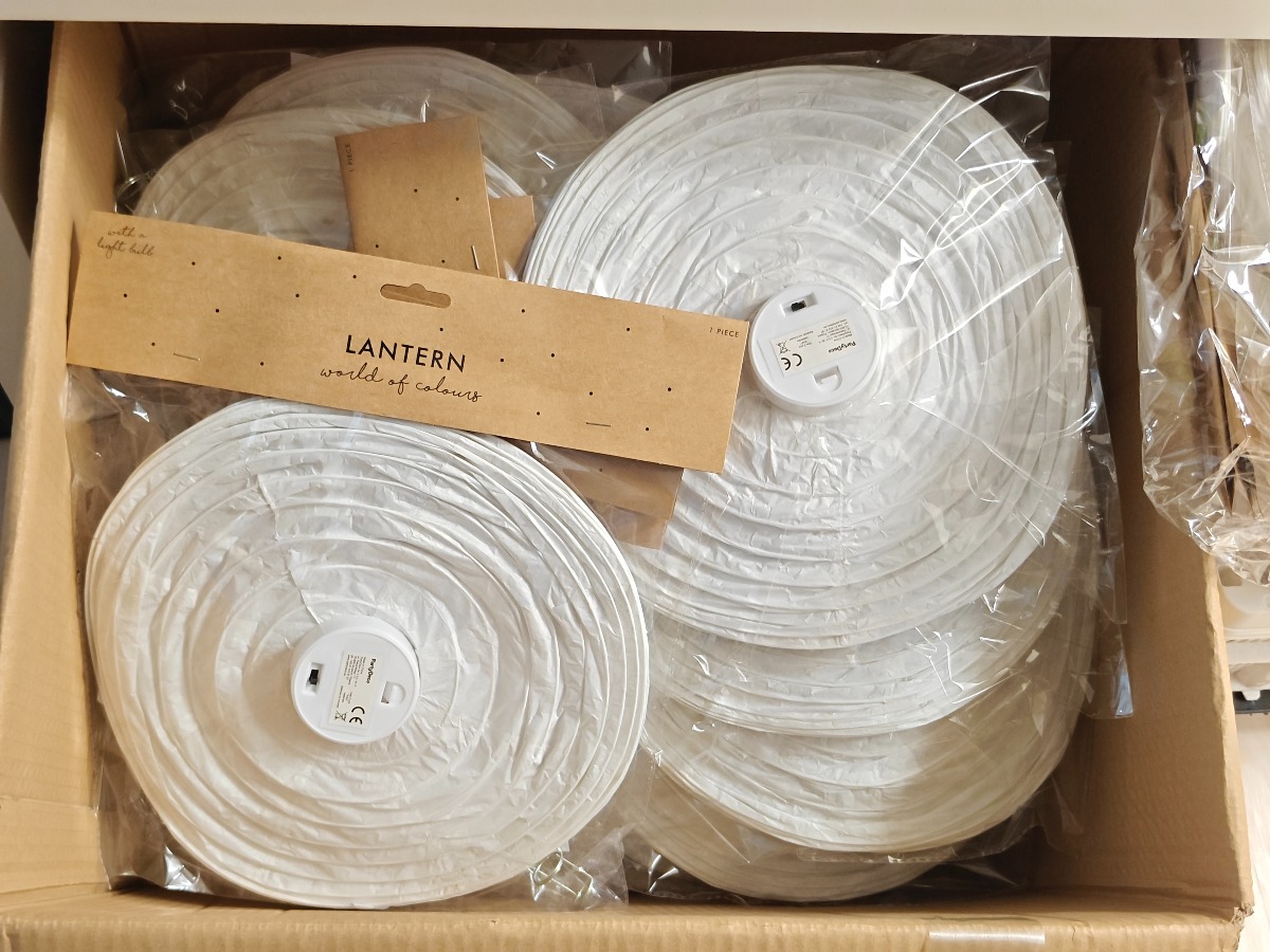 Stor mængde rispapirslanterner med batterilys. Ø. 20 og 30 cm. Varerne stammer fra lukket webshop. Alle varer er ubrugte og af rigtig god kvalitet.
