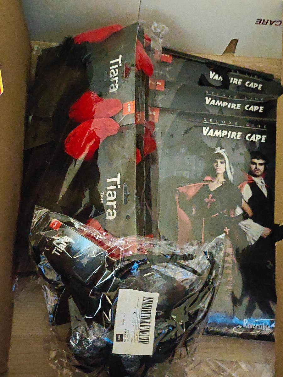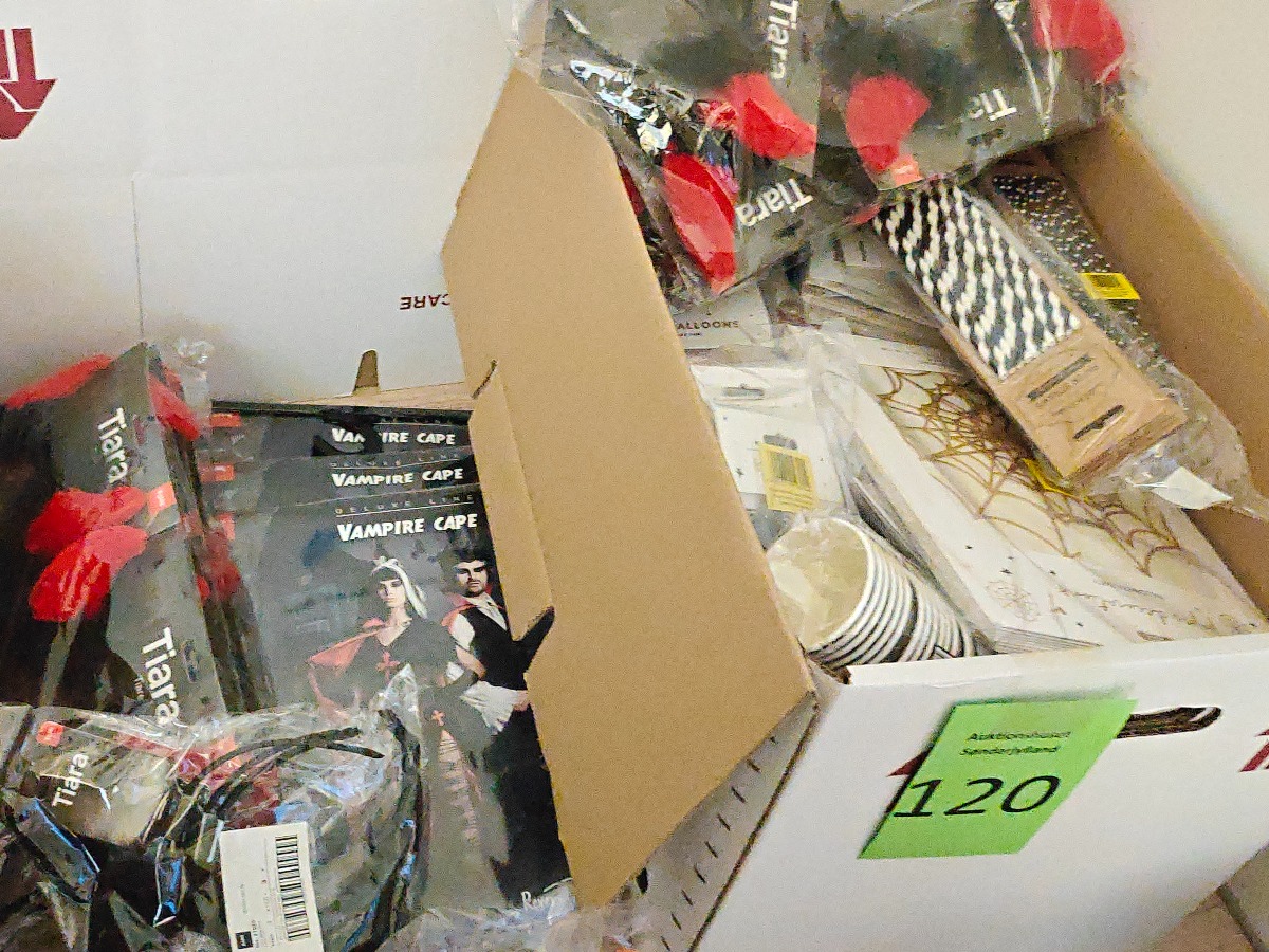 Udklædning og pynt til halloween. Mange forskellige ting. Varerne stammer fra lukket webshop. Alle varer er ubrugte og af rigtig god kvalitet.