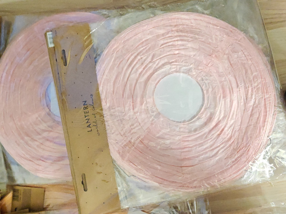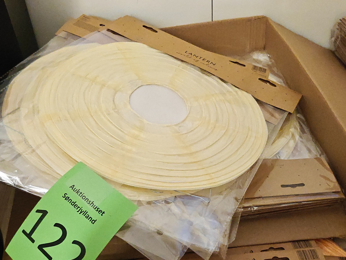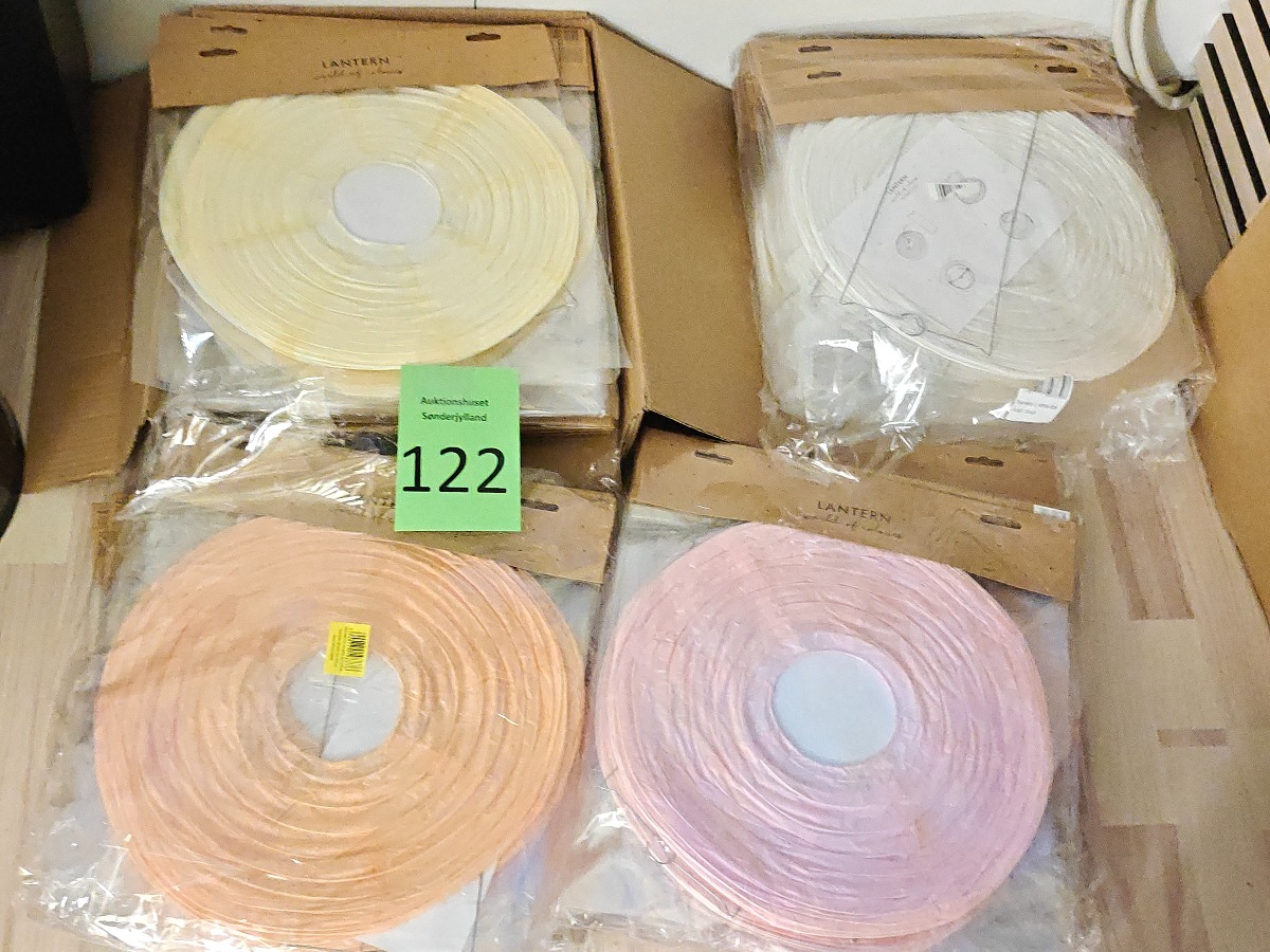 Rispapirlamper i 4 farver. Ø. 35 cm. Mange af hver farve. Varerne stammer fra lukket webshop. Alle varer er ubrugte og af rigtig god kvalitet.