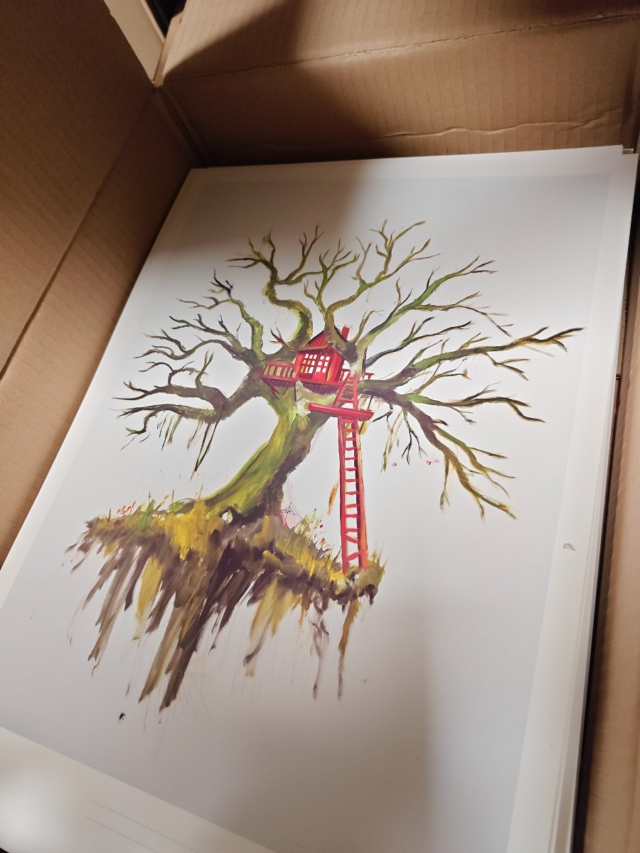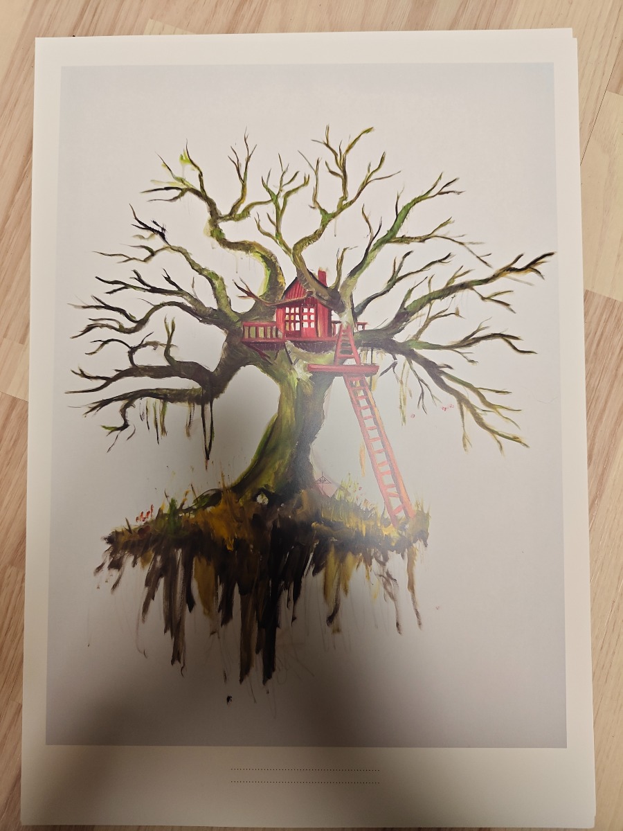 Plakattryk med motiv af hus i træ. ca. 30 x 50 cm. Stort antal.  Varerne stammer fra lukket webshop. Alle varer er ubrugte og af rigtig god kvalitet.