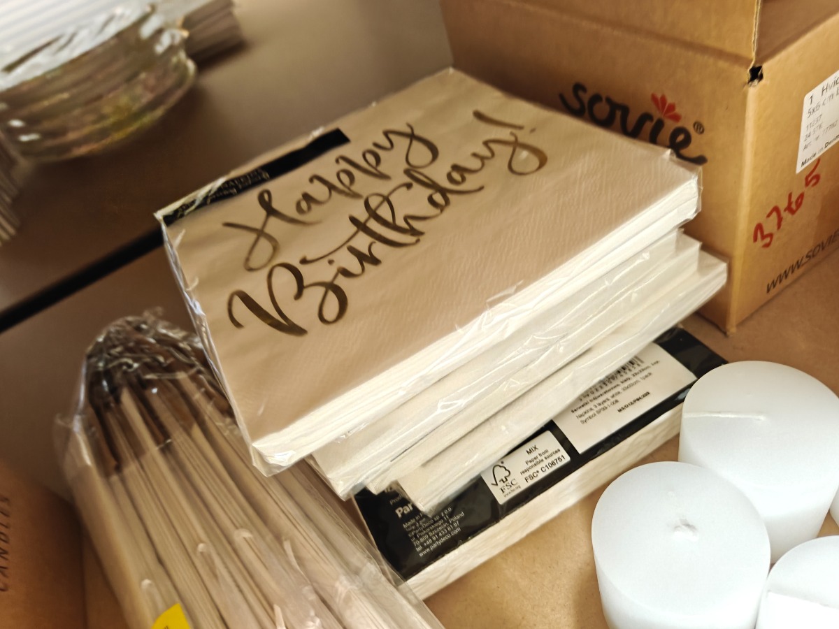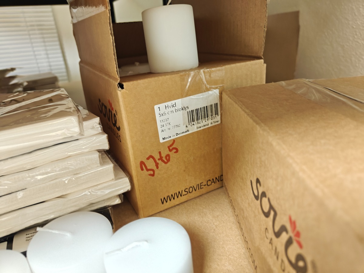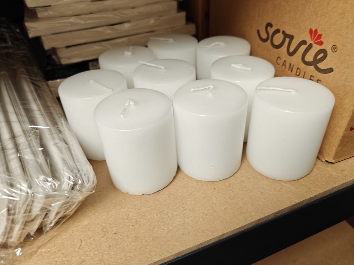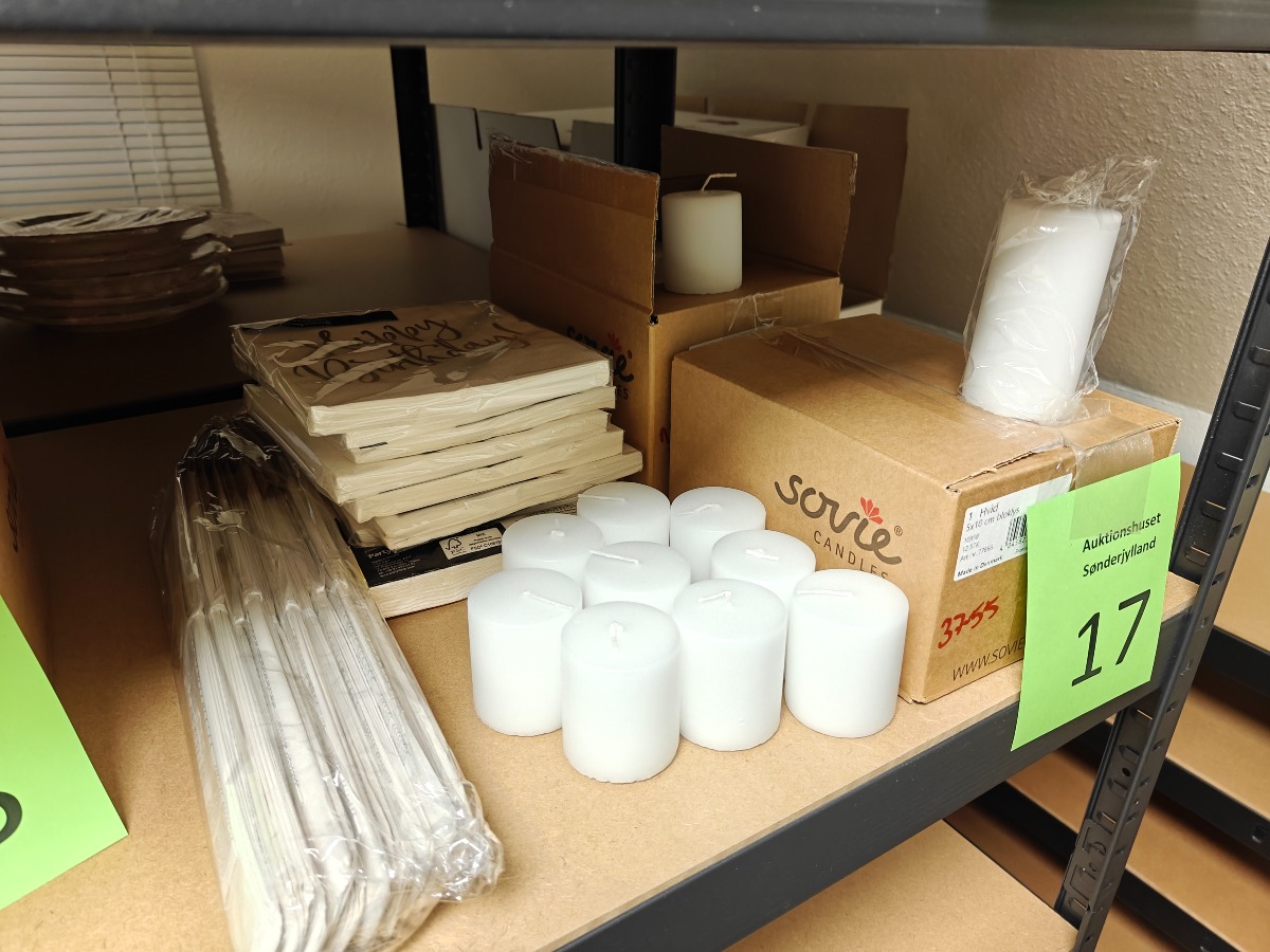 Forskelligt til bordækning i hvid. Servietter, bloklys og rosetter. Varerne stammer fra lukket webshop. Alle varer er ubrugte og af rigtig god kvalitet.