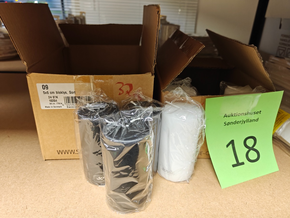Bloklys i sort og hvid. Se foto for antal. Varerne stammer fra lukket webshop. Alle varer er ubrugte og af rigtig god kvalitet.