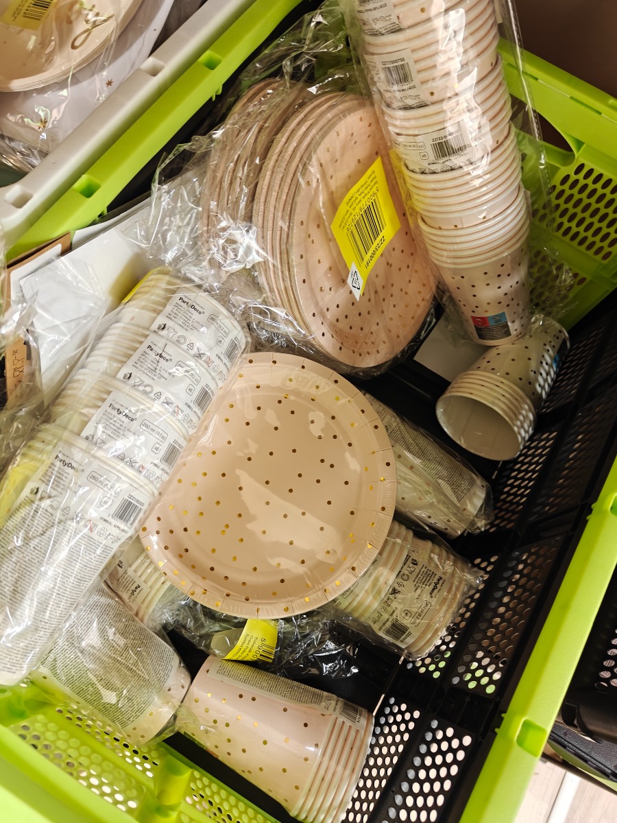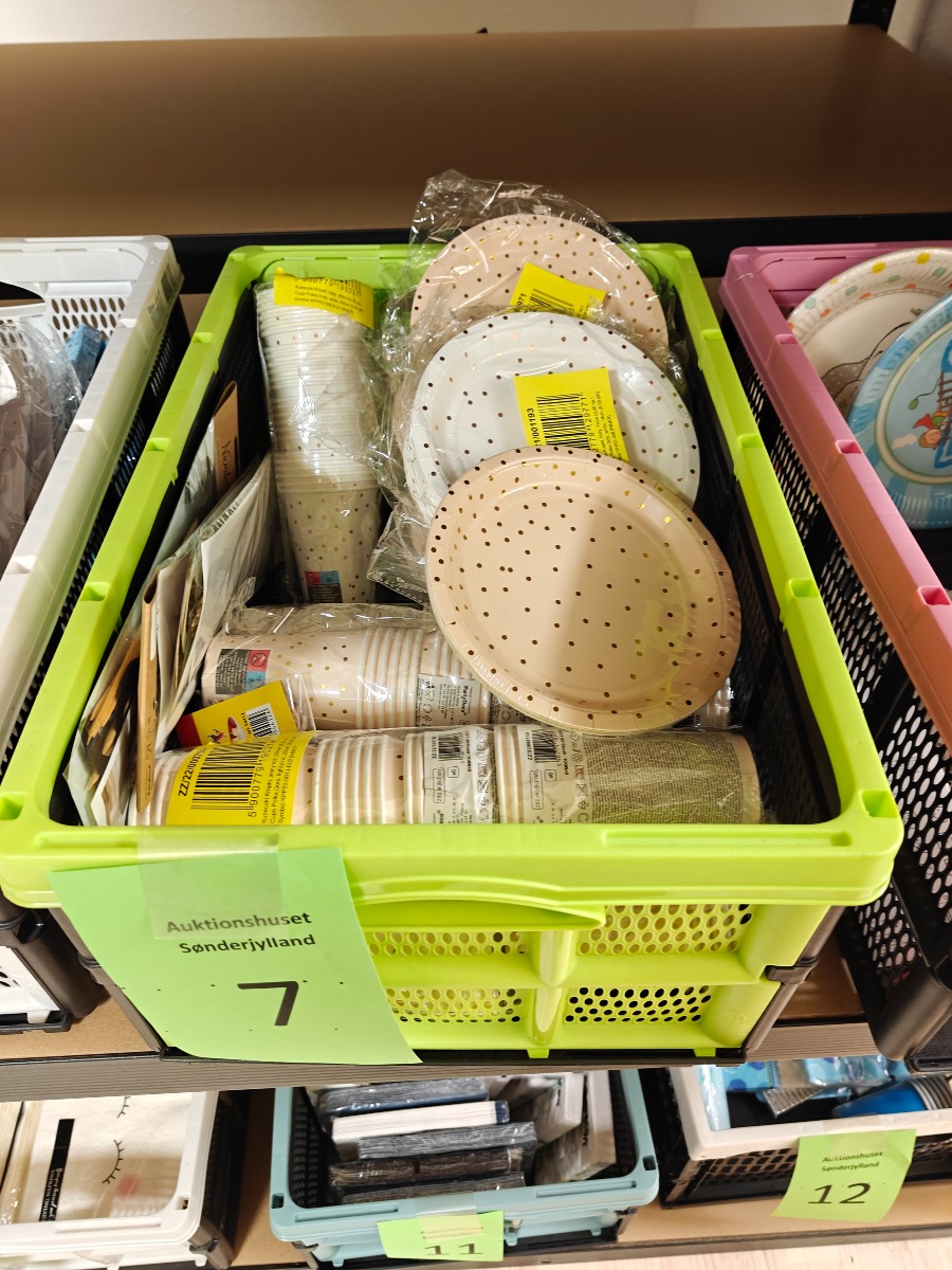 Engangsservice i sart rosa og hvid. Varerne stammer fra lukket webshop. Alle varer er ubrugte og af rigtig god kvalitet.