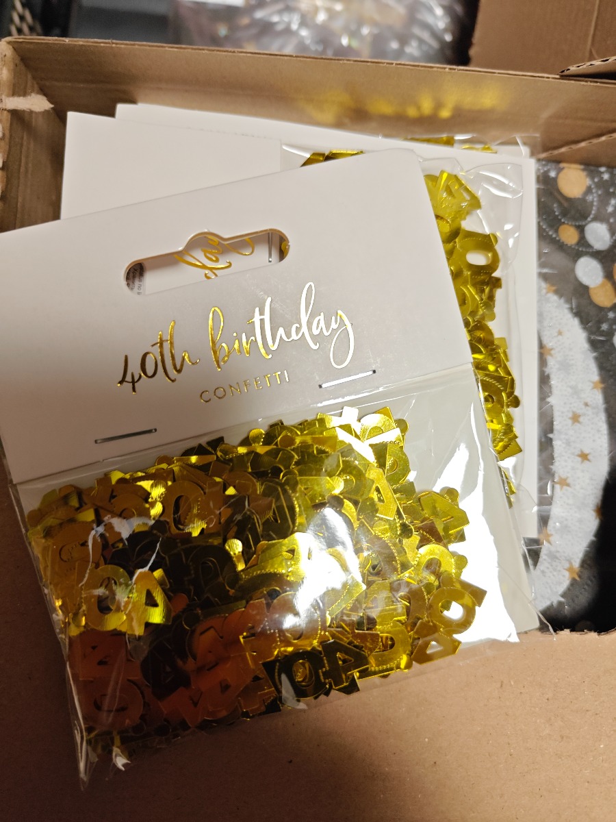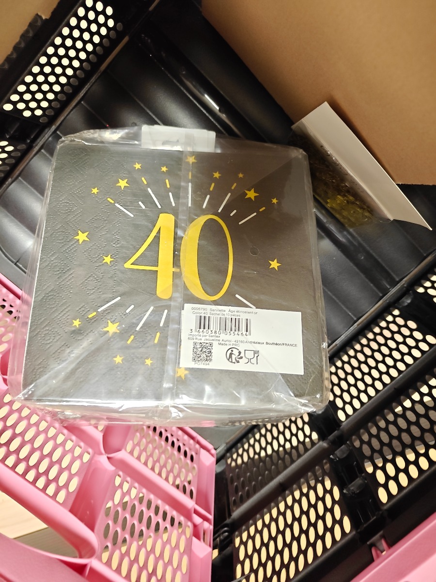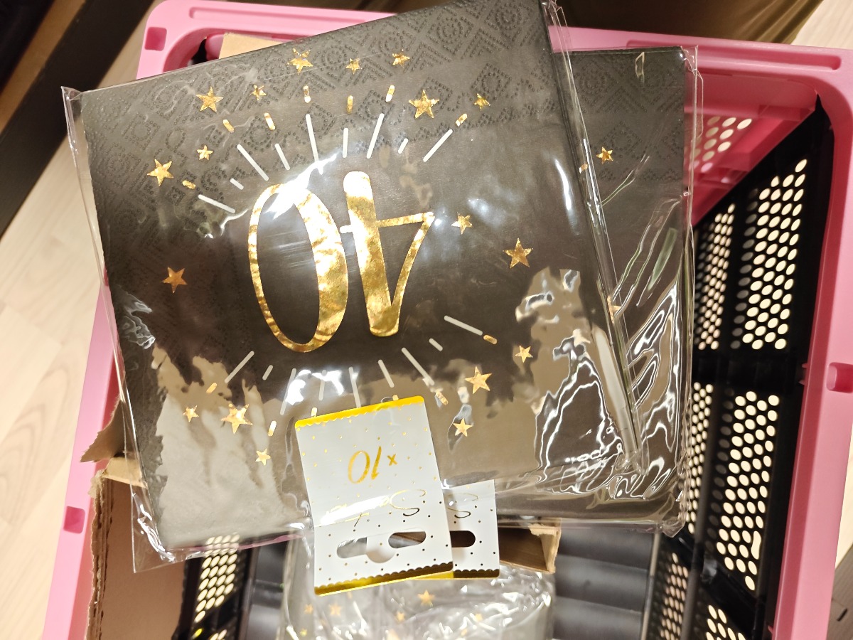 Servietter og "strøtal". 40 års fødselsdag. Varerne stammer fra lukket webshop. Alle varer er ubrugte og af rigtig god kvalitet.