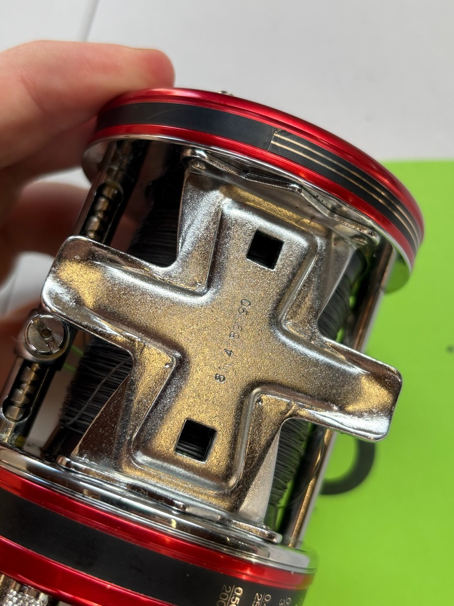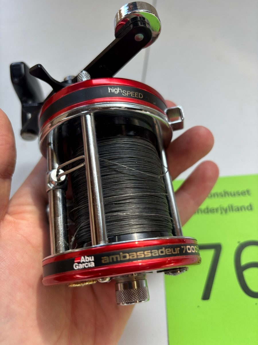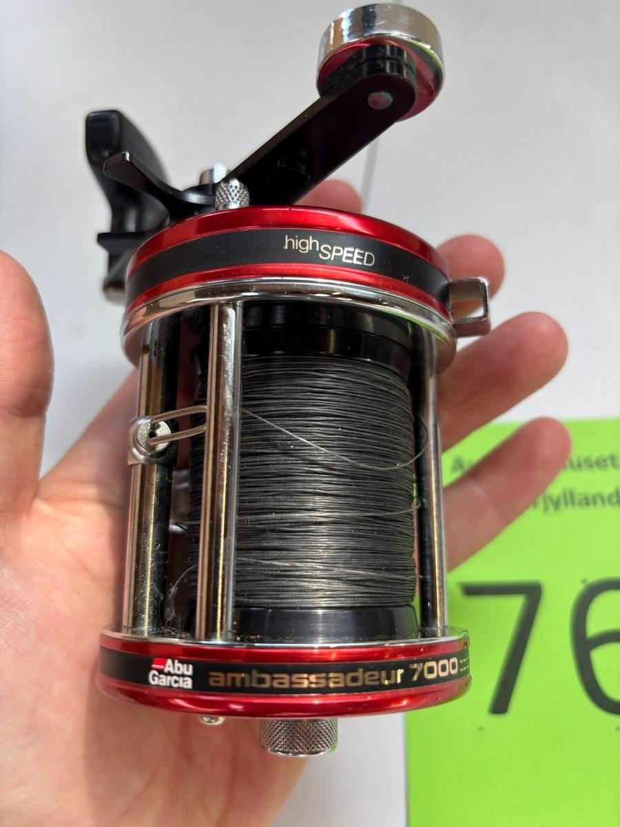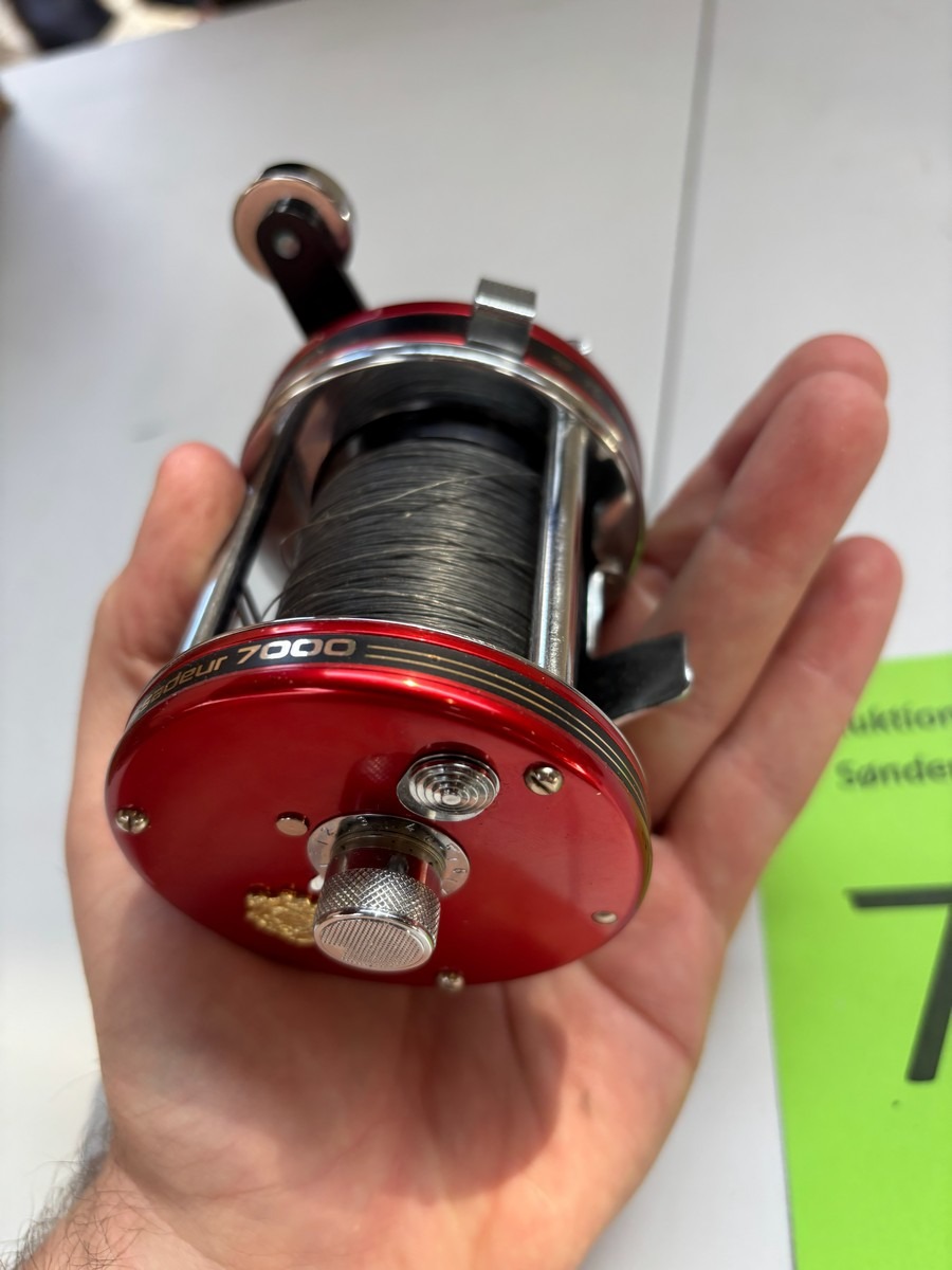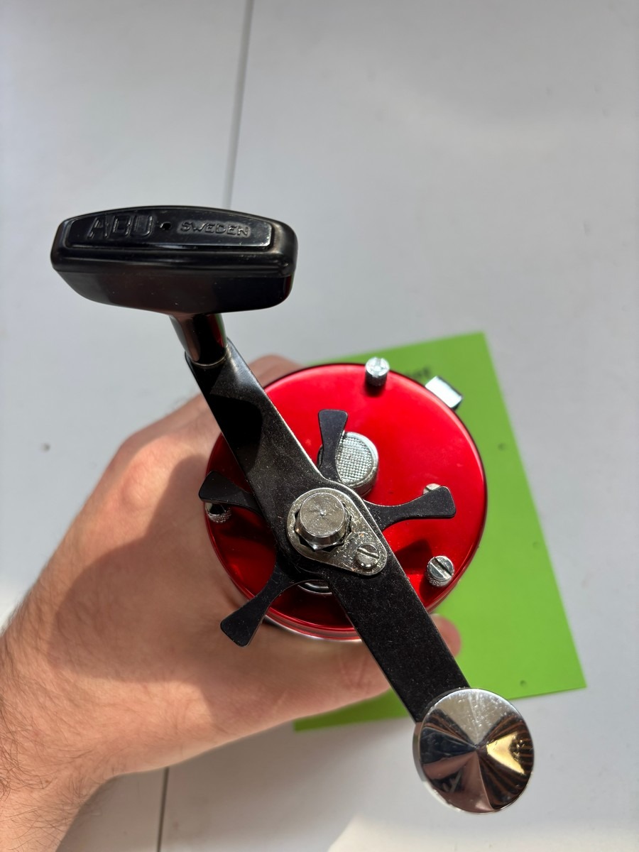 Klassisk og solidt hav-/trollinghjul fra ABU med høj indspolingshastighed (“High Speed”) og level wind linefører. Fremstår i flot rød finish med kromdetaljer og original ABU-håndtag. Monteret med line.