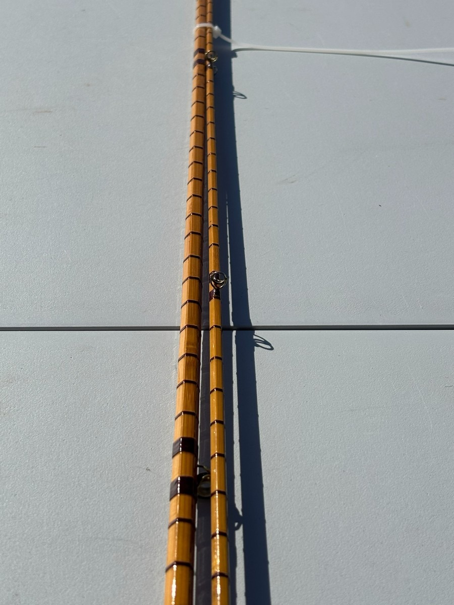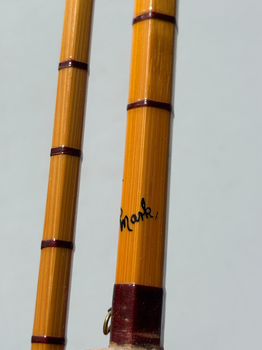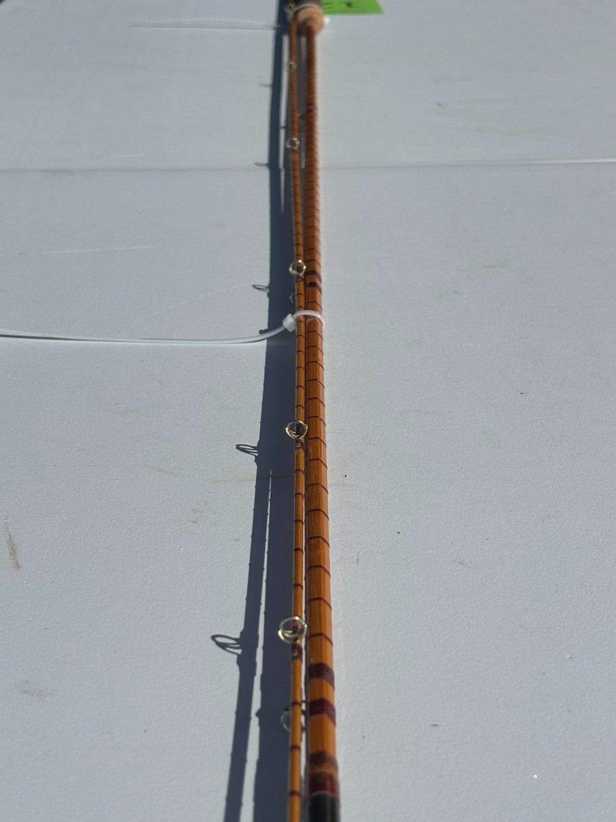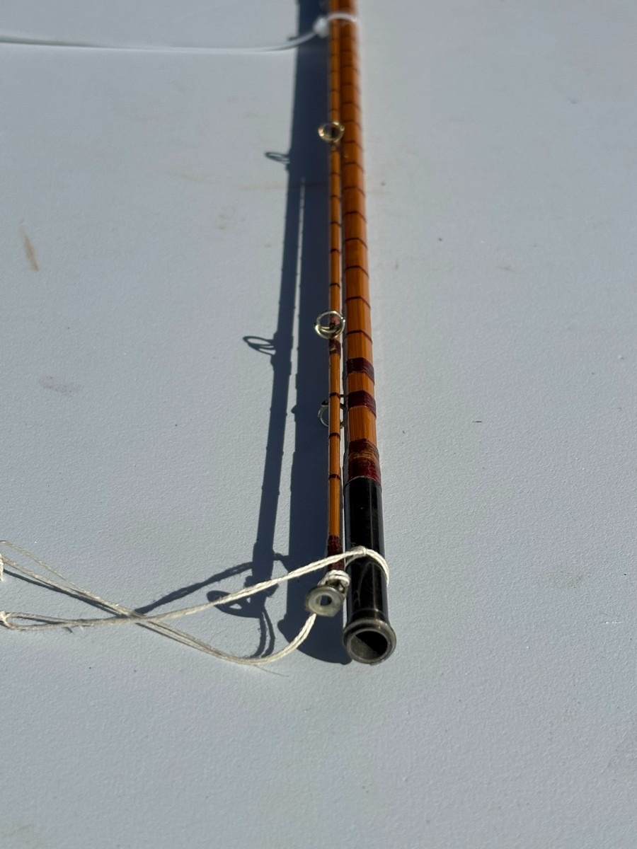 Ældre klassisk fiskestang i splitcane (bambus), håndskrevet mærket “The Pope” samt yderligere model-/værkstedsangivelse, Ca 8–9 fod.. Fremstår i pæn stand. Fra dødsbo