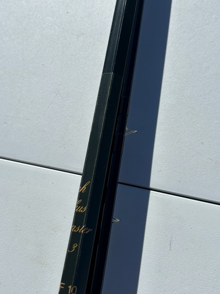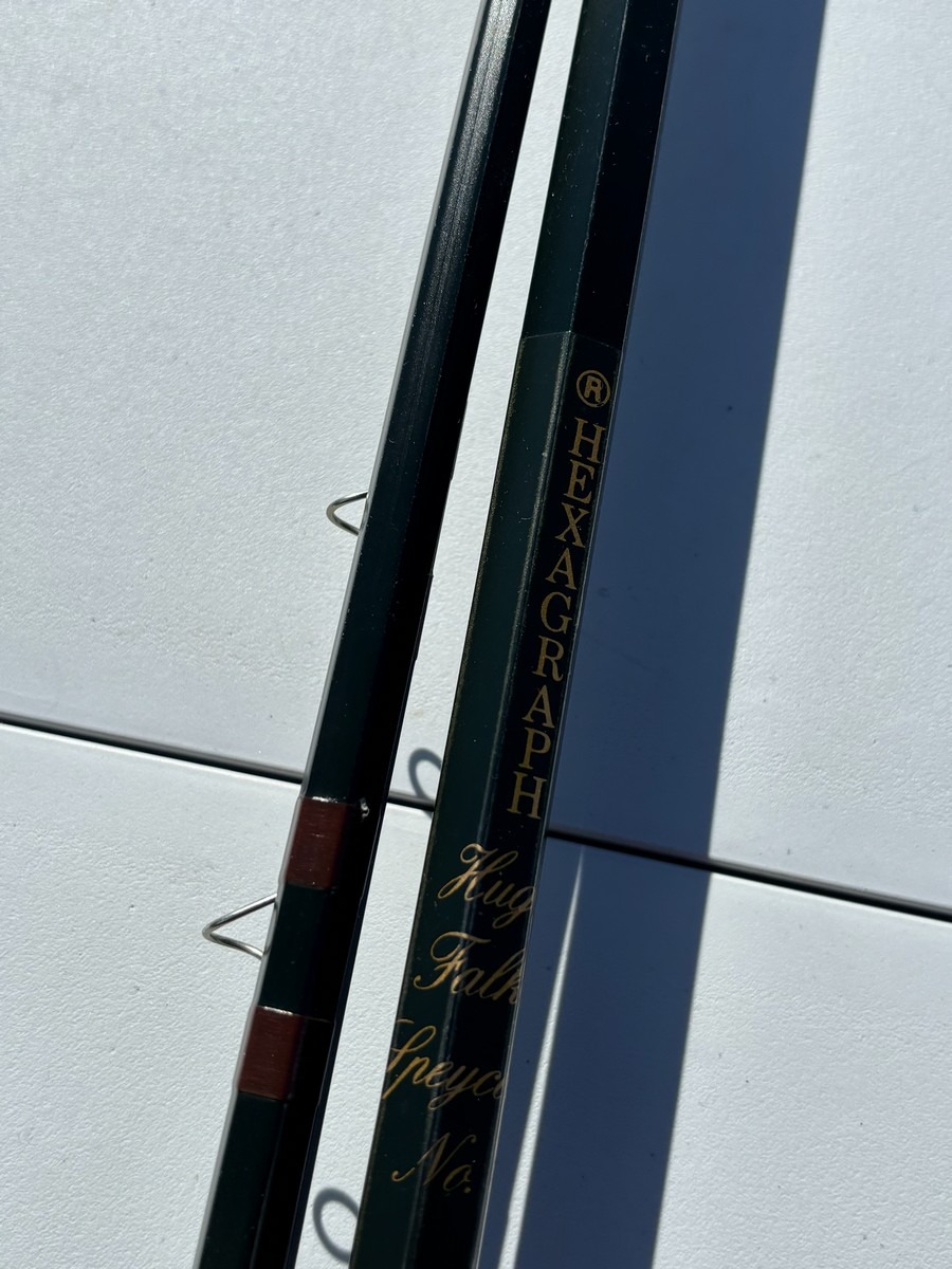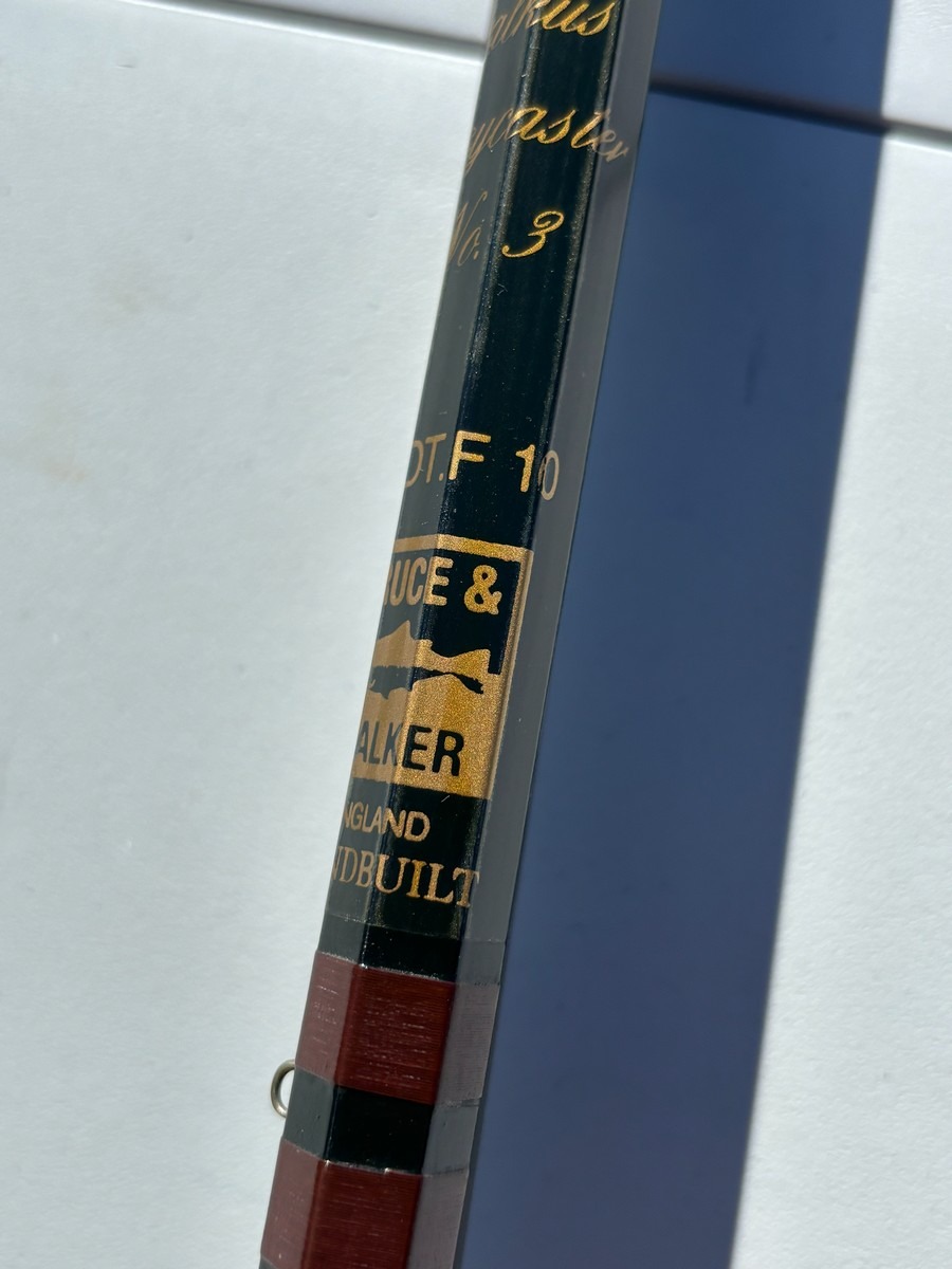 Klassisk og kraftig fluestang fra engelske Bruce & Walker, model “Hexagraph”. Stangen er mærket 10 fod (#10 lineklasse), hvilket gør den velegnet til tungere fiskeri – fx lakse- eller kystfiskeri.