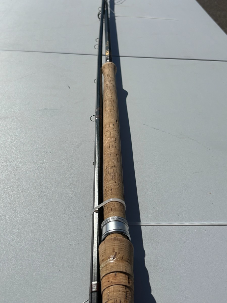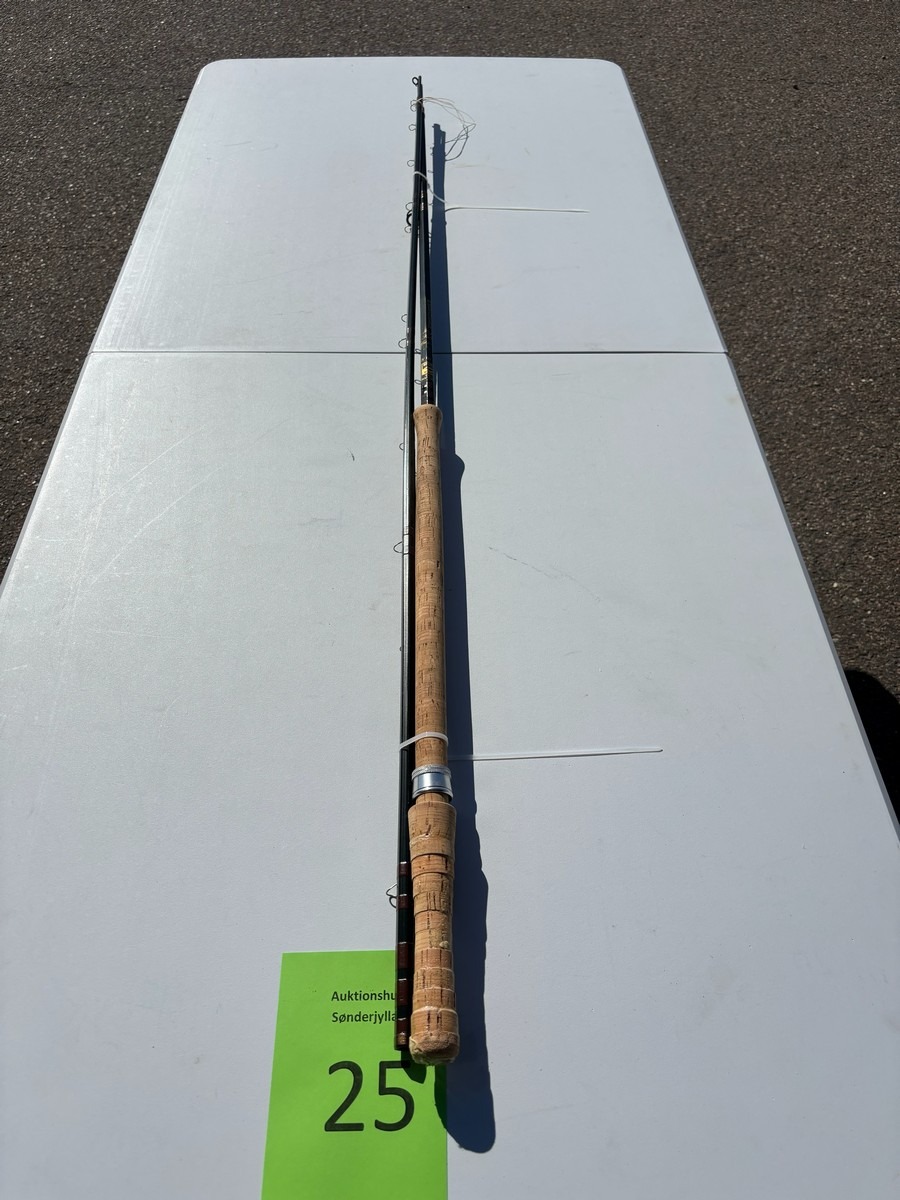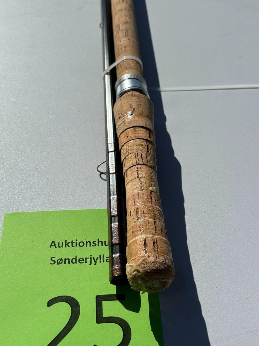 Klassisk og kraftig fluestang fra engelske Bruce & Walker, model “Hexagraph”. Stangen er mærket 10 fod (#10 lineklasse), hvilket gør den velegnet til tungere fiskeri – fx lakse- eller kystfiskeri.