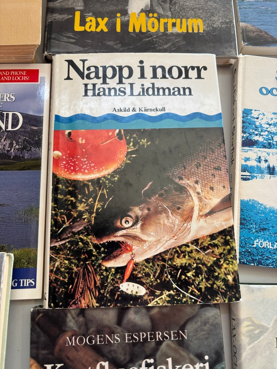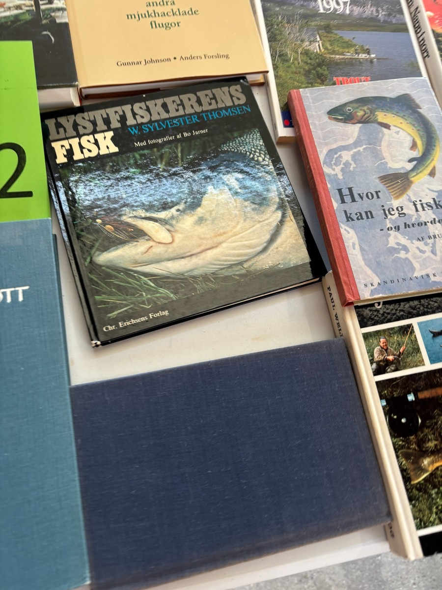 Diverse fiskebøger, mange stk.. Fremstår i pæn stand. Fra dødsbo