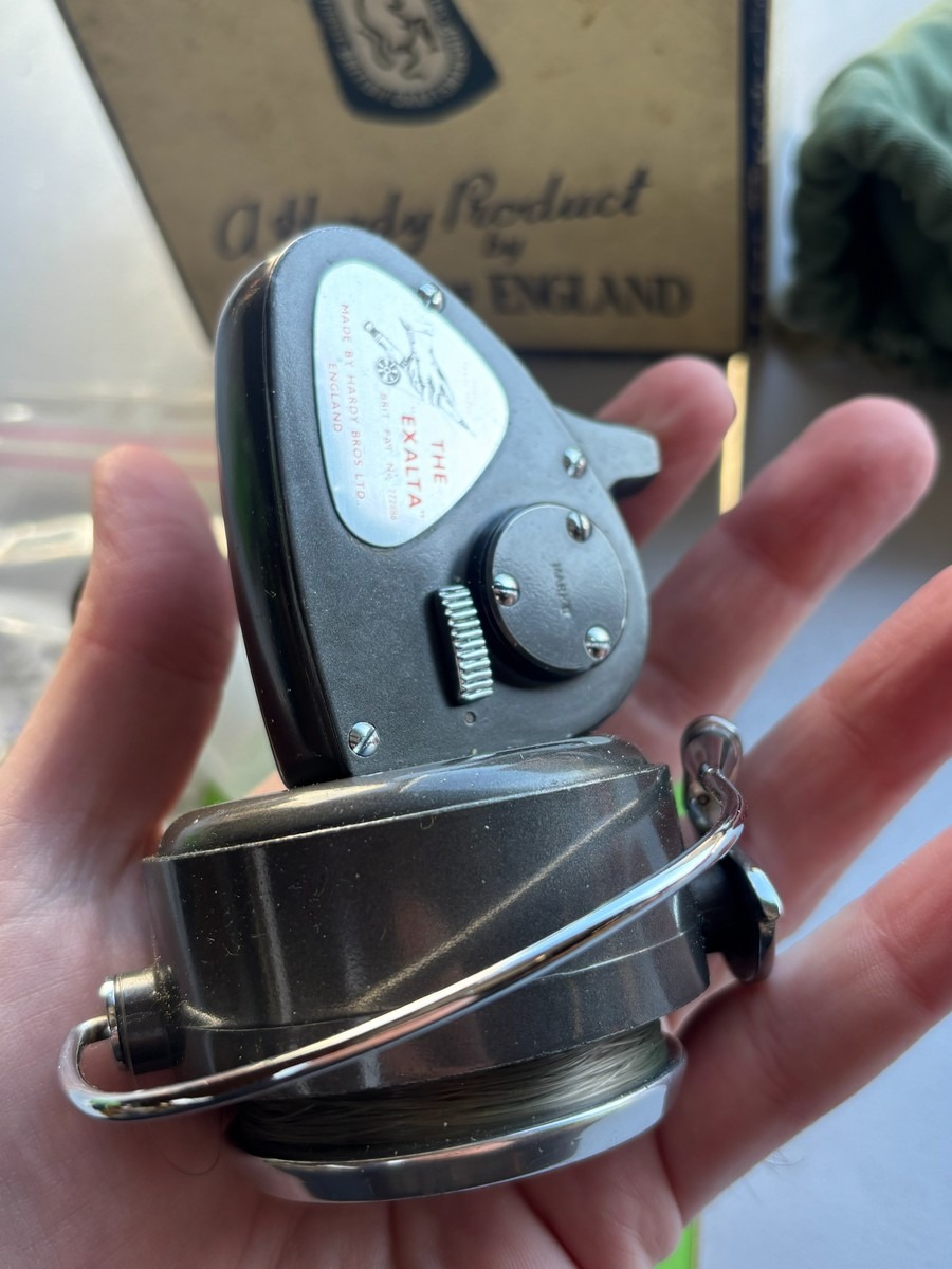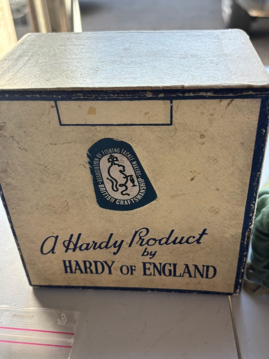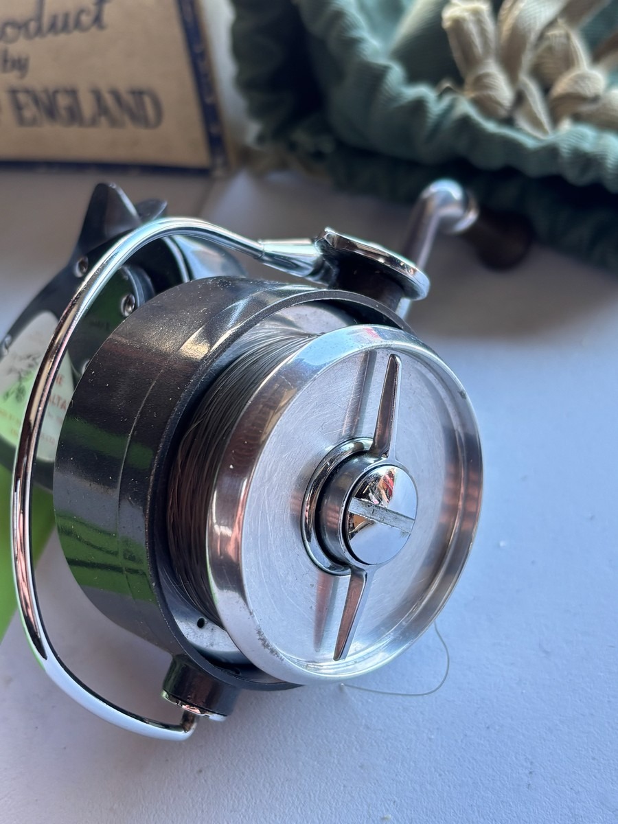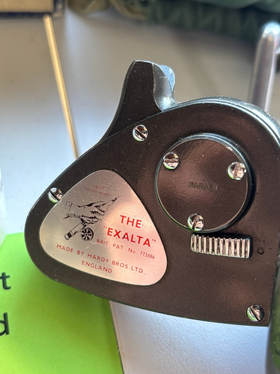 Fiskesnelle – Hardy “The Exalta” Mark II (England) med æske og tilbehør