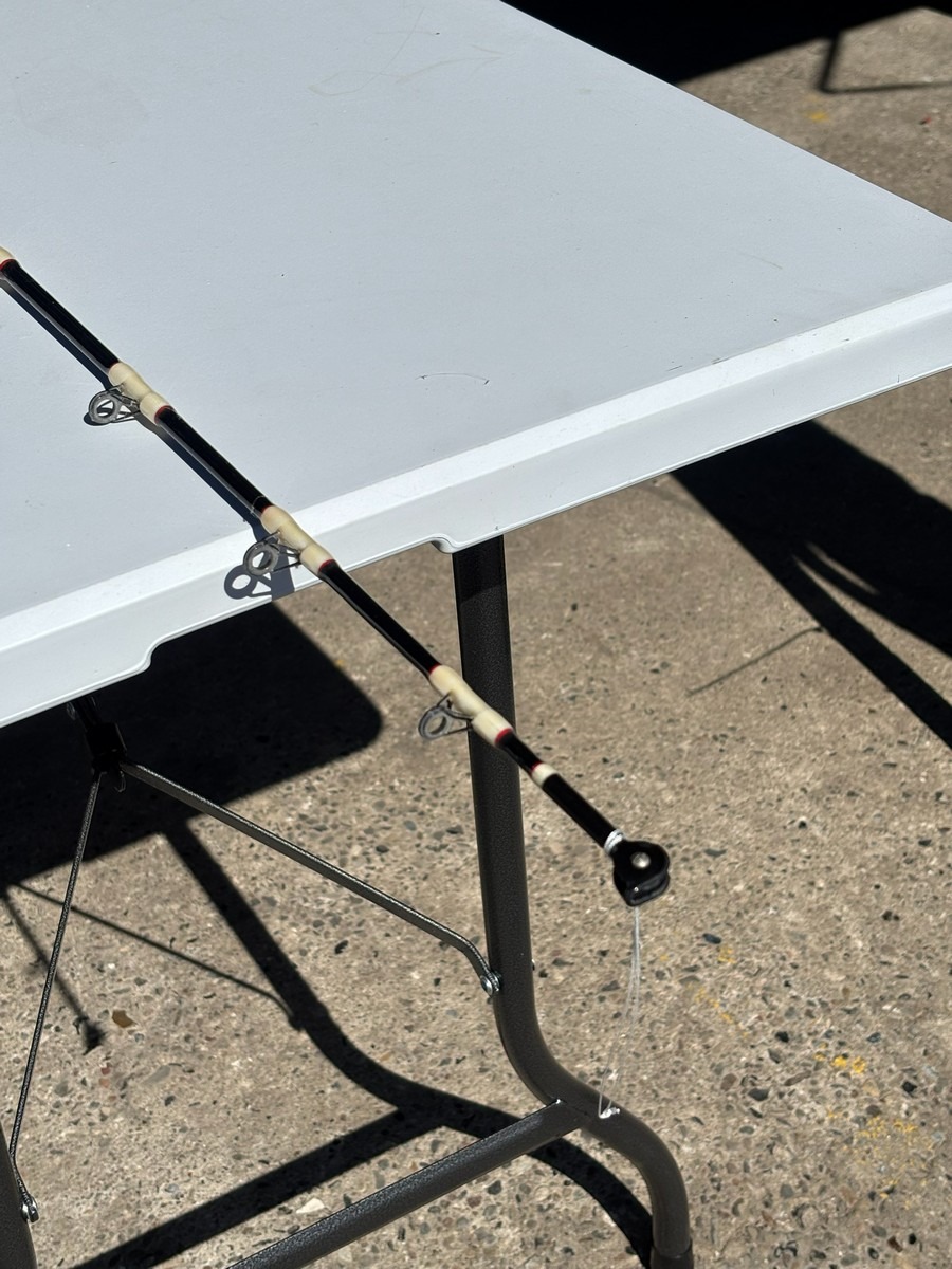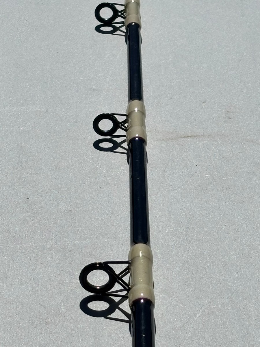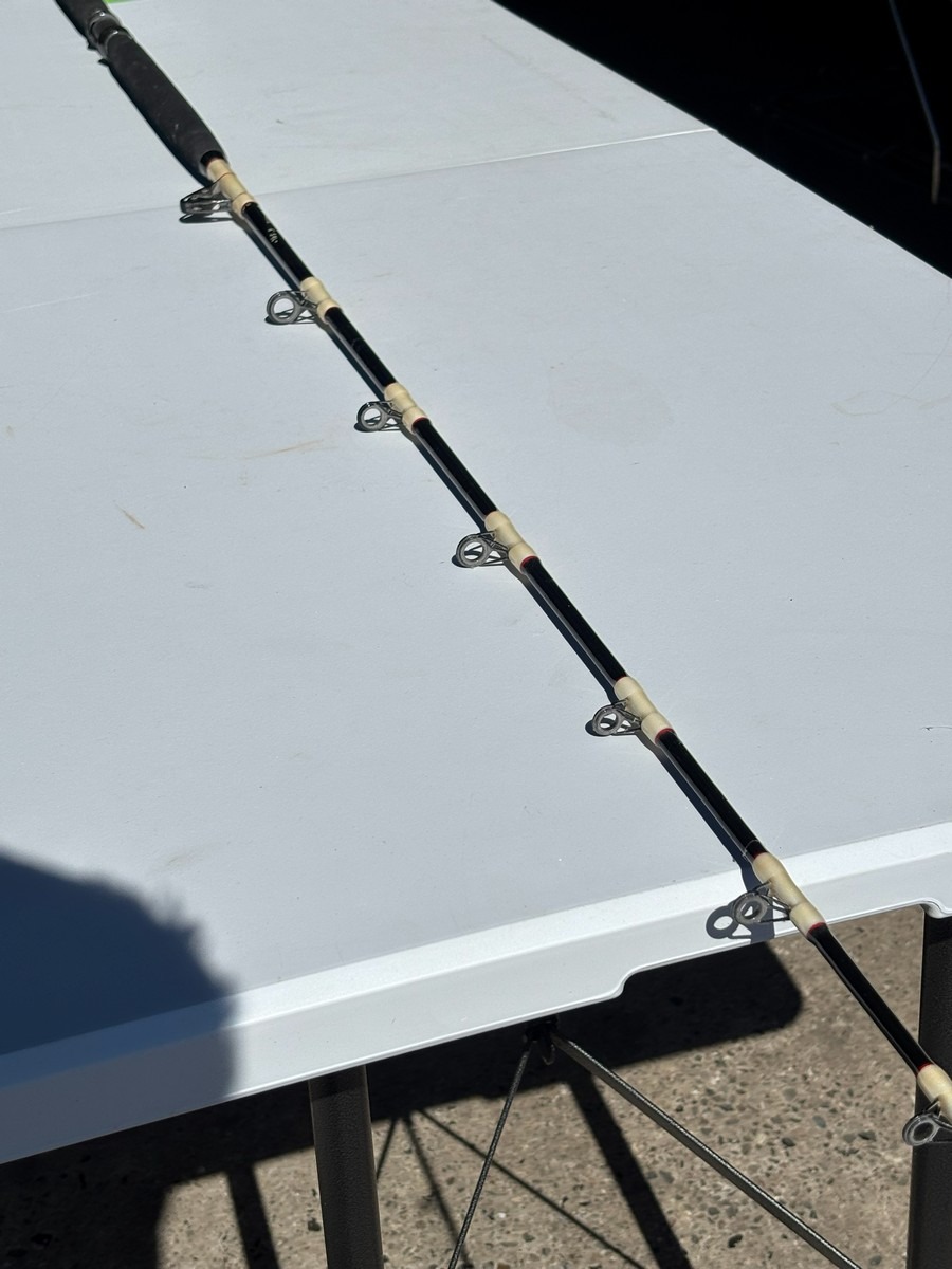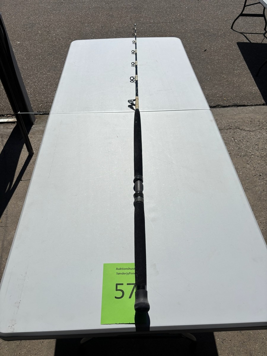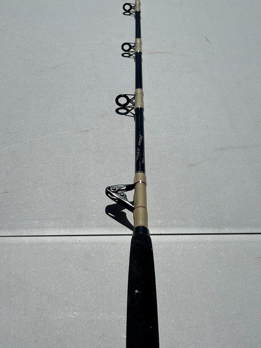 Fiskestang mærket “Power Probe Tri-Cast Sea Rod”, model TB1. Stangen er opgivet til 50 lb klasse og med længde ca. 6’5 3/4”. Derudover fremgår mærkning FPS-H22 samt “Products of Japan”. Fremstår i brugt stand med almindelige brugsspor, herunder mindre ridser og slitage, men uden synlige større skader.
