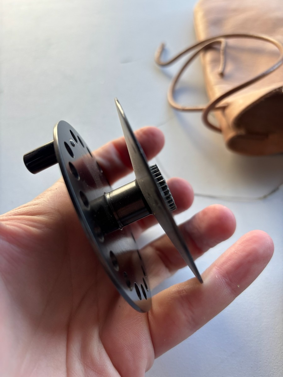 Fluehjul – 2 stk. + ekstra spole og læderetui