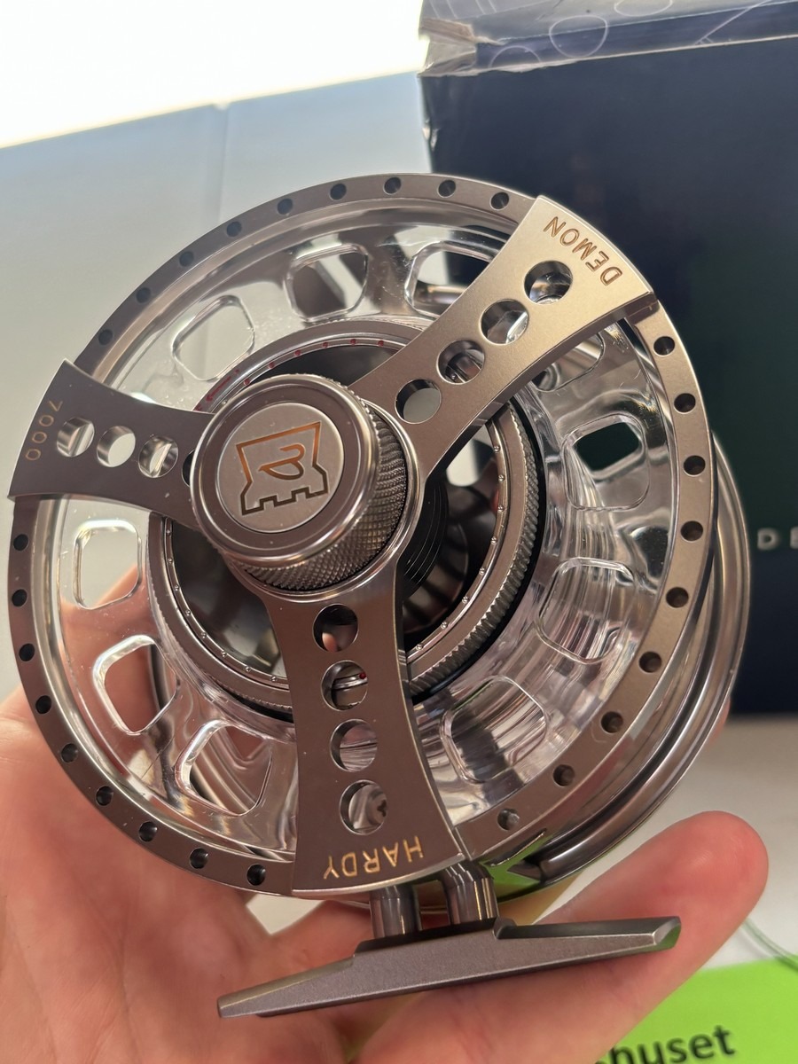 Fluehjul fra Hardy, model Demon 7000, leveres i original æske med etui samt ekstra spole med line.