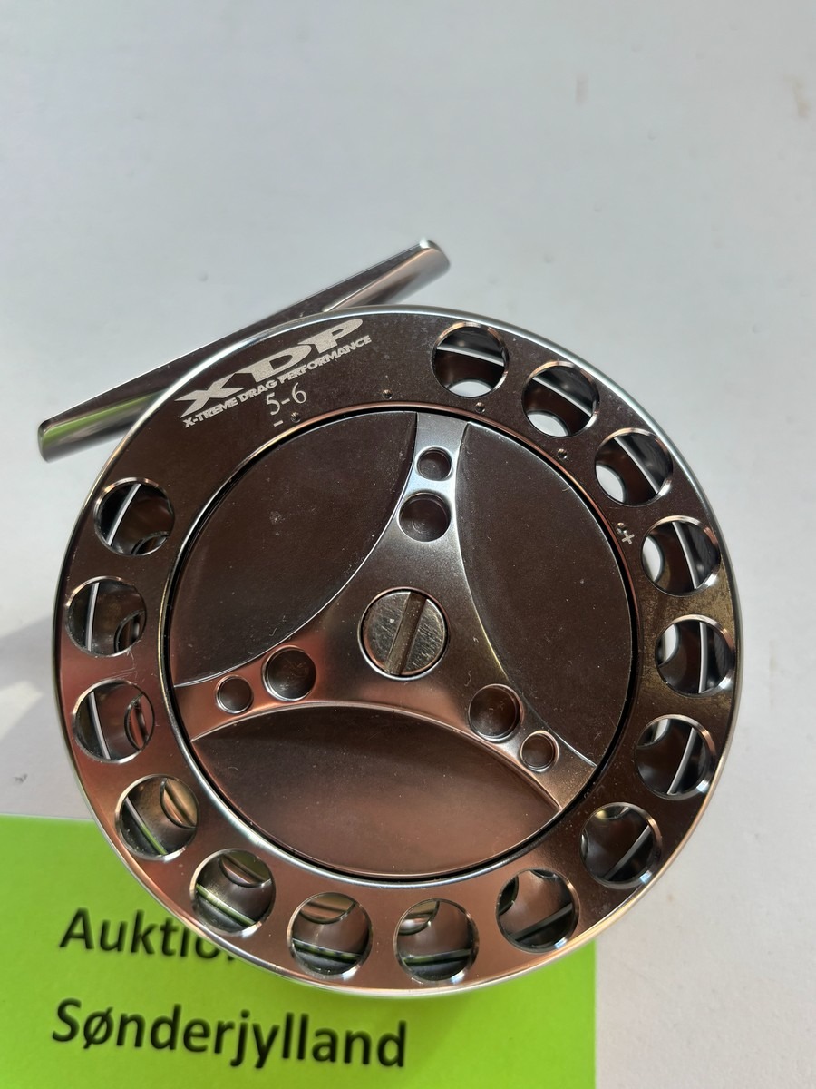 Let og solidt fluehjul i metal med perforeret spole og justerbar bremse. Mærket “XDP – Xtreme Drag Performance”, størrelse 5–6, velegnet til lettere fluefiskeri efter fx ørred.