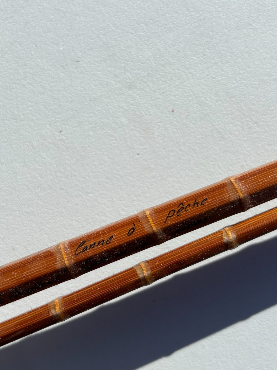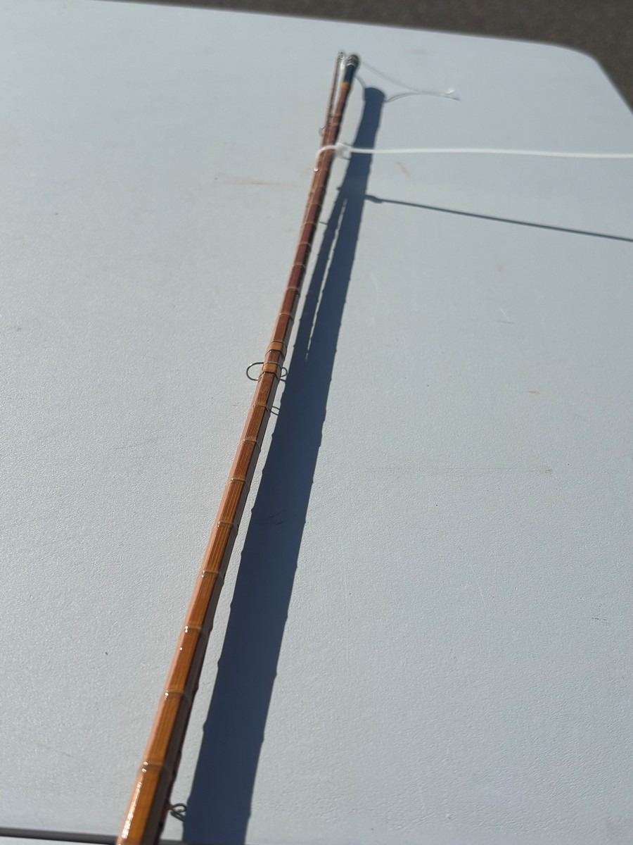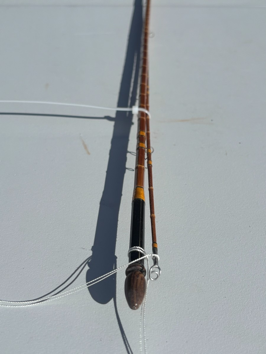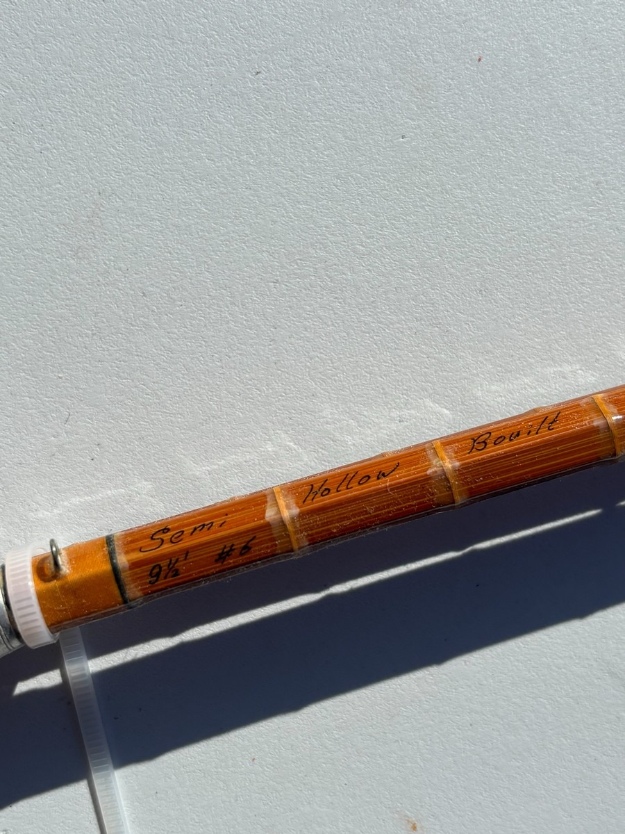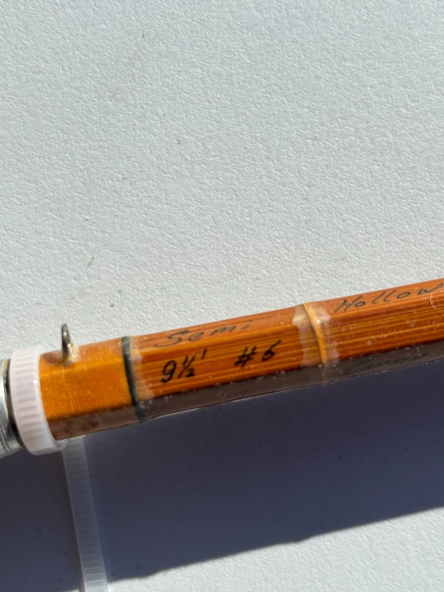 Fluestang i splitcane (bambus) med påskrift “Semi hollow built” samt længde 9½’ #6.