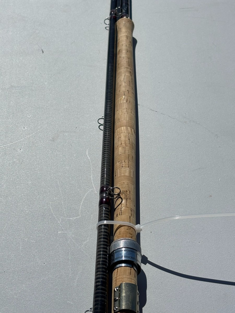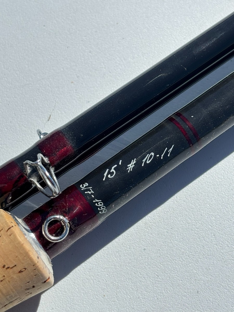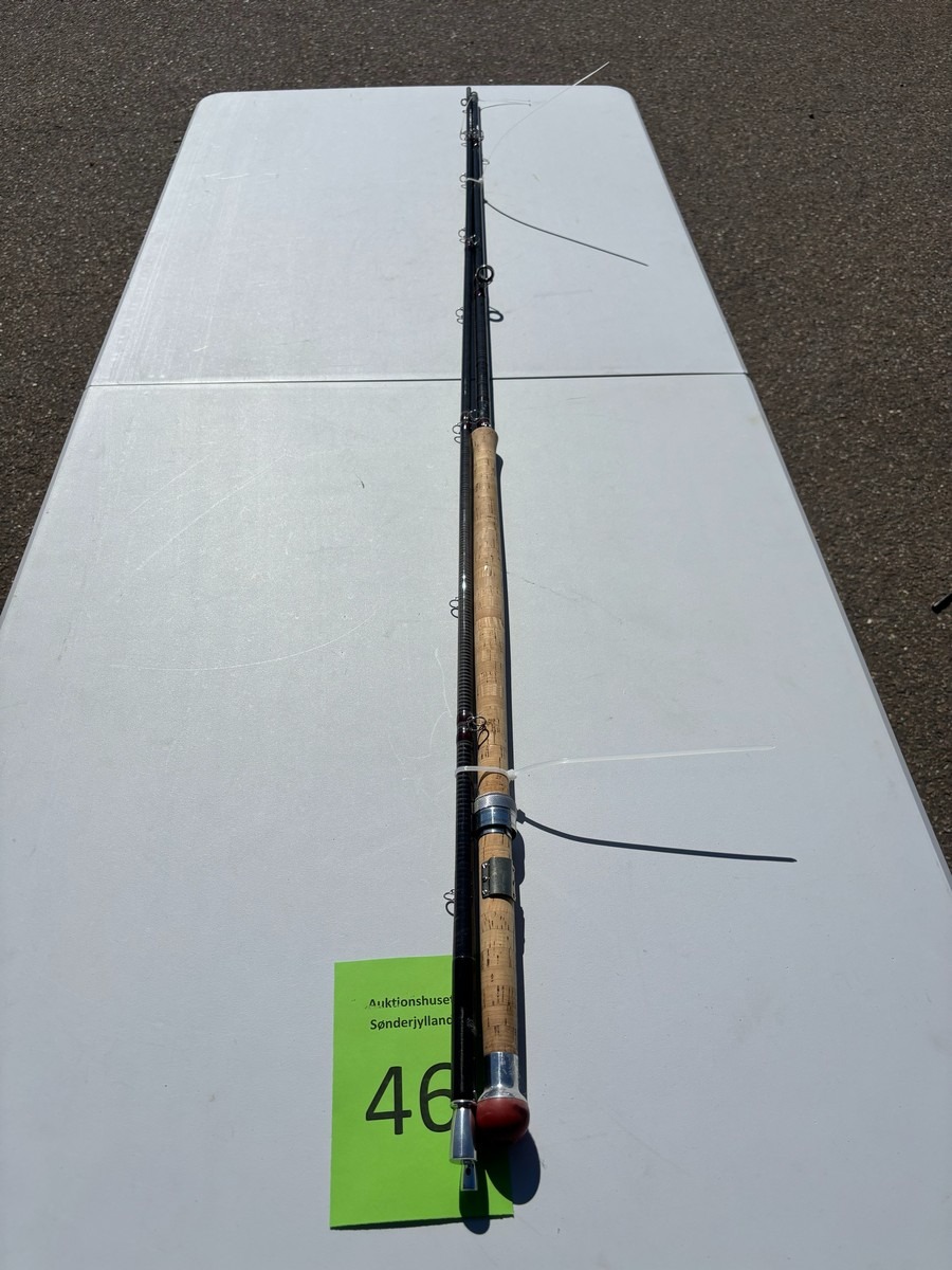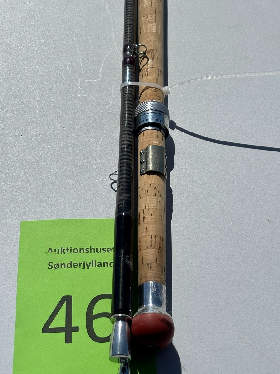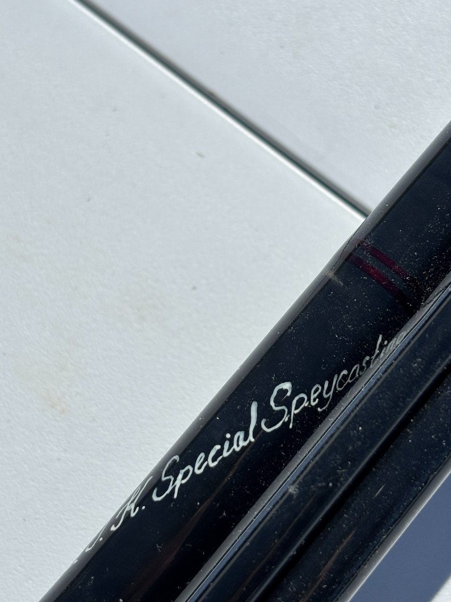 Fluestang mærket “The J.H. Special – Quality Performance / Special Speycast”. Længde 15’ og lineklasse #10–11, som angivet på stangen. Klassisk udført i mørk grafit med røde beviklinger, traditionelle øjer samt korkhåndtag og metalhjulholder. Fremstår i brugt stand med almindelige brugsspor, herunder ridser og mindre slitage i lak og tryk, men uden umiddelbart synlige større skader. En kraftig tohåndsstang velegnet til spey-/laksefiskeri