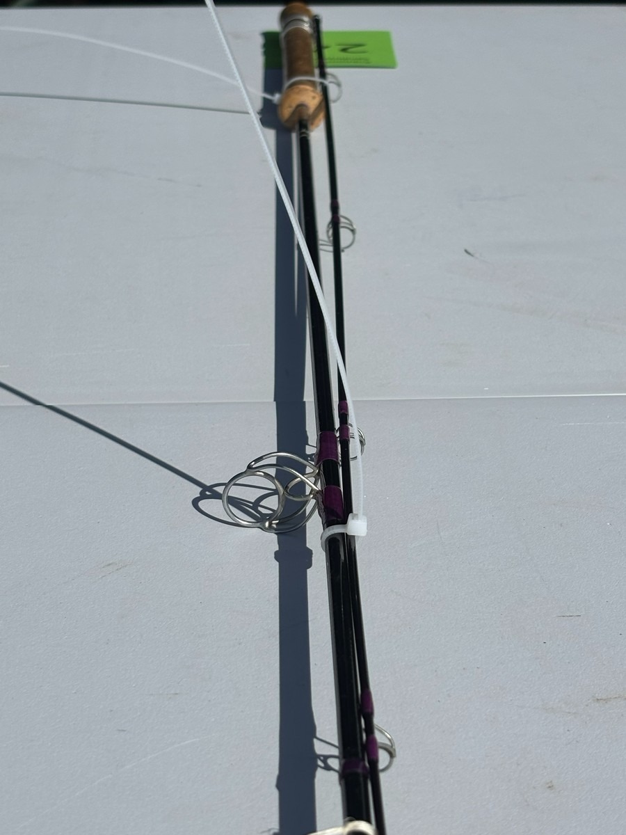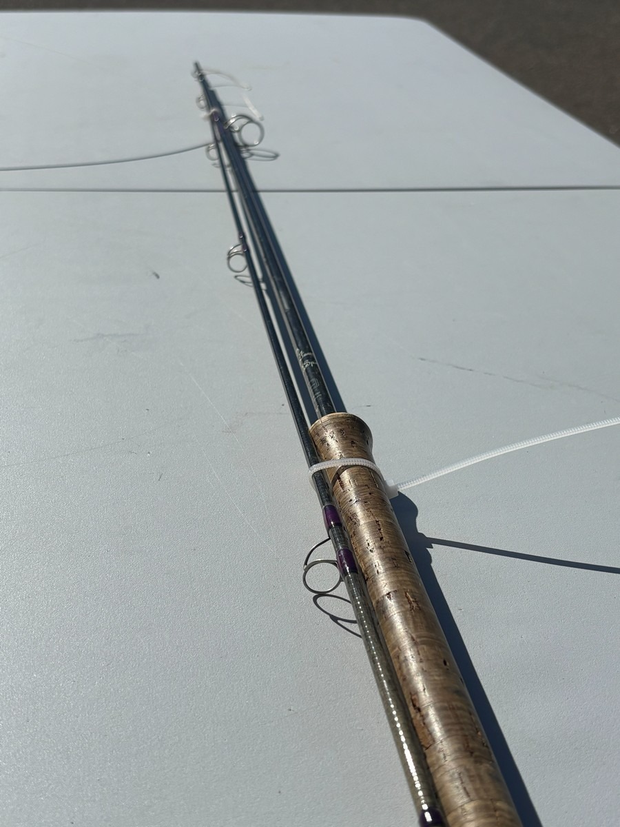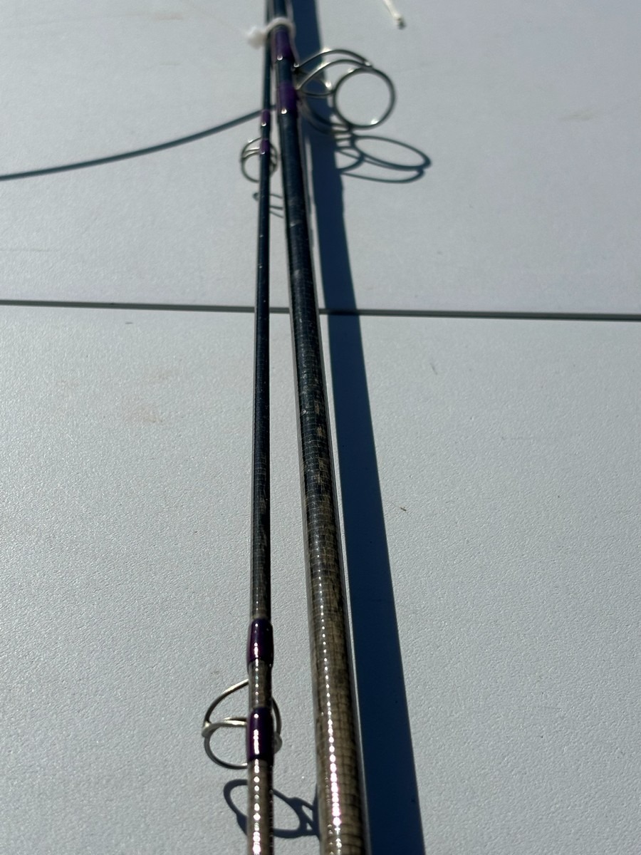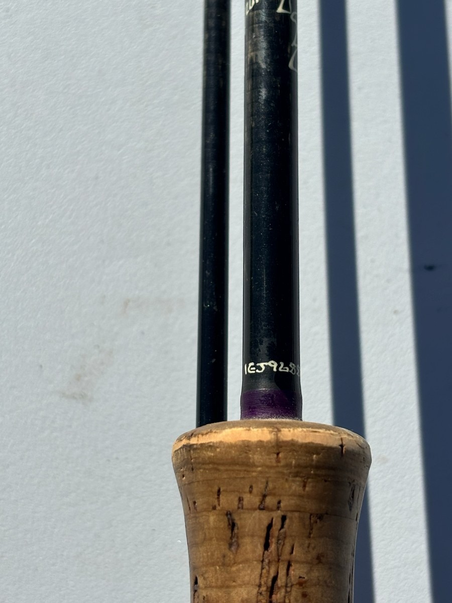 Udført i grafit med korkhåndtag og traditionel Hardy hjulholder i metal. 2-delt konstruktion med klassiske øjer.