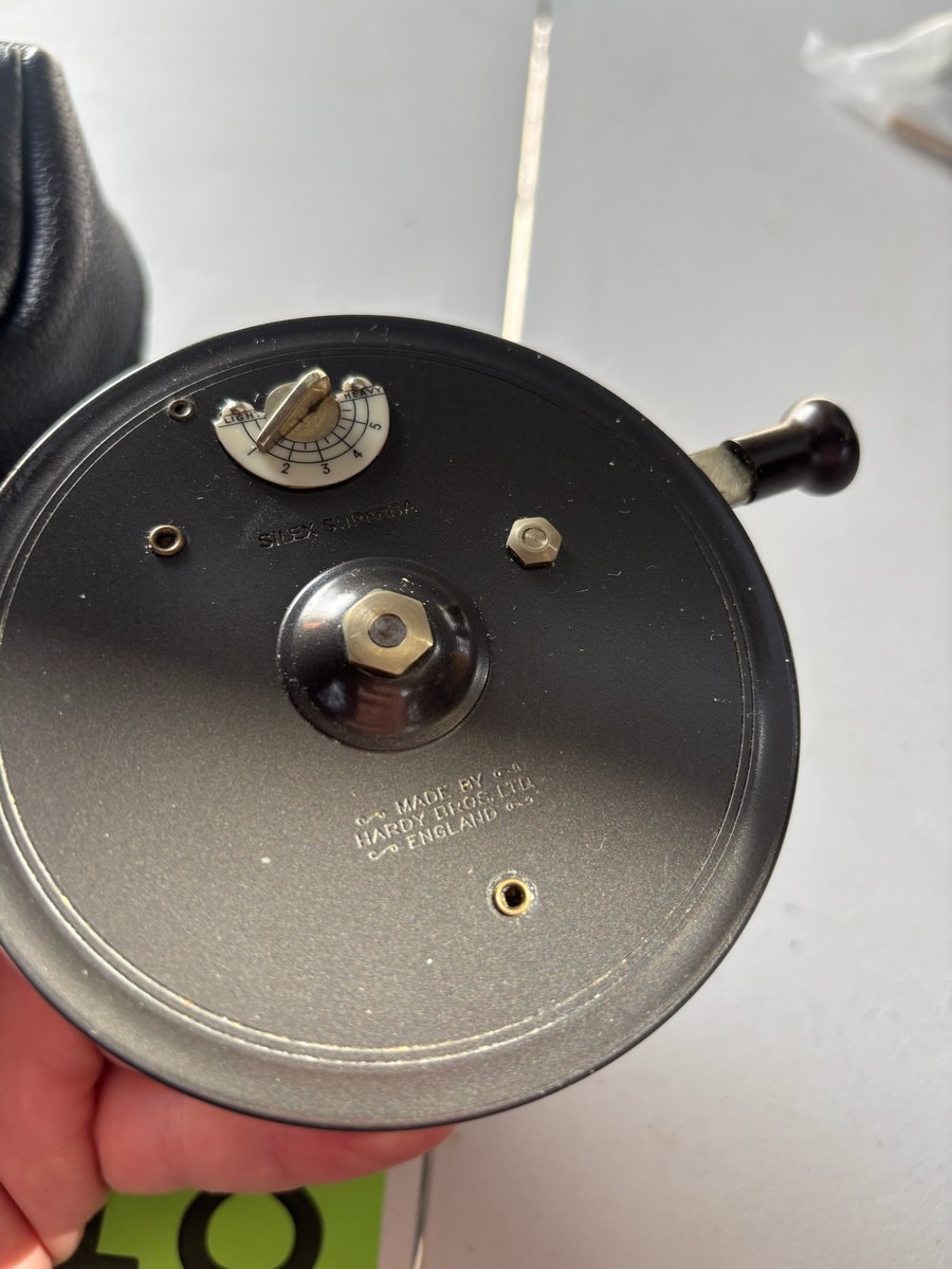 Klassisk engelskproduceret Hardy Silex Superba – et solidt og eftertragtet vintage fluehjul kendt for sin kvalitet og præcision. Fremstillet af Hardy Bros Ltd., England.