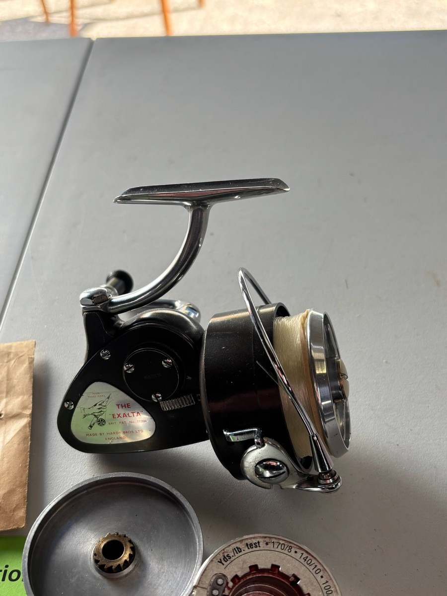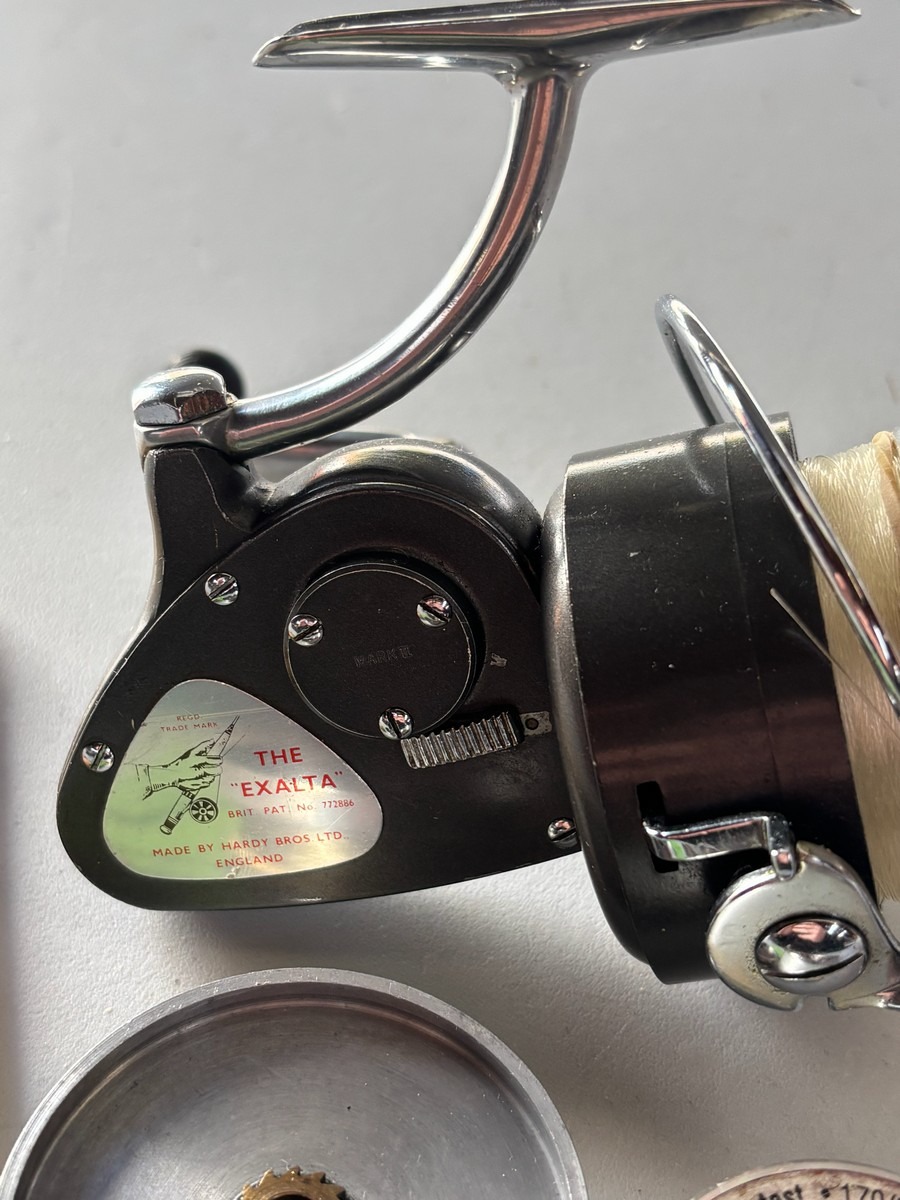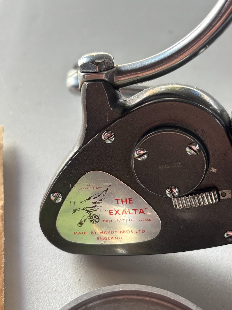 Klassisk Hardy Bros. “The Exalta” spinnehjul, fremstillet i England. En tidlig og eftertragtet model blandt samlere af Hardy-hjul