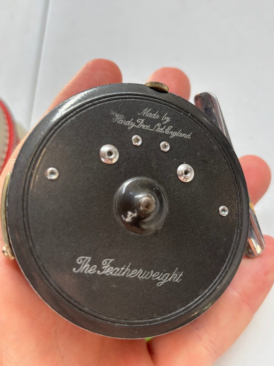 Hardy “The Featherweight” fluehjul, England, inkl. etui. Let og klassisk fluehjul fra Hardy Bros., model “The Featherweight”, fremstillet i Alnwick, England. Kendt for sin lave vægt og fine balance til lettere fluegrej. Traditionel klikbremse
