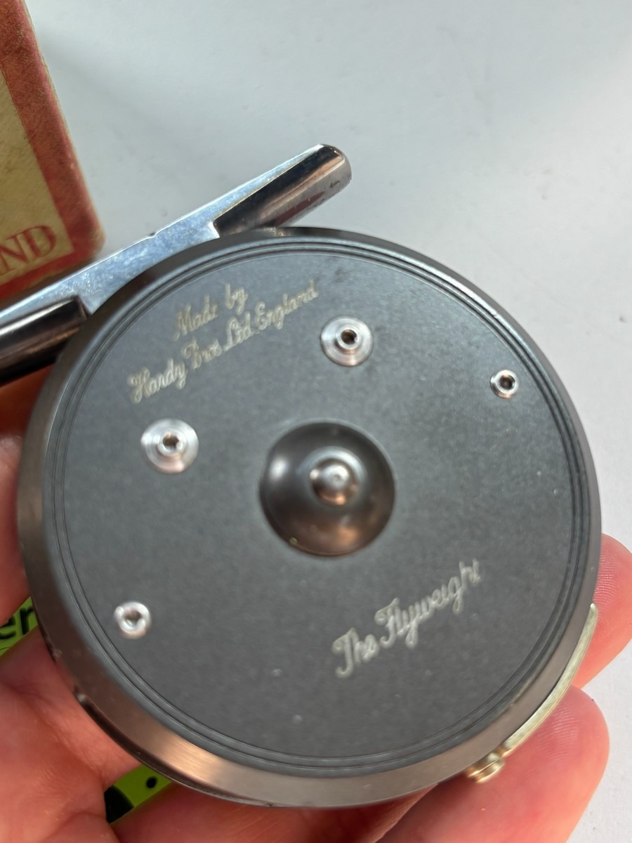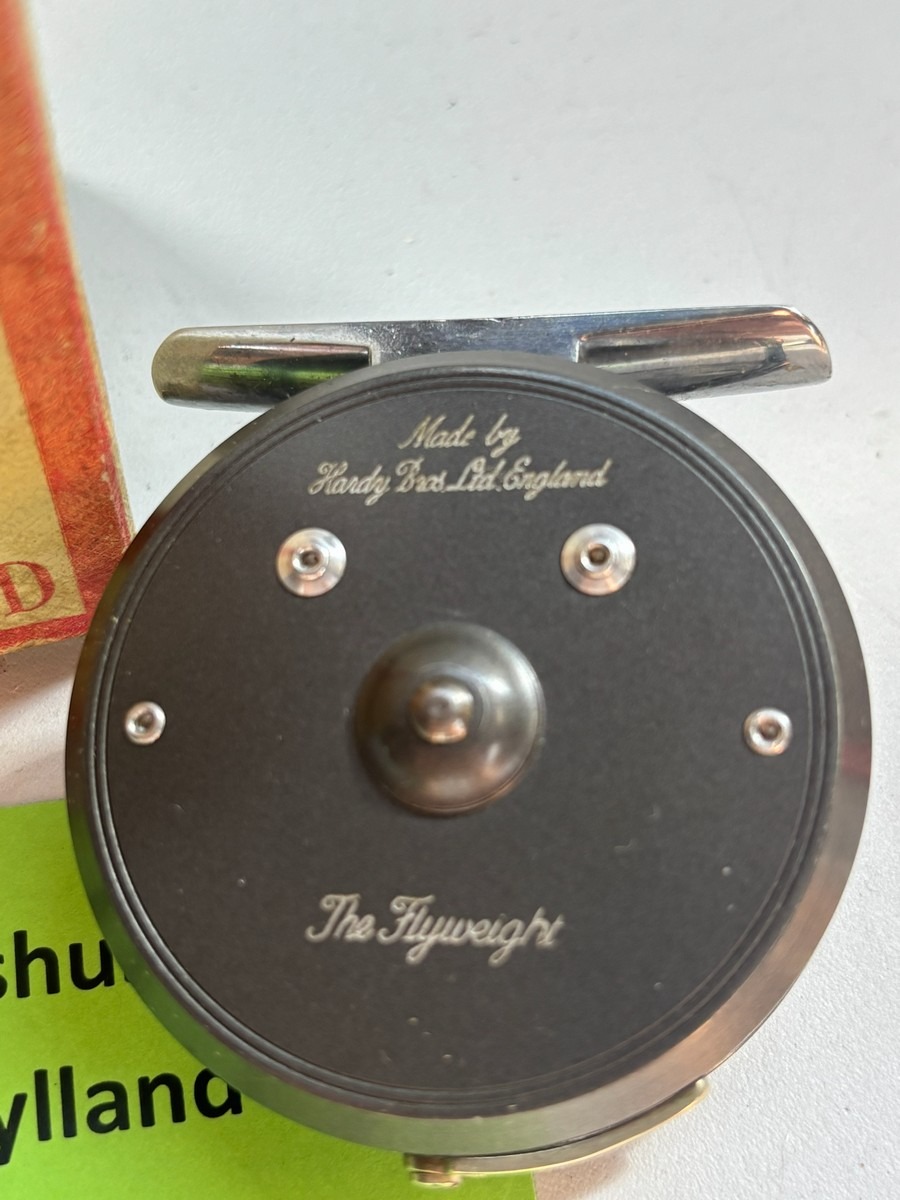 Hardy “The Flyweight” fluehjul inkl. original æske. Klassisk og meget eftertragtet fluehjul fra Hardy Bros., model “The Flyweight”. Fremstillet i England og kendt for sin lette konstruktion og fine kvalitet – velegnet til let fluefiskeri