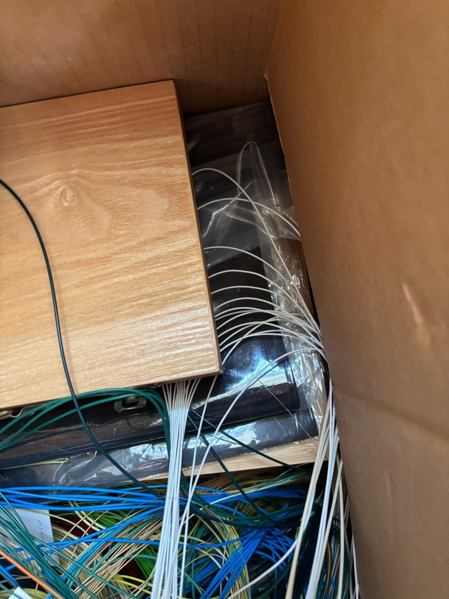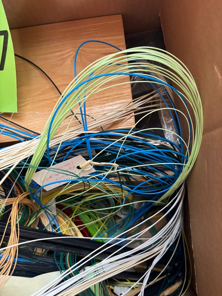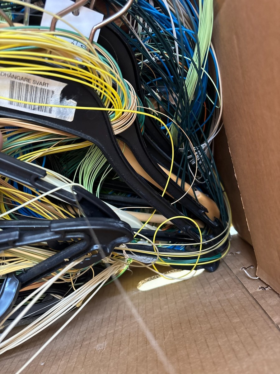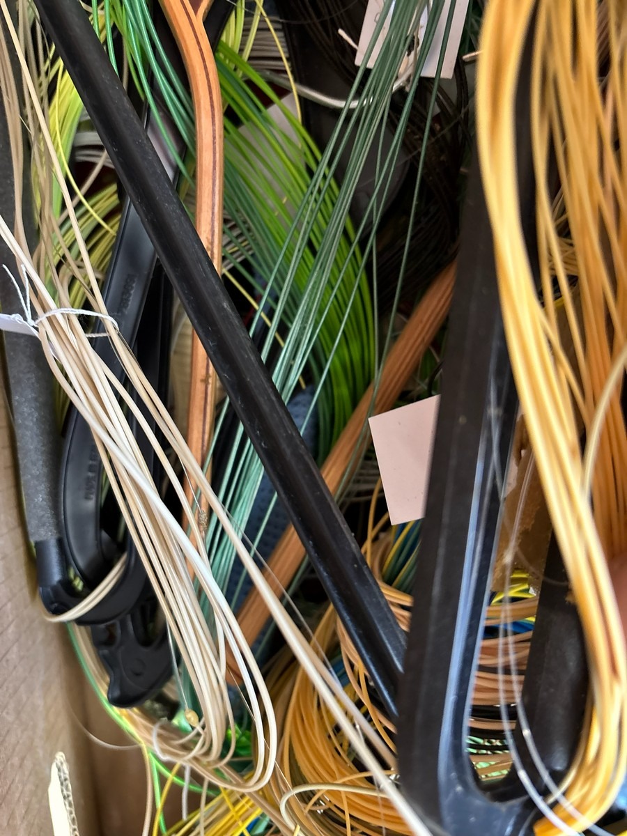 Kasse med diverse liner / snører og tilbehør. Fra dødsbo