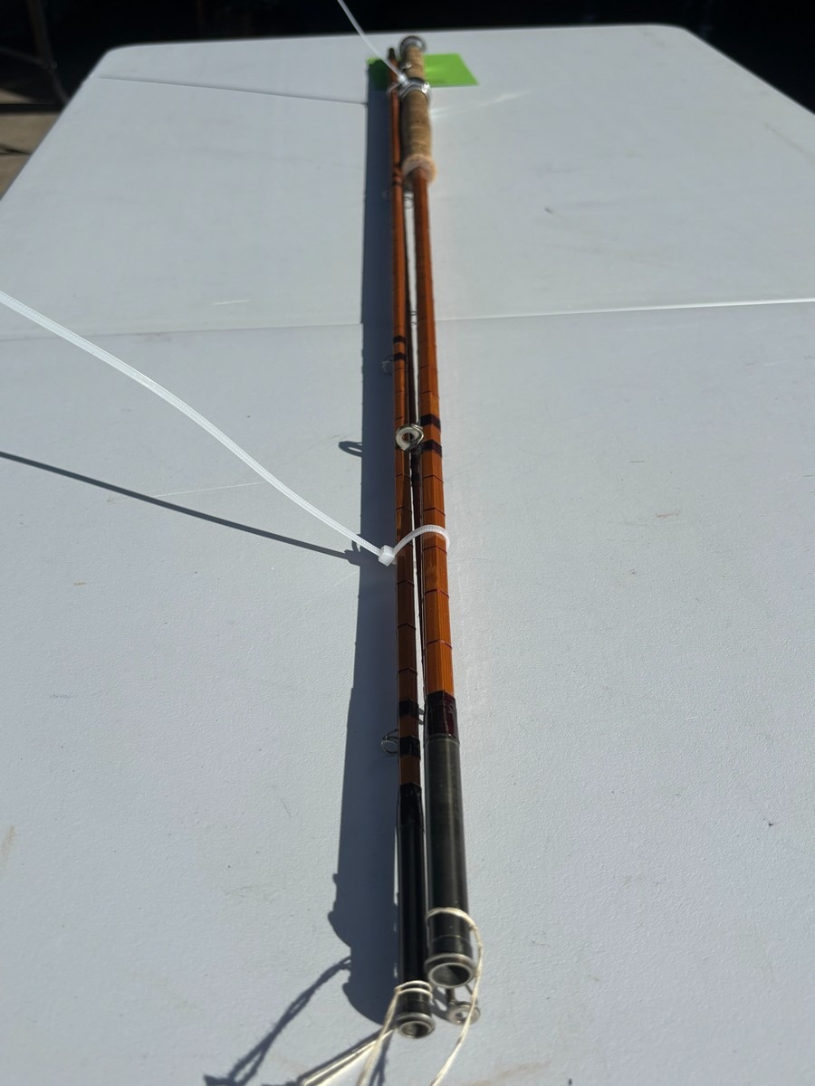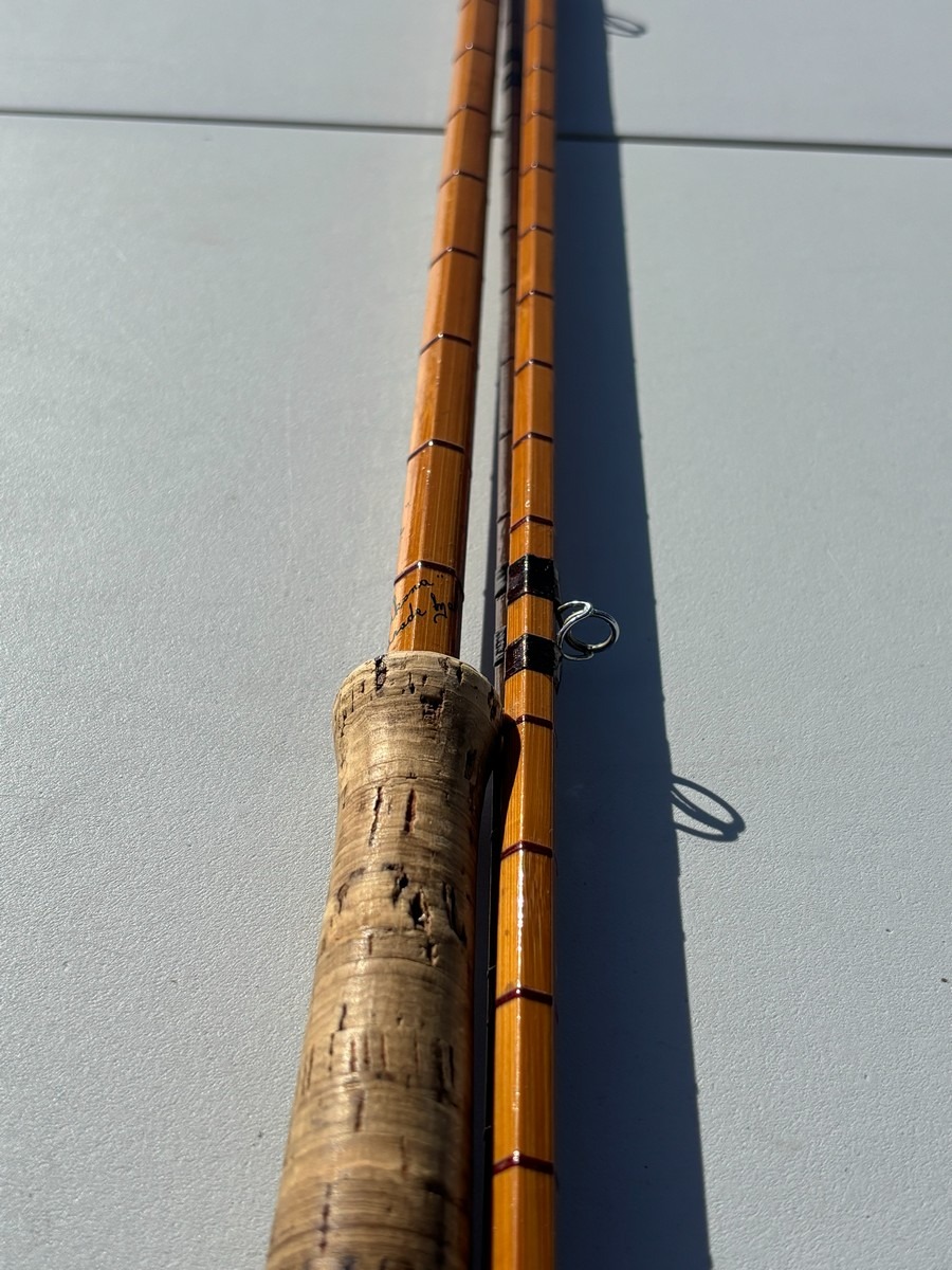 Klassisk fluestang i splitcane (bambus) med håndskrevet påskrift “The Wye” samt “Palakona”. Fremstår i pæn stand. Fra dødsbo