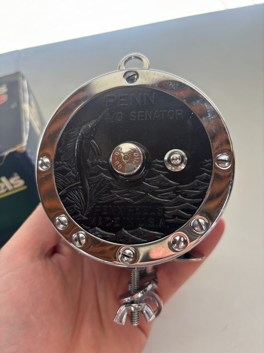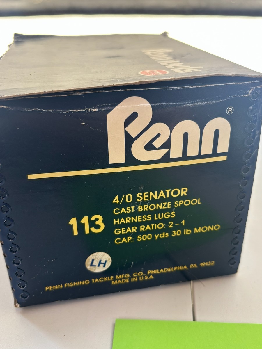 Klassisk havhjul fra Penn, model 113 “4/0 Senator”. I original æske.