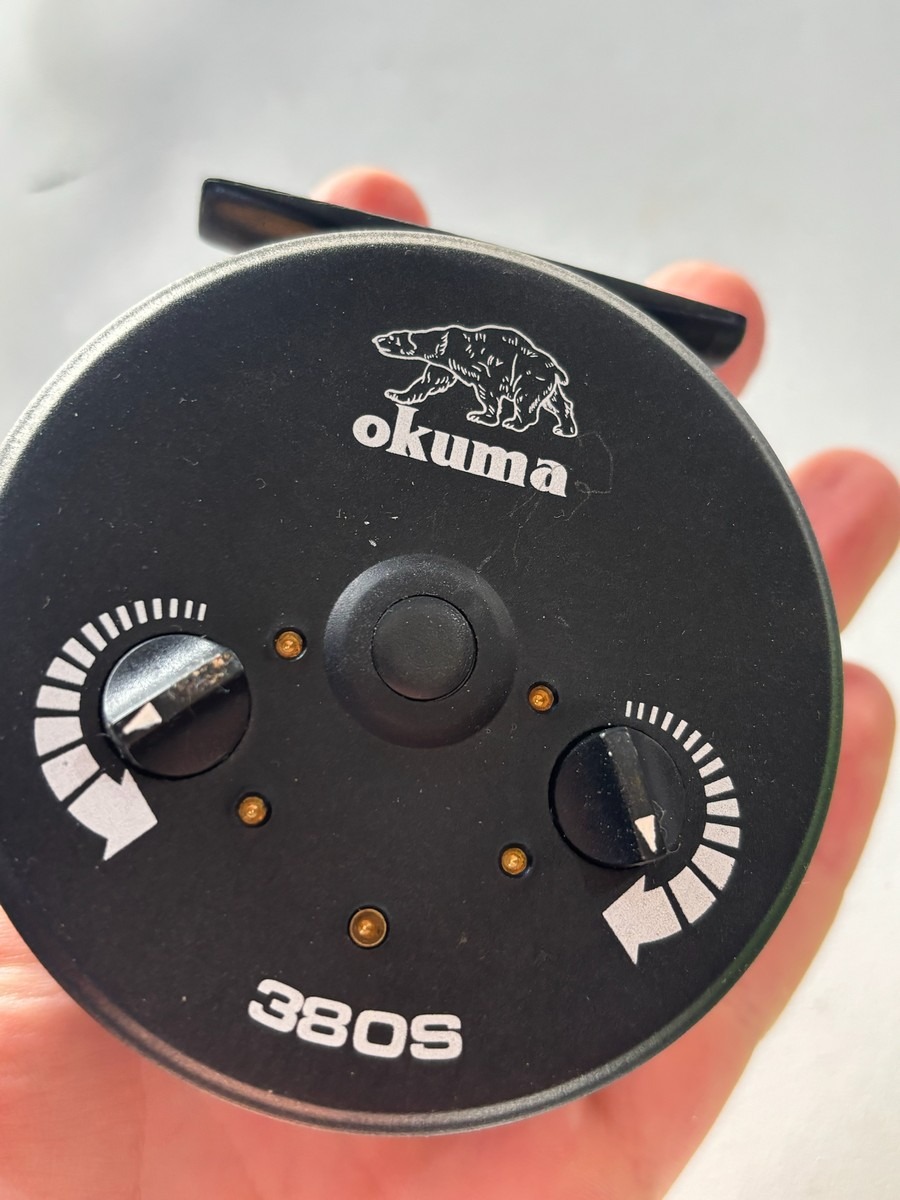Okuma 380S fluehjul. Fluehjul fra Okuma, model 380S. Robust og funktionelt hjul med justerbar bremse via dobbelte drejeknapper, velegnet til almindeligt fluefiskeri.