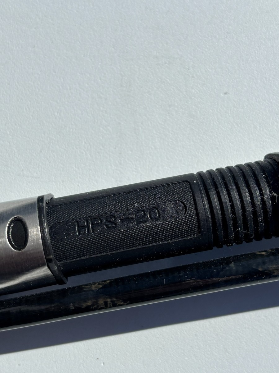 Stangen er monteret med røde beviklinger, klassiske øjer samt håndtag i sort skum med originalt hjulholderbeslag mærket HPS-20. Finishen fremstår med almindelige brugsspor og mindre kosmetiske mærker, men uden tydelige skader i de viste billeder.