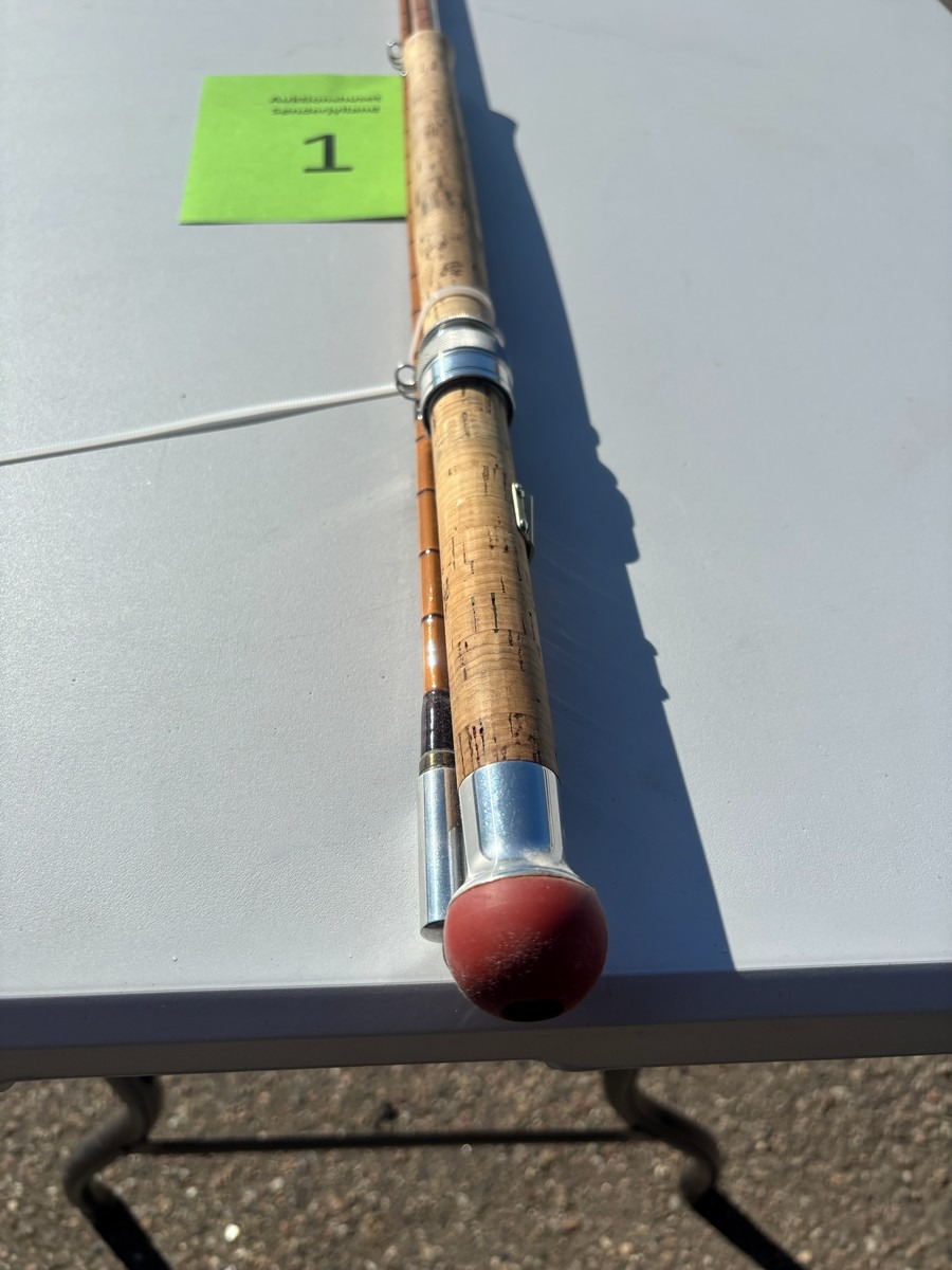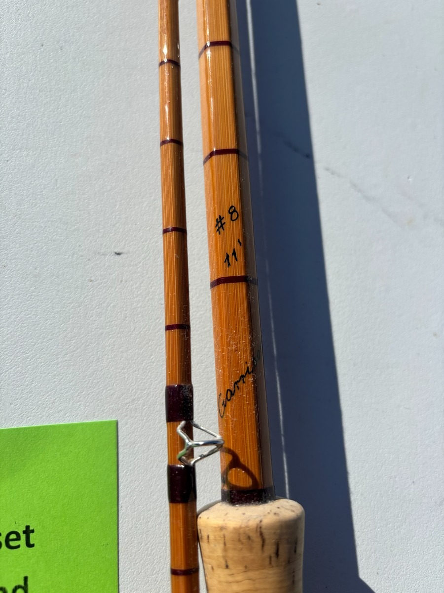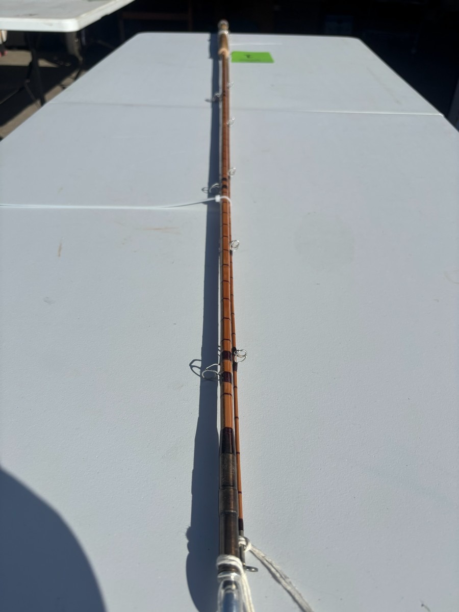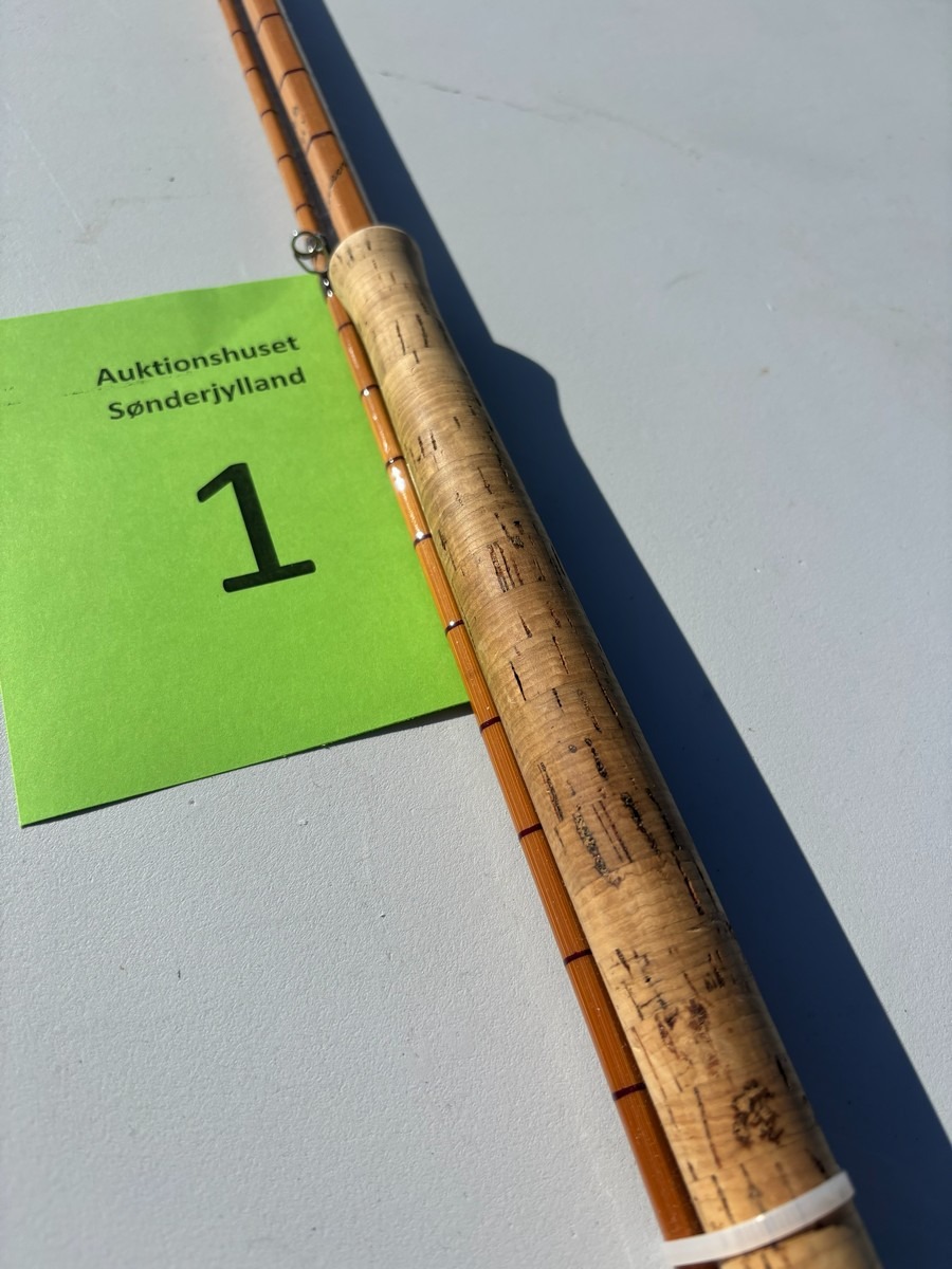 Splitcane (bambus) fluestang mærket “#8” og ca. 11 fod. Stangen er udført i traditionel sekskantet bambus med flotte beviklinger, metalferruler og korkhåndtag.. Fremstår i pæn stand. Fra dødsbo