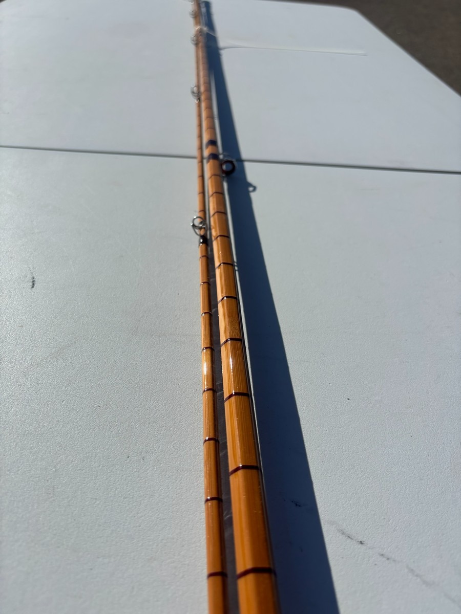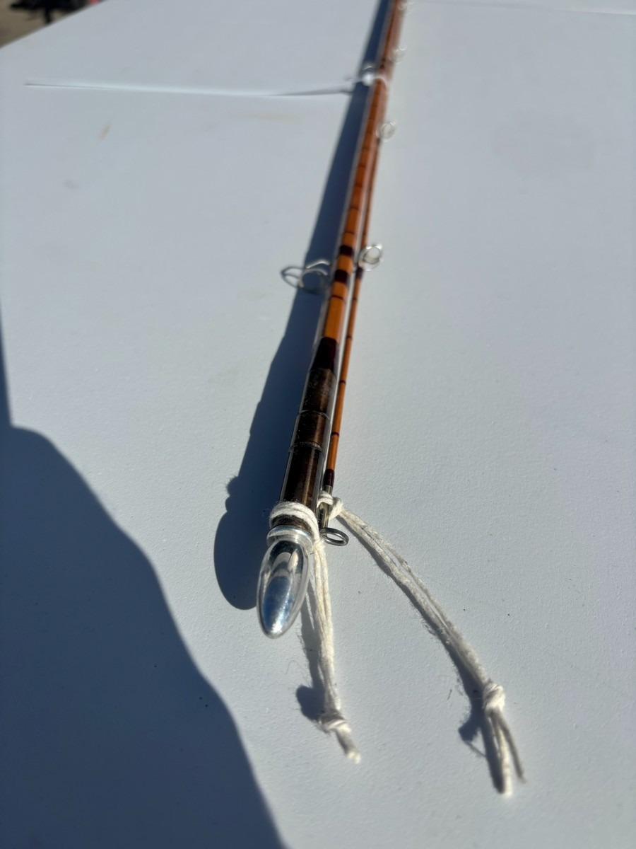 Splitcane (bambus) fluestang mærket “#8” og ca. 11 fod