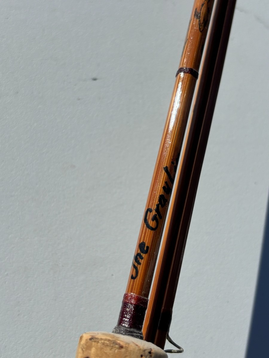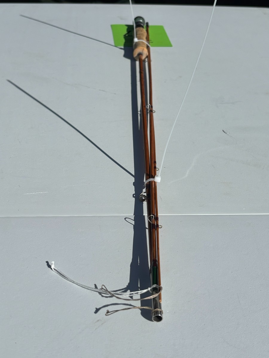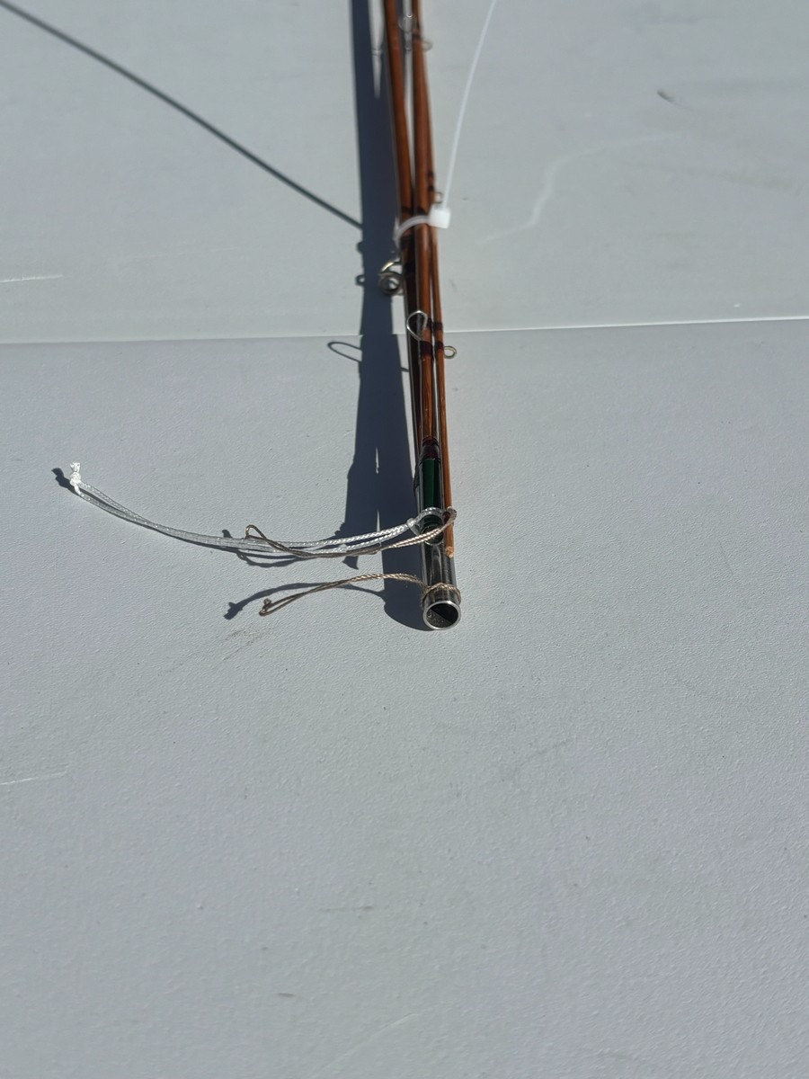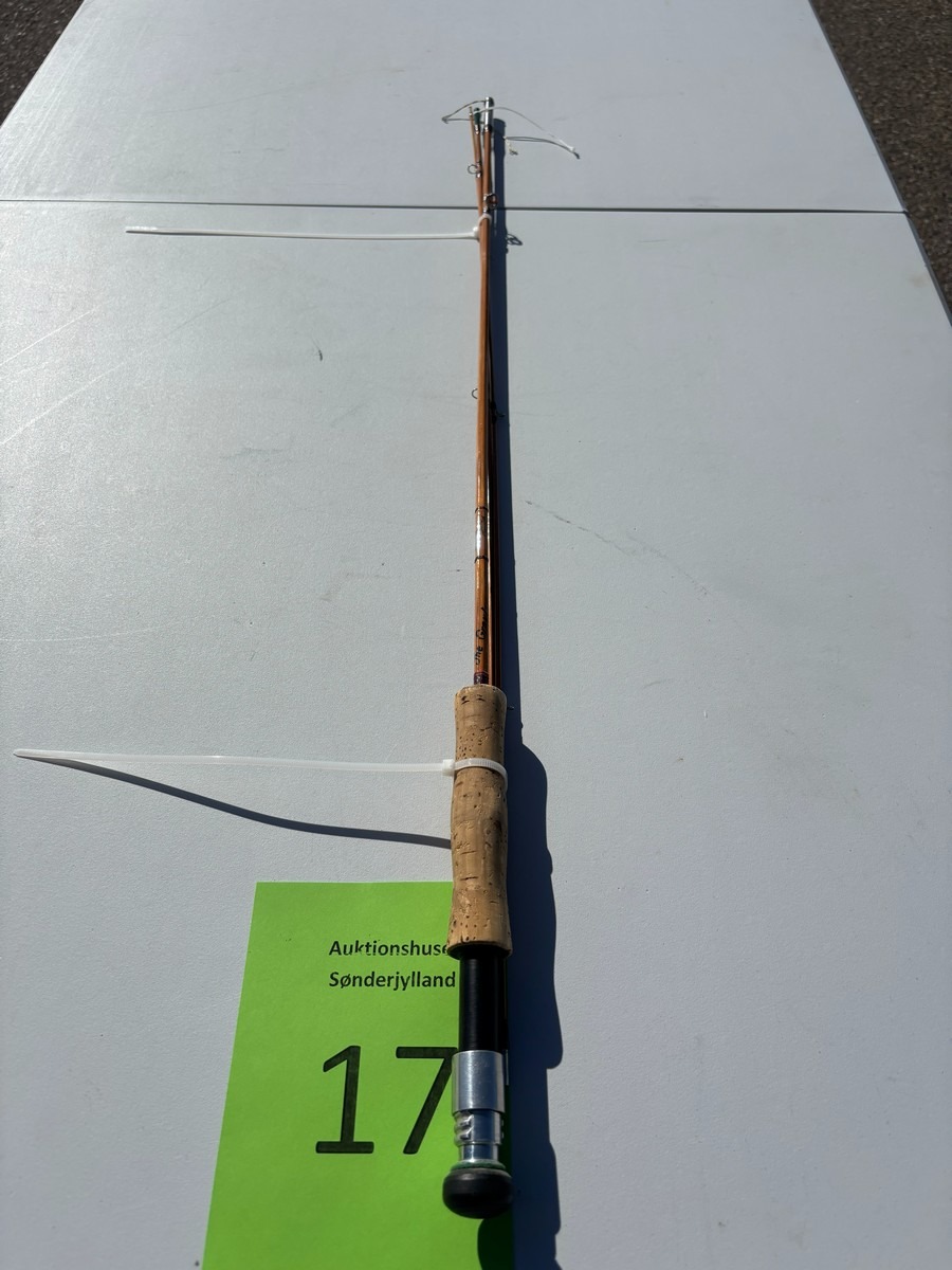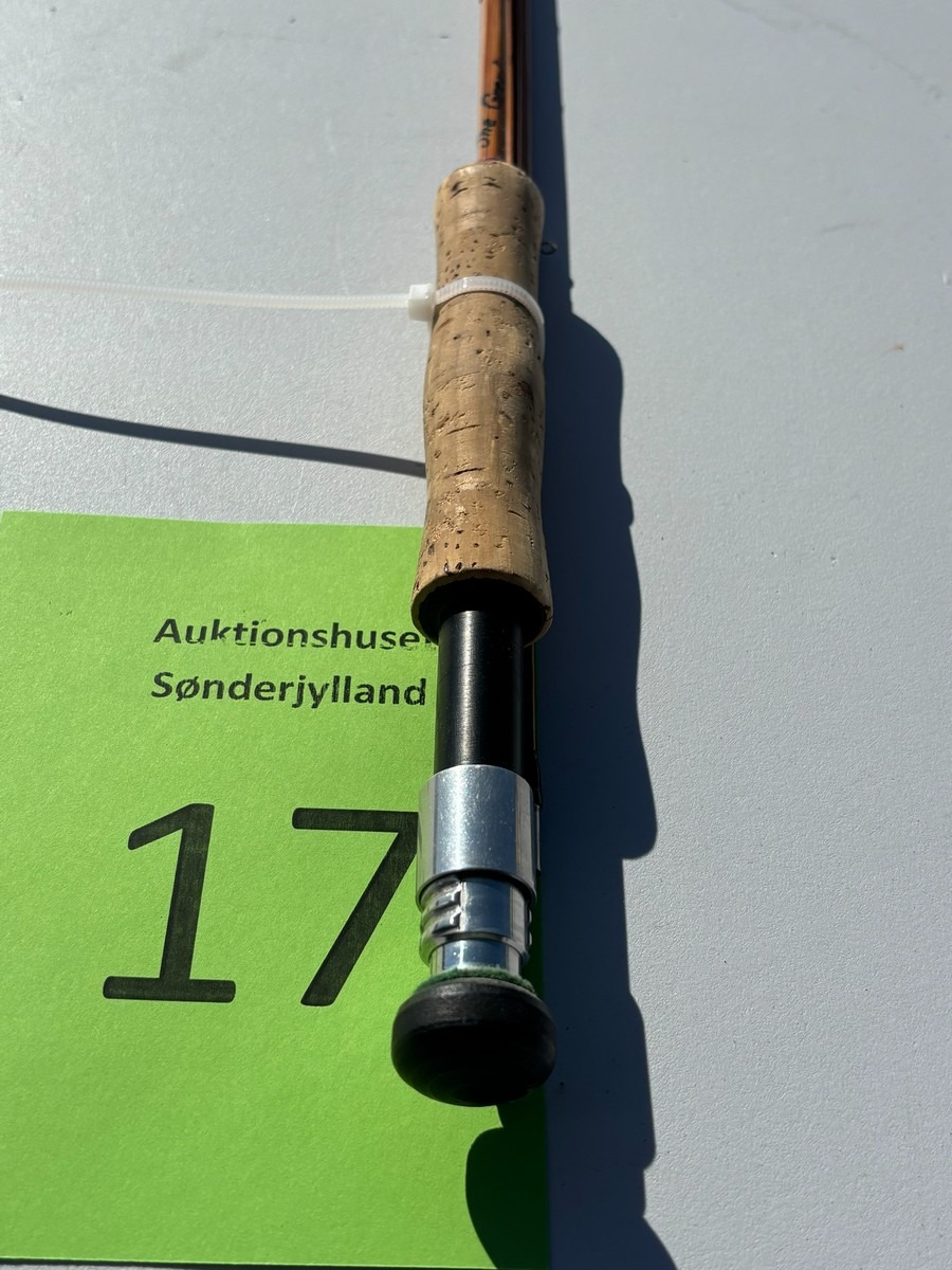 Splitcane fluestang “Joe Green Rod” – 7’9” – 2-delt. 7’9. Klassisk splitcane (bambus) fluestang i 2 dele med original top. Stangen er håndskrevet med navnet “Joe Green Rod” samt længdeangivelse “7’9”. Fremstår i pæn stand. Fra dødsbo