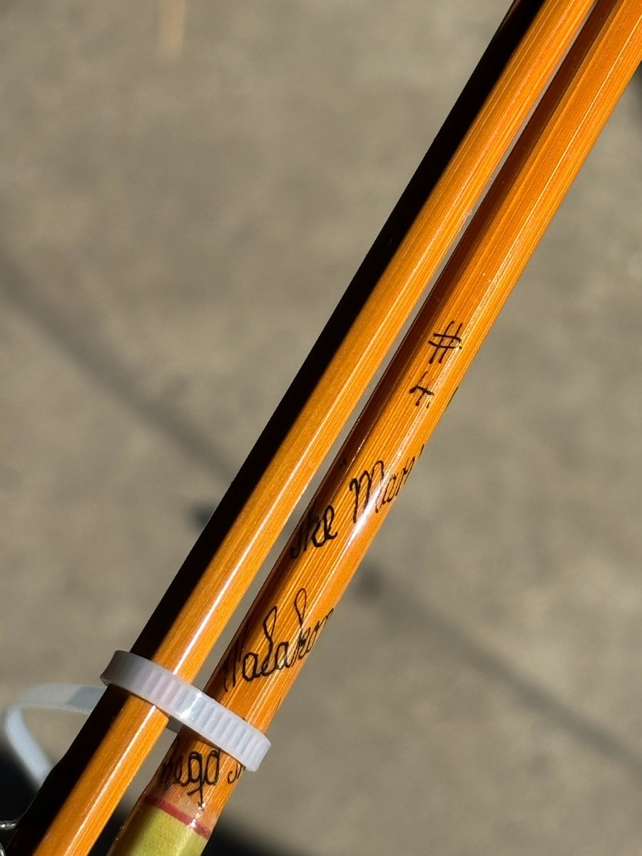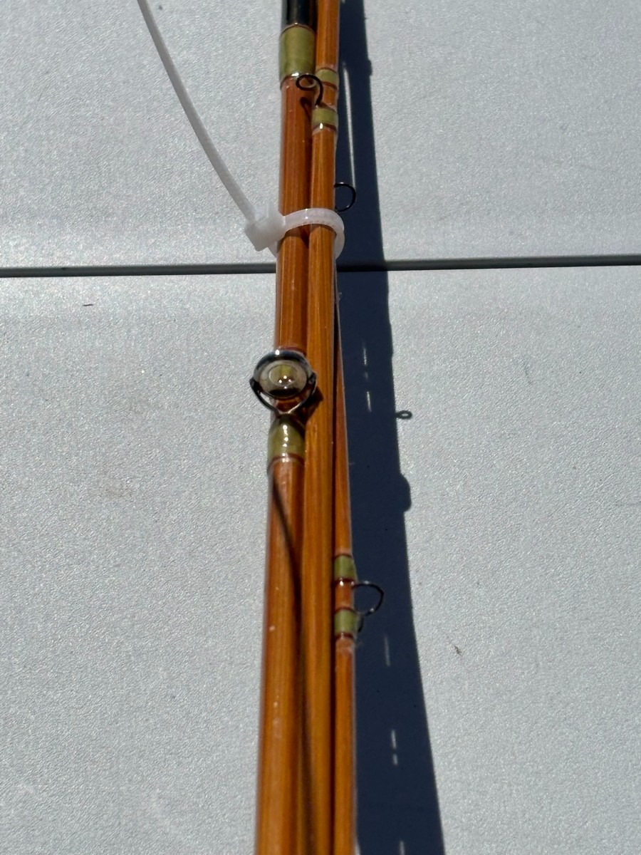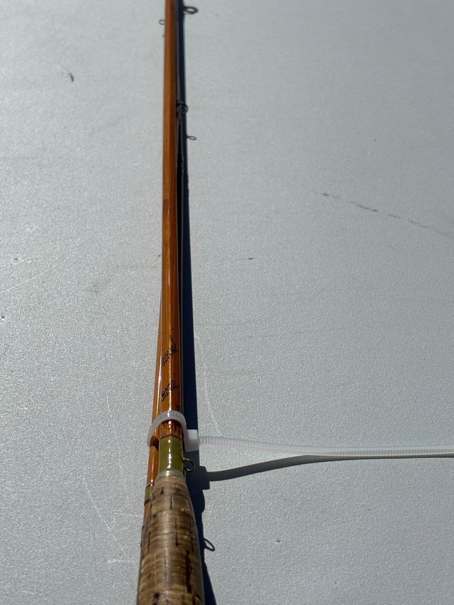På klingen ses håndskrevne markeringer samt nummerering (#1), hvilket indikerer original sektionstilhørighed. Stangen fremstår i smuk, gylden splitcane med fine, ensartede årringe og klassisk opbygning.