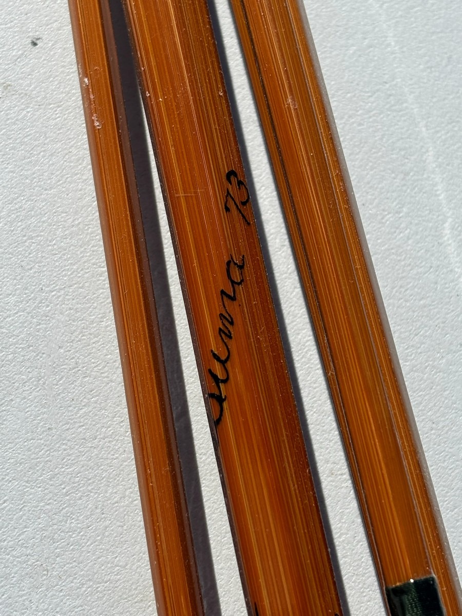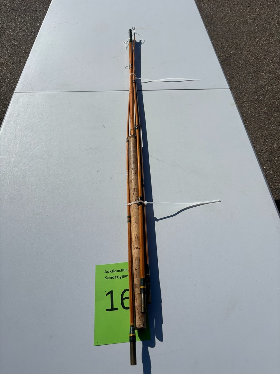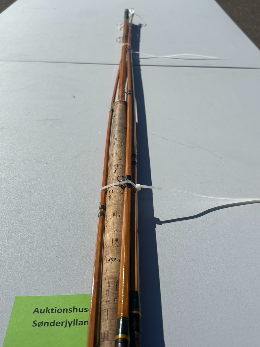 Splitcane fluestang “The ‘By Rod’ – 10 ft” – 3-delt. Klassisk splitcane (bambus) fluestang i 3 dele med original top. Stangen er håndskrevet med bl.a. “The ‘By Rod’” samt længdeangivelse “10 ft”. Fremstår i pæn stand. Fra dødsbo