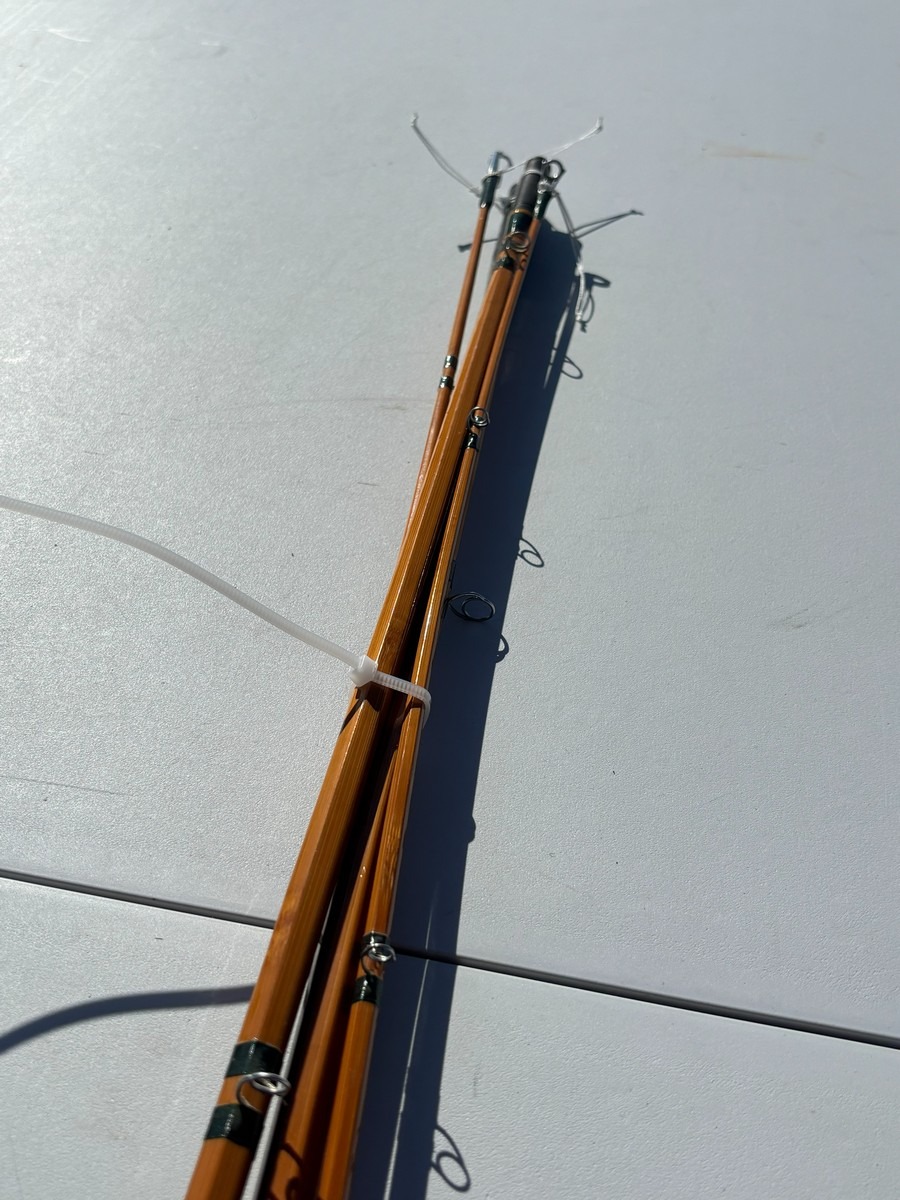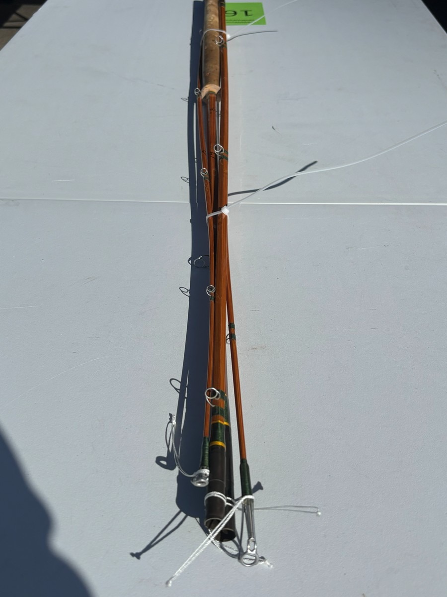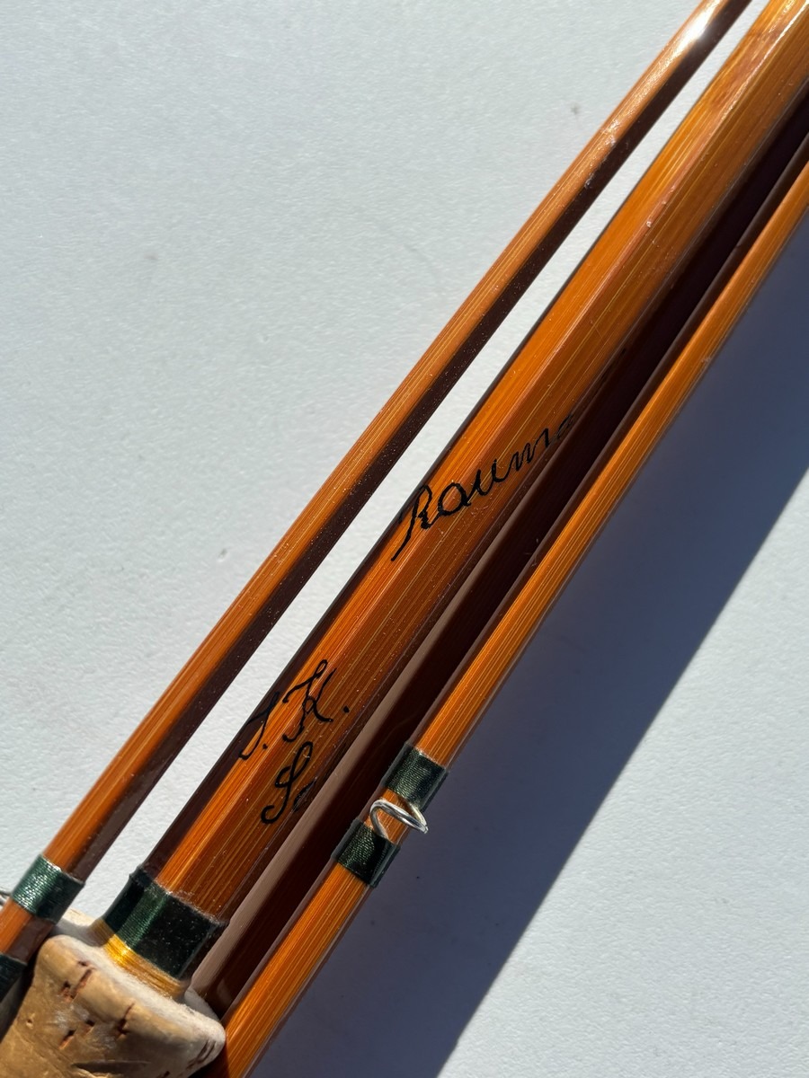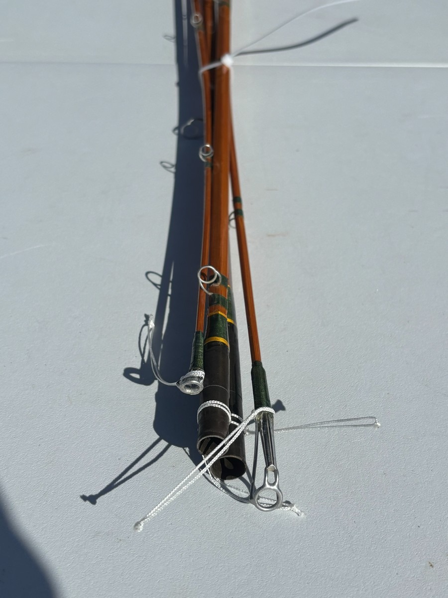 Splitcane fluestang “The ‘By Rod’ – 10 ft” – 3-delt. Klassisk splitcane (bambus) fluestang i 3 dele med original top. Stangen er håndskrevet med bl.a. “The ‘By Rod’” samt længdeangivelse “10 ft”. Fremstår i pæn stand. Fra dødsbo
