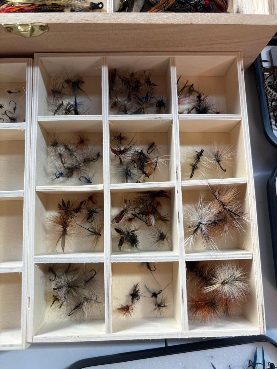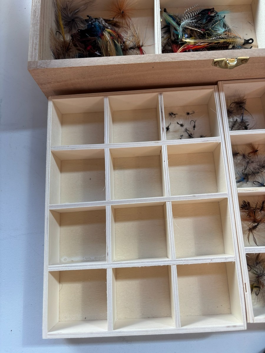 Stort parti blink & fluer i diverse trææsker & bokse. Fremstår i pæn stand. Fra dødsbo