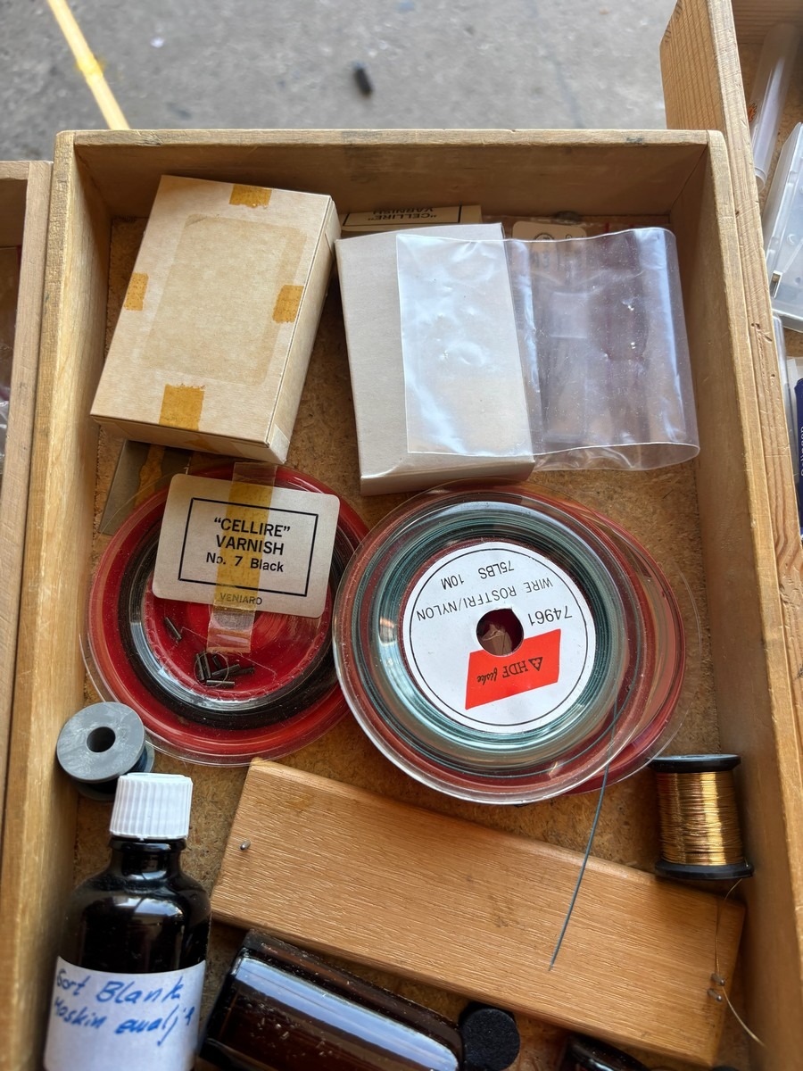 Stort parti fiskeudstyr dele, mange stk. Fremstår i pæn stand. Fra dødsbo